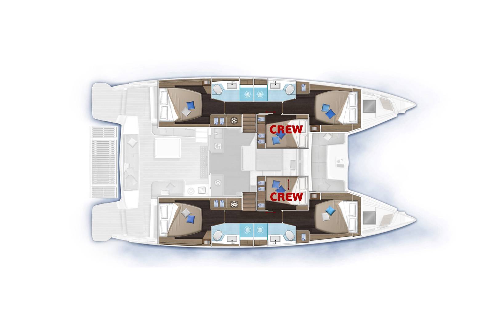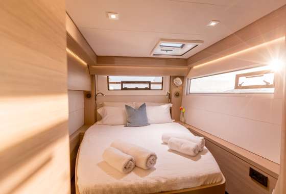 Embark on a memorable journey aboard BABALU Lagoon 51, with its modular layout and clever ergonomic design of 4 luxury cabins for a comfortable stay of total 8 guests ( 4 double cabins, all with en-suite facilities). Characterized by her ample outdoor and indoor spaces together with her swim platform, a true balcony on the water! BABALU is ideal for family and friends allowing for quality time and entertainment as well as for quiet moments of privacy and relaxation.