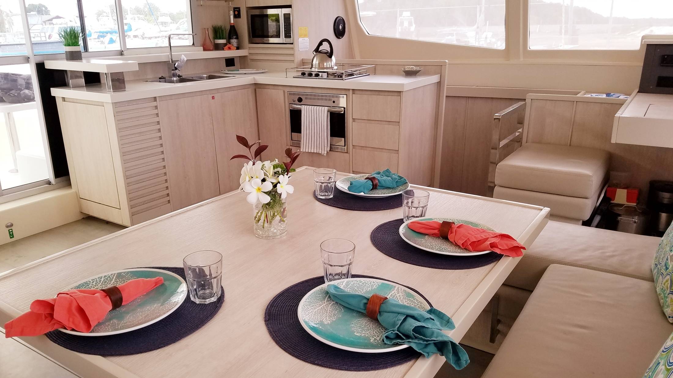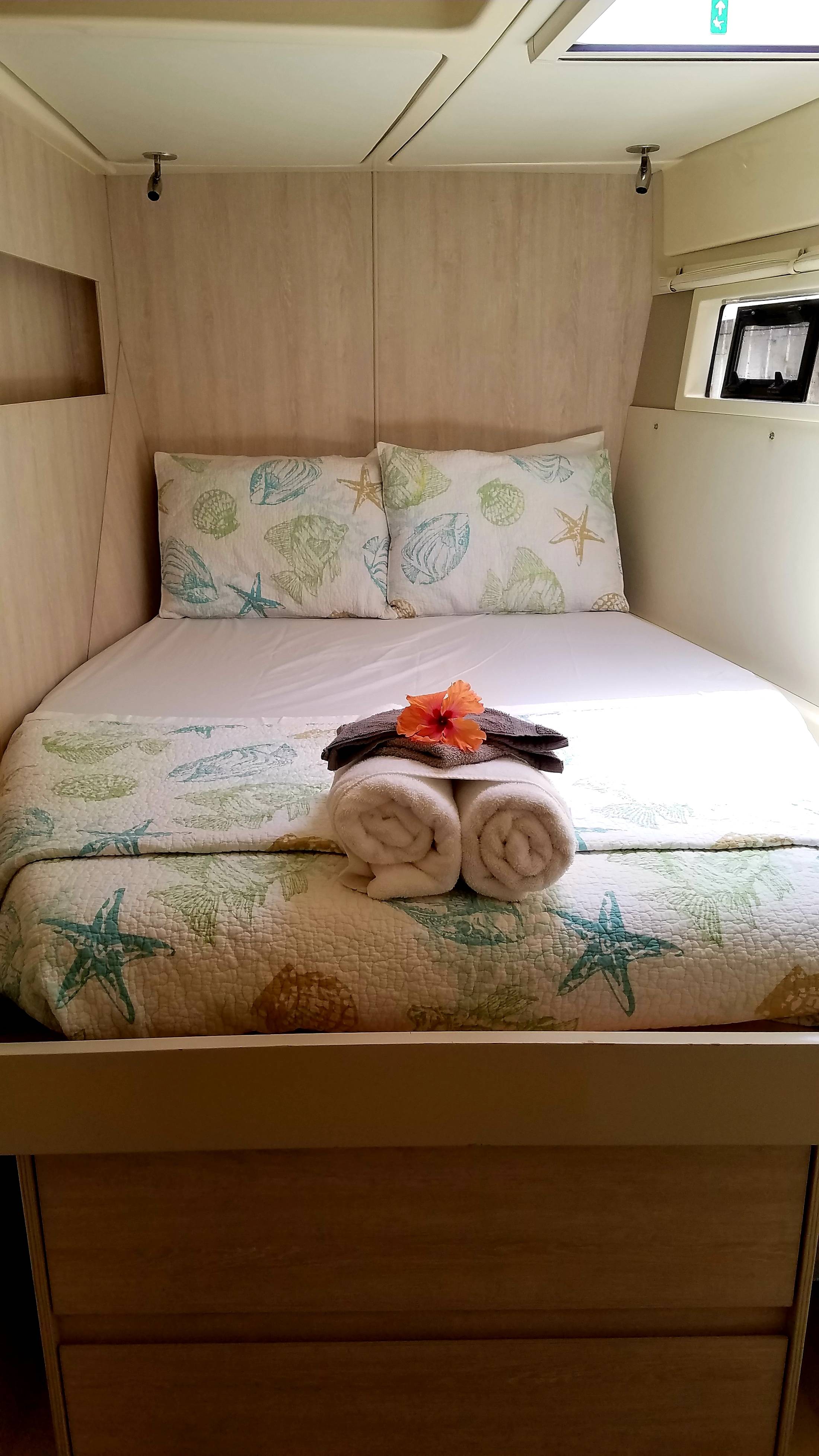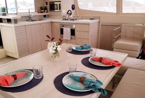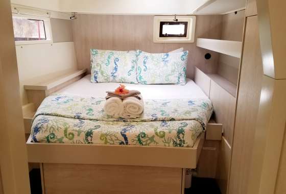 Endless Options is an airy and chic 48 ft. 2015 Leopard catamaran. With her welcoming island-style décor , she offers spacious indoor and outdoor areas ideal for families or groups of friends. Endless Options features four queen cabins, each equipped with air conditioning and ensuite facilities, accommodating a total of six guests. She also boasts expansive dining areas, state-of-the-art entertainment systems, and a variety of water toys to enjoy.