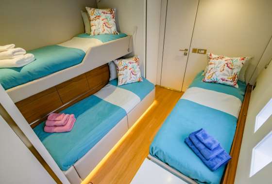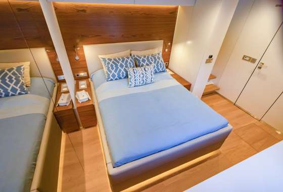 11 guests in 5 cabins, 1 master, 3 VIP and 1 triple, all with ensuite facilities.