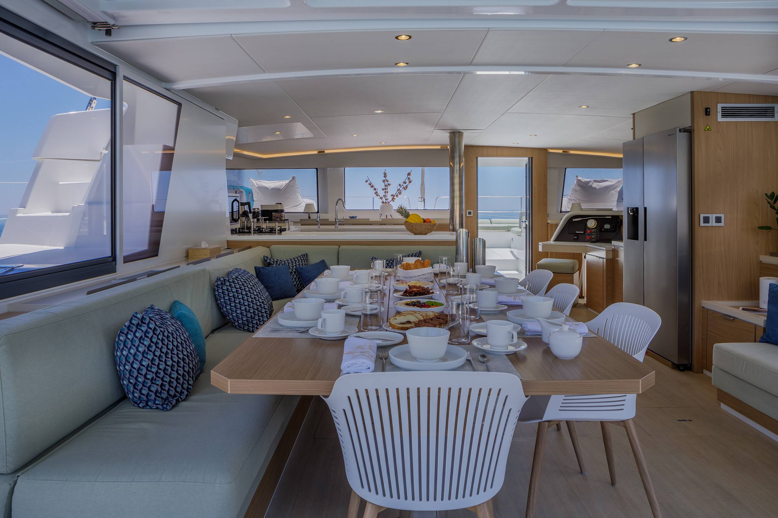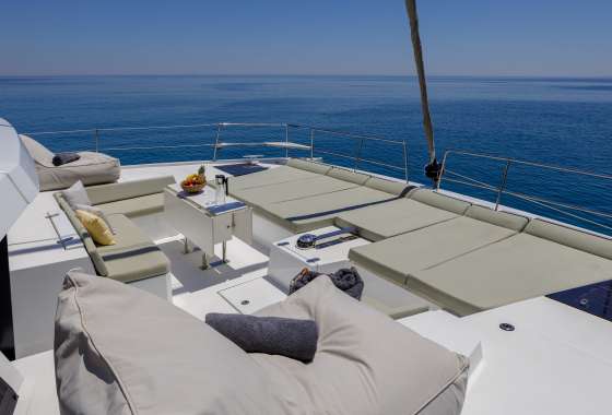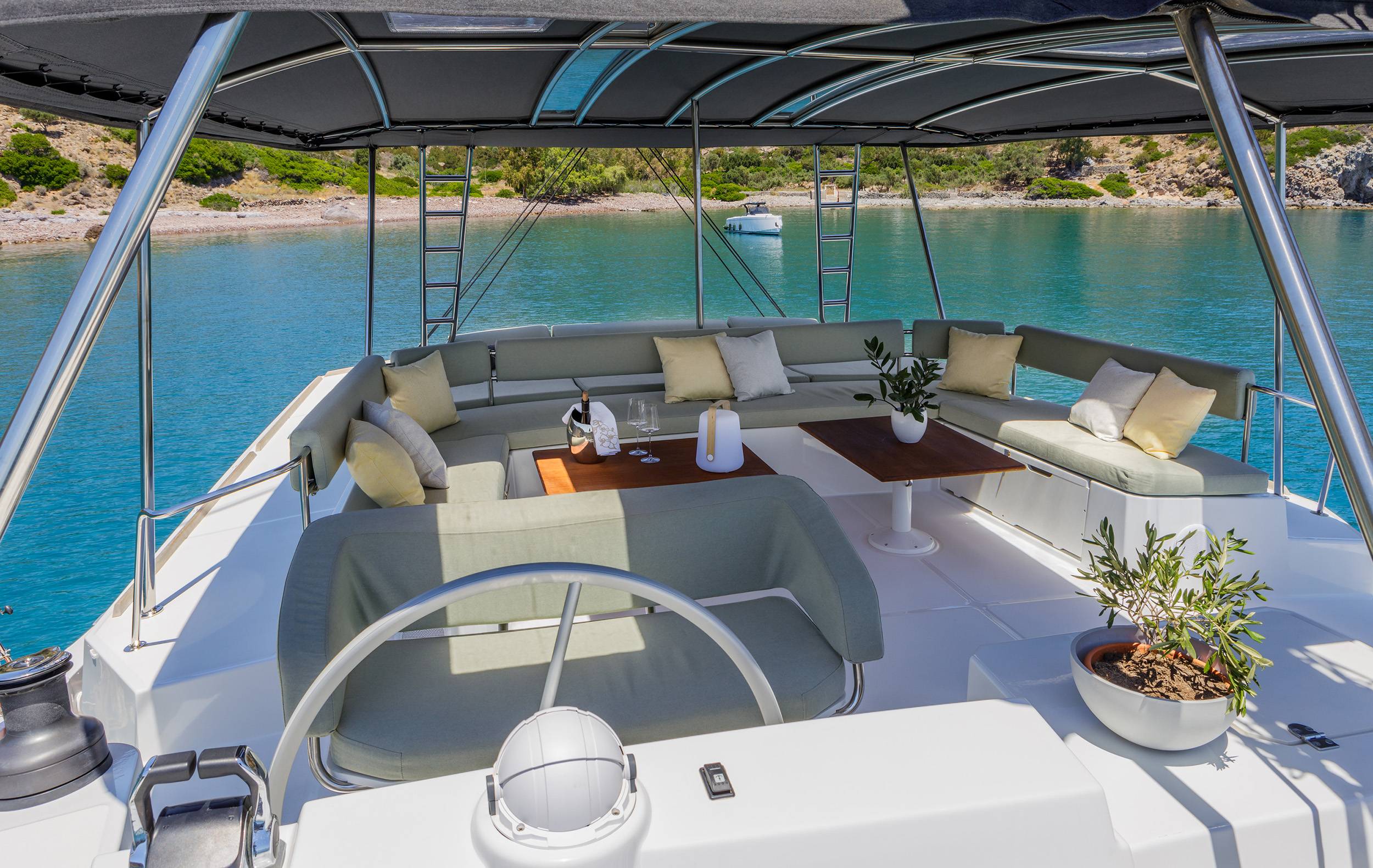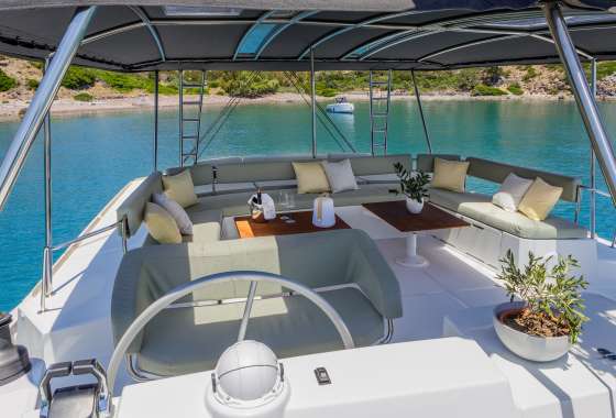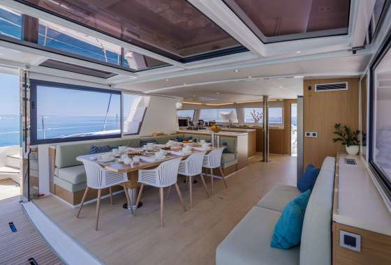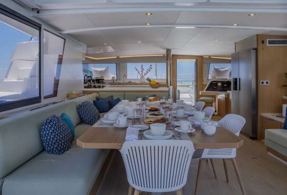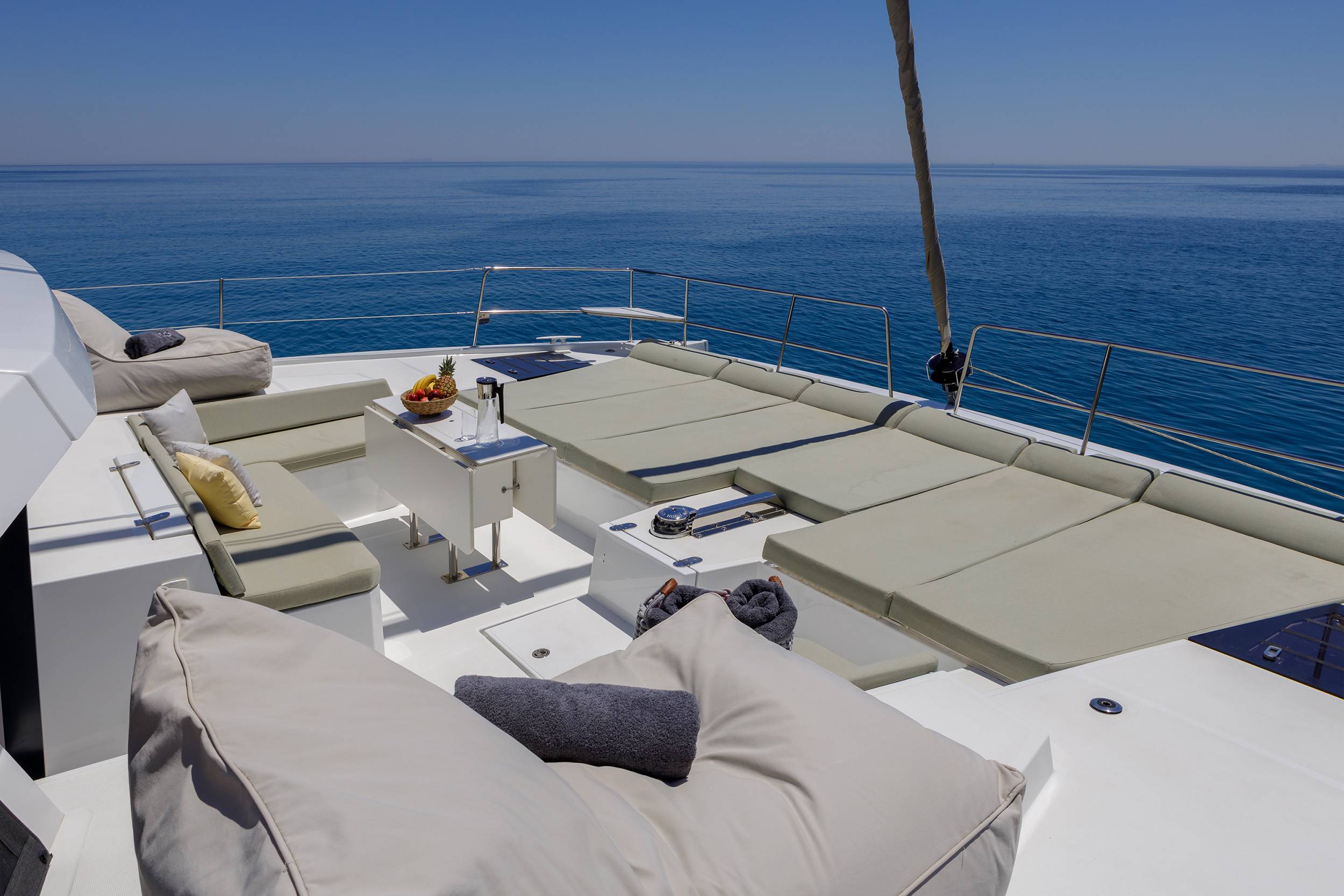Libra is characterized by the enormous outdoor & indoor spaces! Guests can enjoy sitting comfortably in the forward deck saloon which is accessed directly from inside, open to the water.