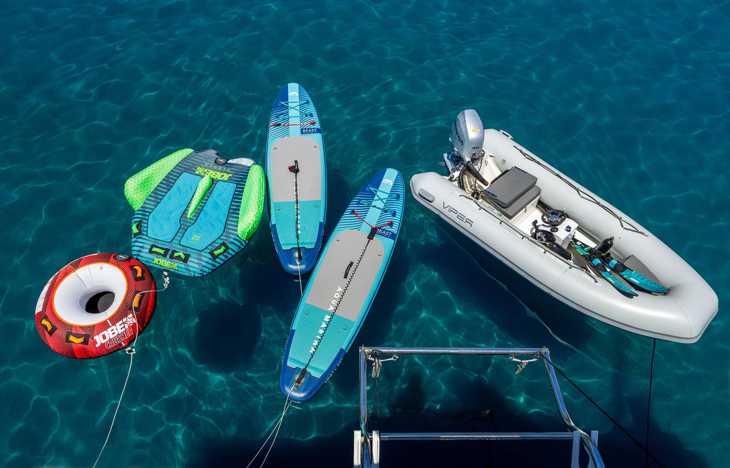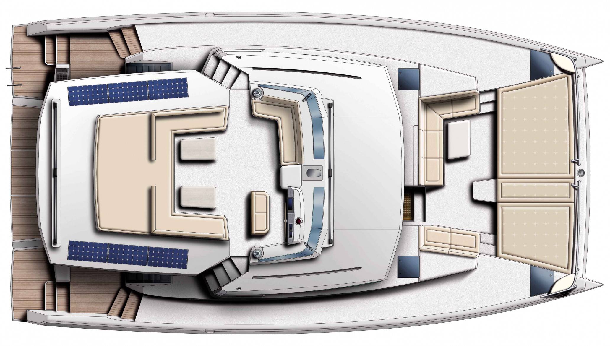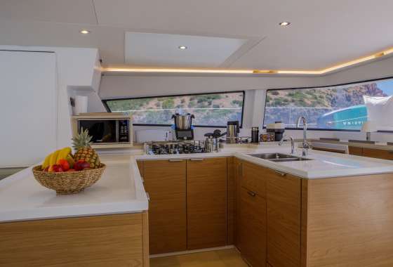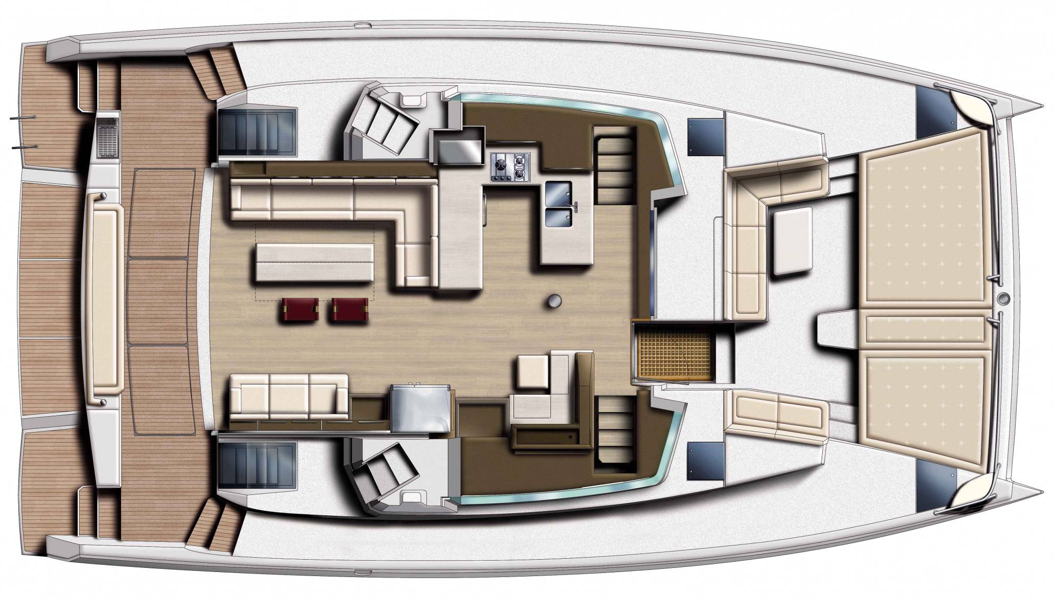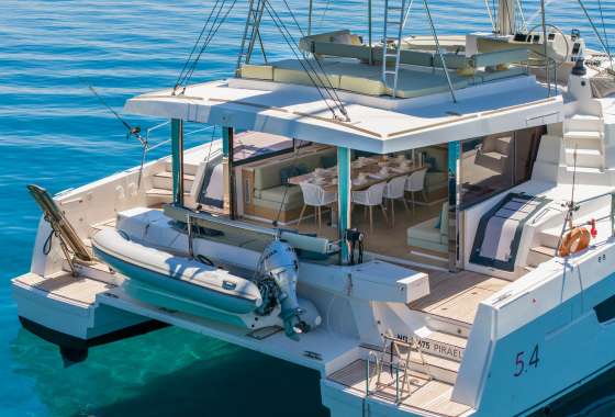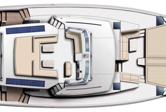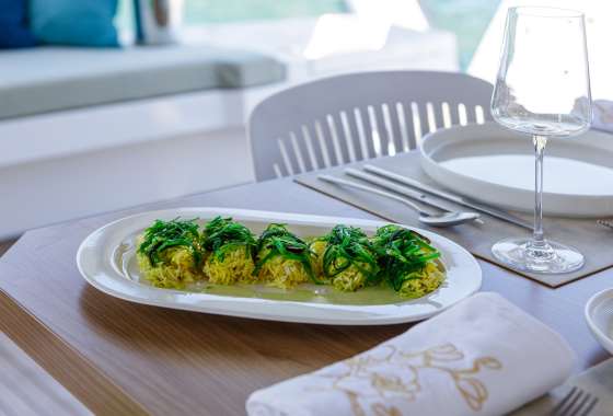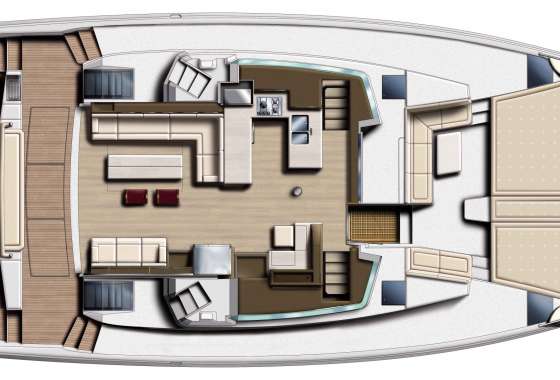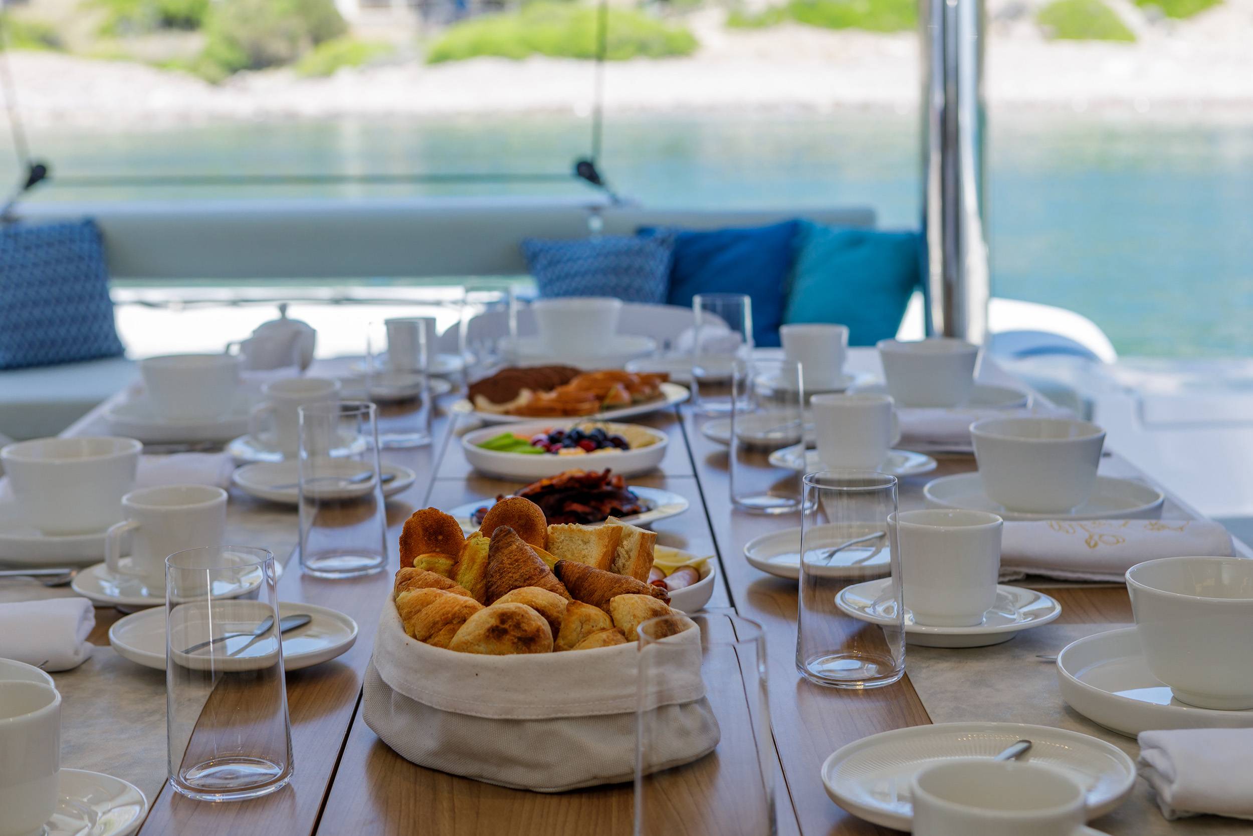 Libra is characterized by the enormous outdoor & indoor spaces! Guests can enjoy sitting comfortably in the forward deck saloon which is accessed directly from inside, open to the water.
