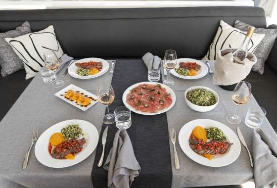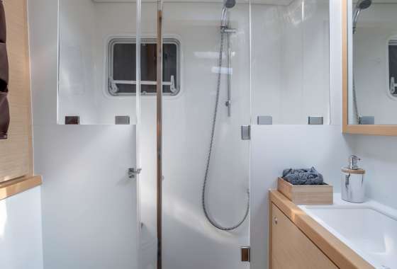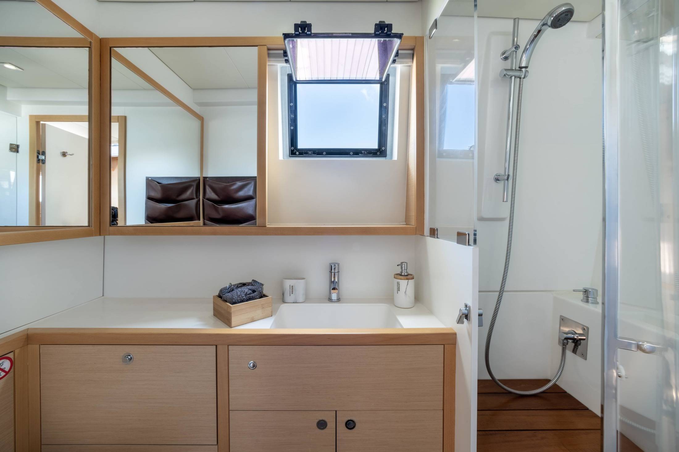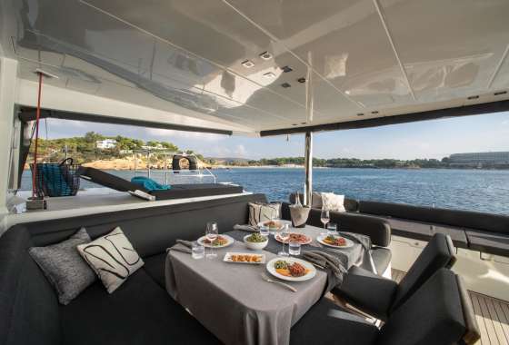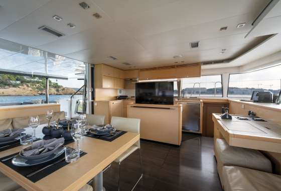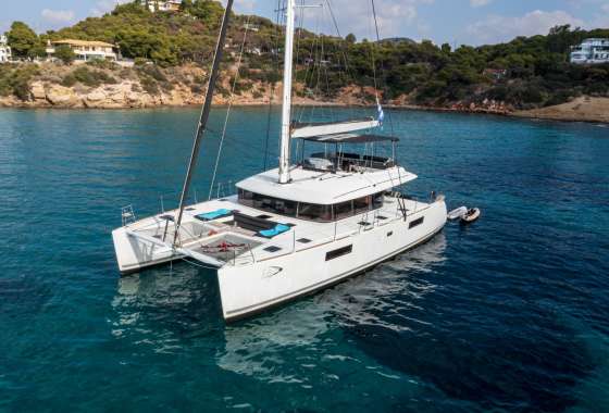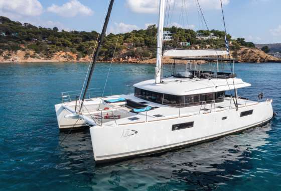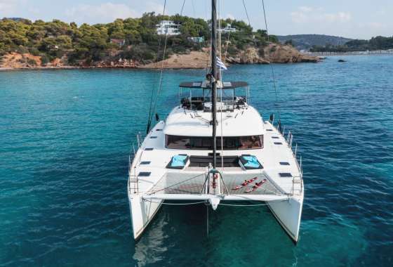 Moya is our Lagoon 560, a catamaran available for crewed charters throughout Greece. With 5 cabins and 5 WC, she is perfect for groups of up to 10 guests.