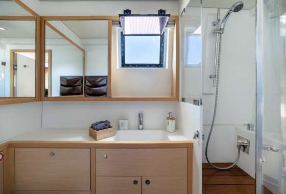 Moya ‘s genealogy comes from super yachts combining the world-renowned talents of the architectural firm VPLP and the design consultants Nauta and boasting all of the advanced features developed by the famous Lagoon Shipyard in one luxurious deep-water catamaran that will definitely exceed your expectations in terms of comfort, handling and style!