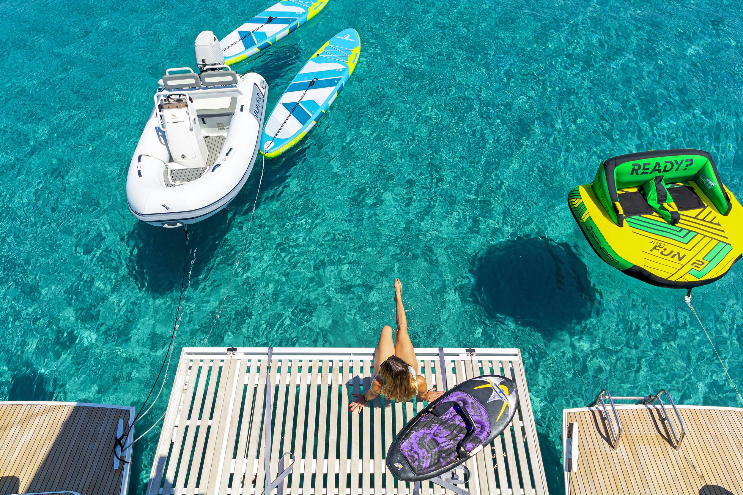 Step aboard MY STAR, a stunning Lagoon 46 catamaran built in 2022, offering the perfect blend of luxury, comfort, and adventure. Designed for both relaxation and thrill-seeking, she boasts spacious living areas, modern interiors, and plenty of outdoor lounging space to soak in breathtaking views. Whether you want to unwind on the expansive deck, bask in the sun, or dive into the crystal-clear waters, this yacht has it all. She comes fully equipped with an exciting selection of water toys, ensuring endless fun on the sea.