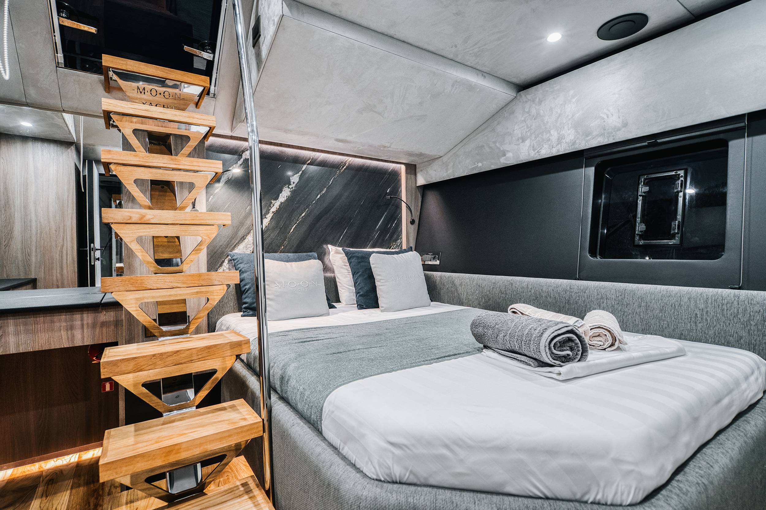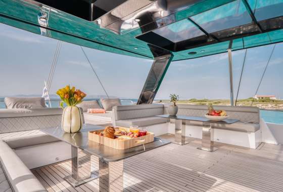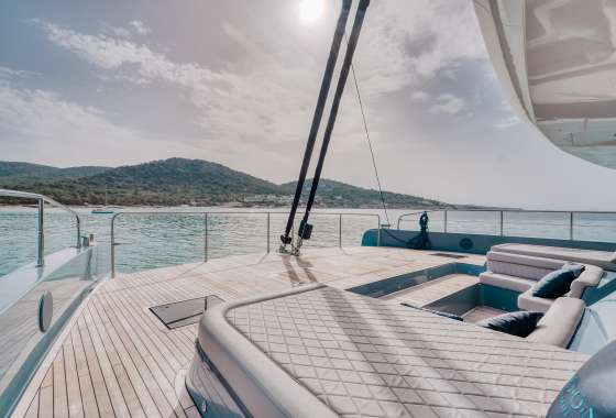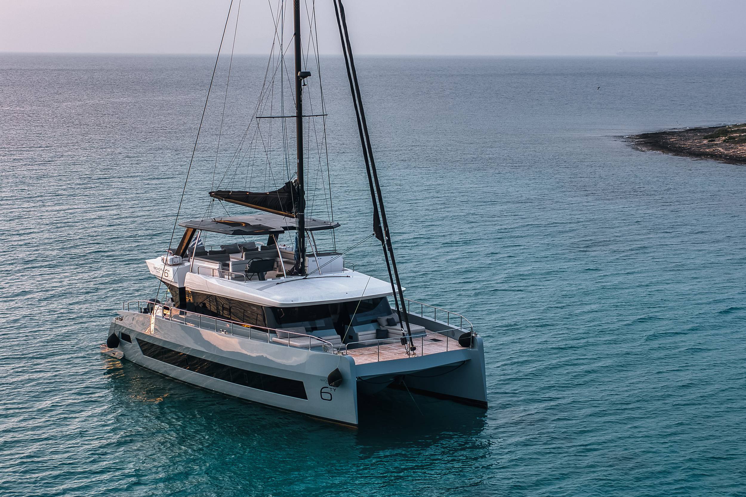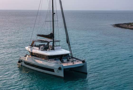 Introducing the Seabarit LX Moon Yacht 60 Catamaran, a luxurious 18.32m sailing cruiser designed for ultimate comfort. With a 5-cabin layout, including a master suite and 4 guest cabins, all with en-suite facilities, it offers unparalleled on board experience. The spacious saloon connects seamlessly to the foredeck, aft deck, and a large flybridge with seating area, a bar, and a dining space. Customized with premium materials like leather, Alcantara, and natural wood, this yacht combines elegance, performance, and craftsmanship for the most refined tastes.