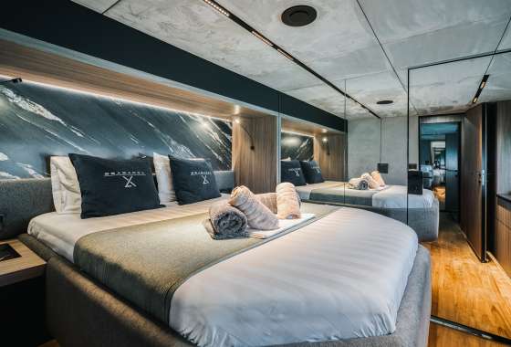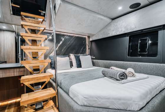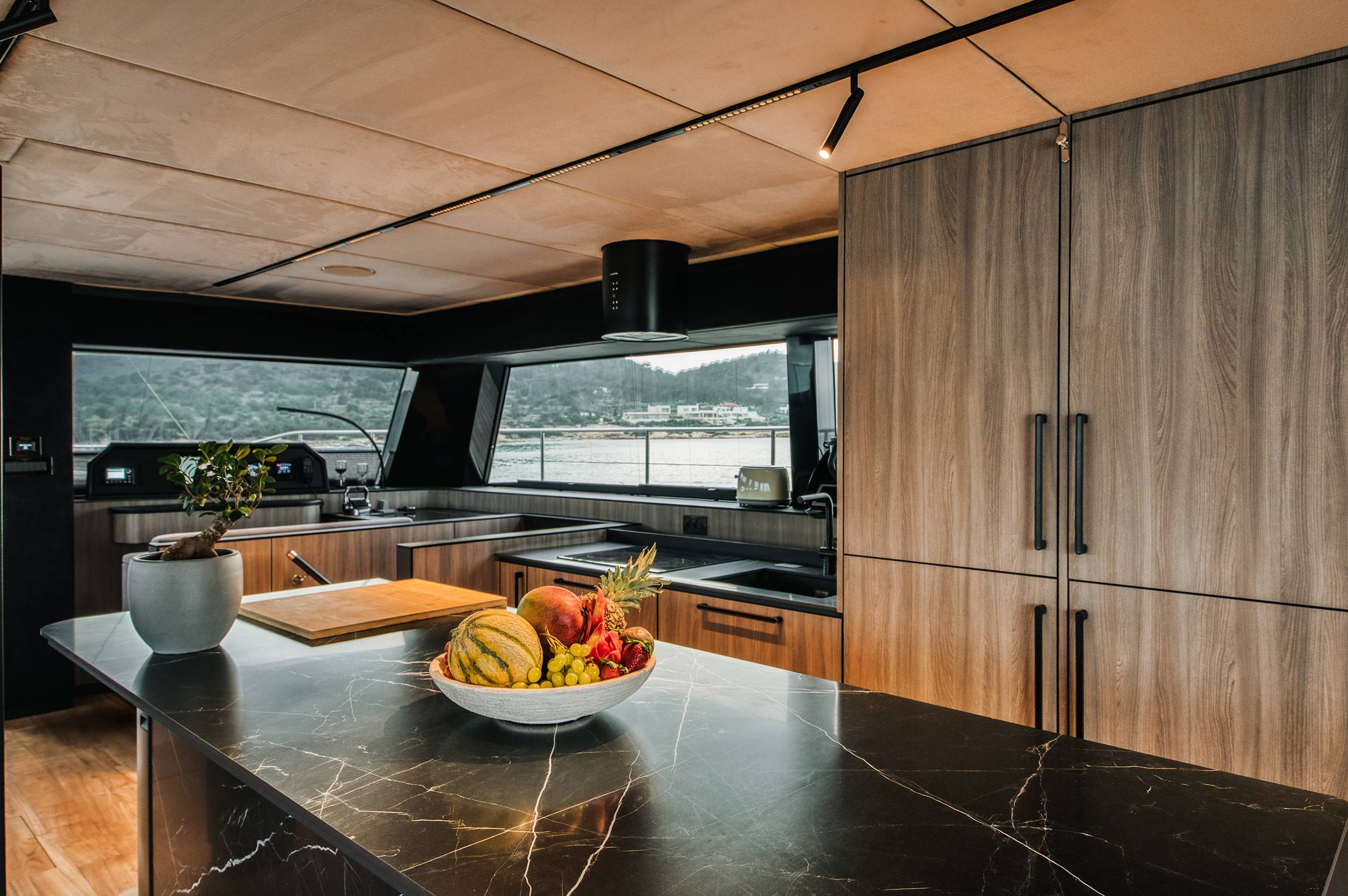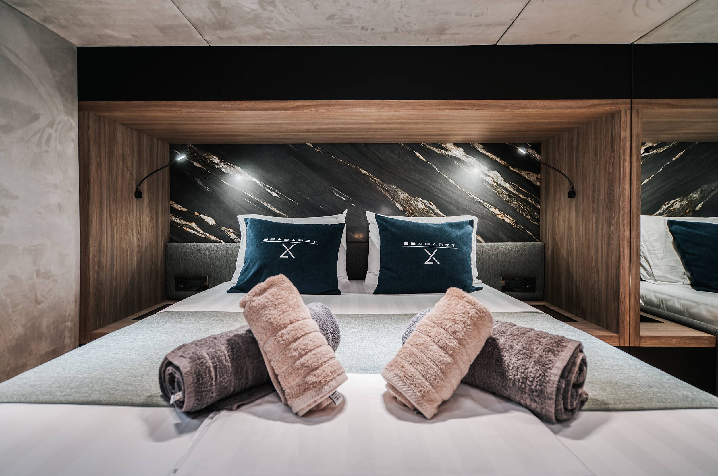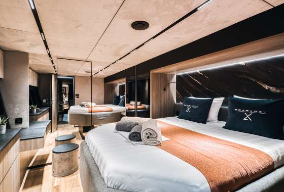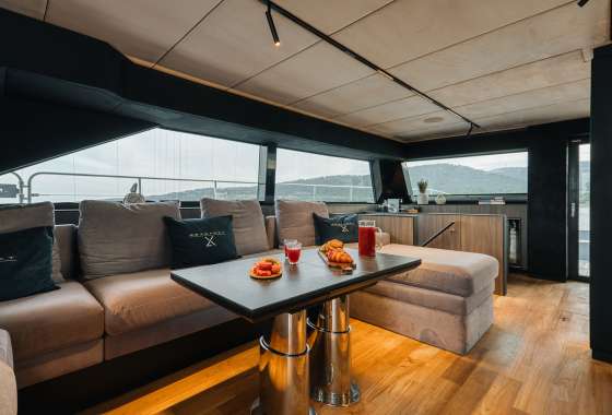Introducing the Seabarit LX Moon Yacht 60 Catamaran, a luxurious 18.32m sailing cruiser designed for ultimate comfort. With a 5-cabin layout, including a master suite and 4 guest cabins, all with en-suite facilities, it offers unparalleled on board experience. The spacious saloon connects seamlessly to the foredeck, aft deck, and a large flybridge with seating area, a bar, and a dining space. Customized with premium materials like leather, Alcantara, and natural wood, this yacht combines elegance, performance, and craftsmanship for the most refined tastes.