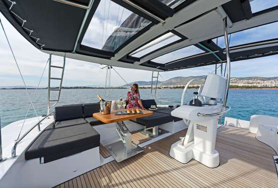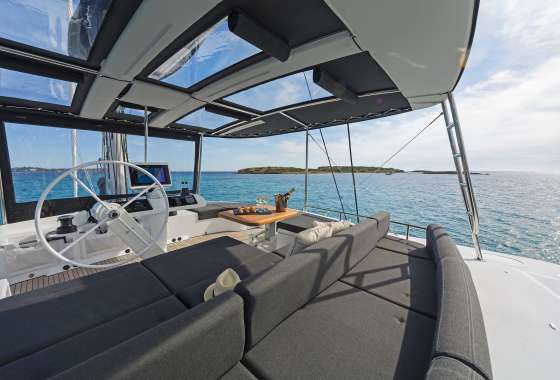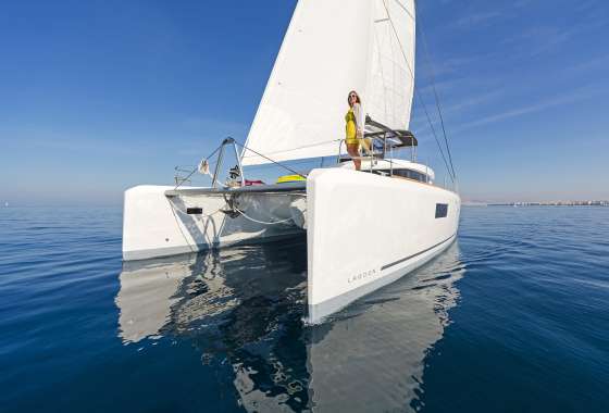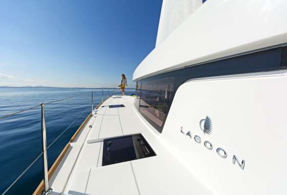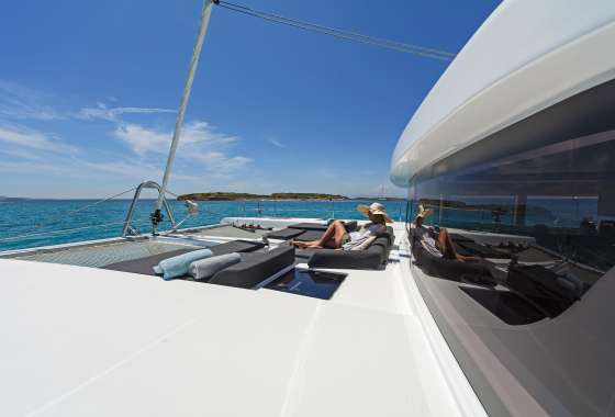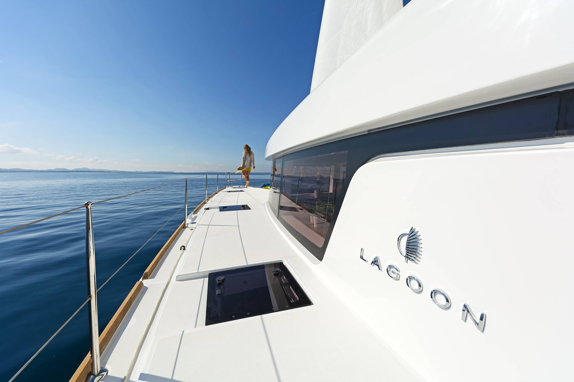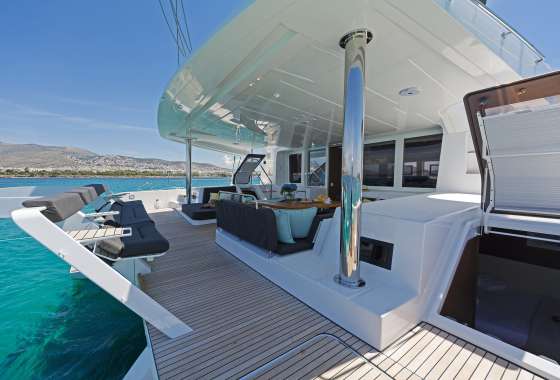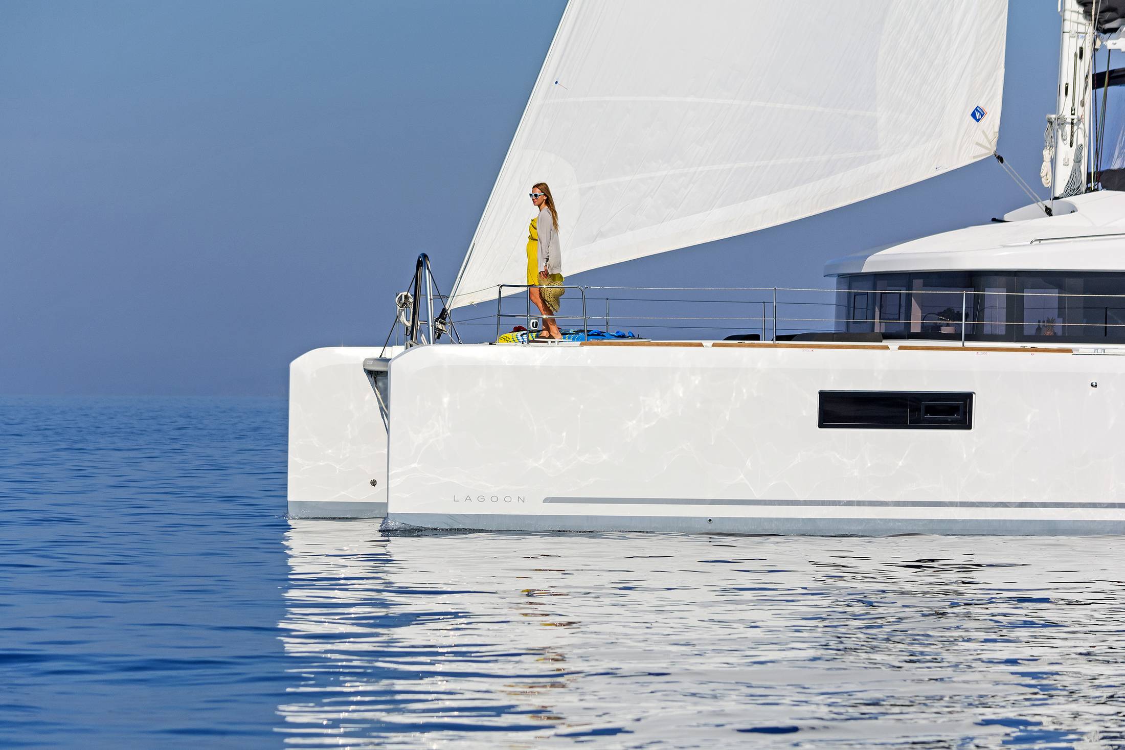 Lengthy discussions between VPLP yacht architects known for their offshore racing cats, the world renowned Italian Nauta design agency and the leading Lagoon shipyard resulted in this game changing yacht with diamond-shaped vertical bows, beveled hulls and a Gull-wing bridge deck marking a whole new era for cruising catamarans, an eye-catcher you cannot miss!