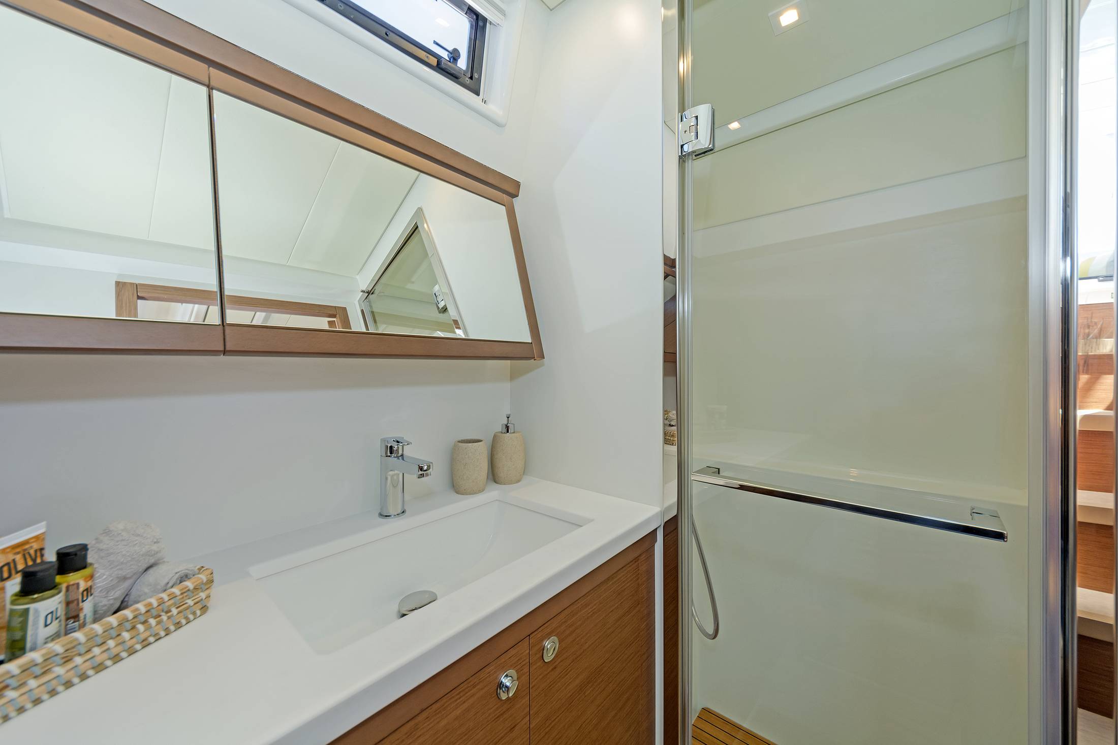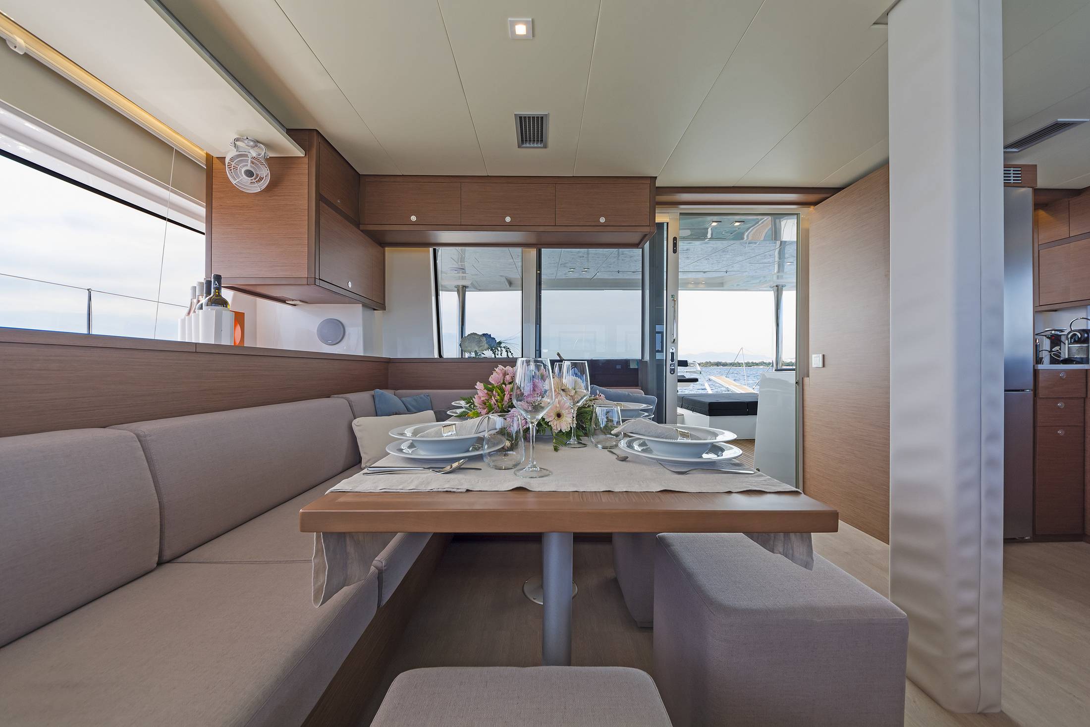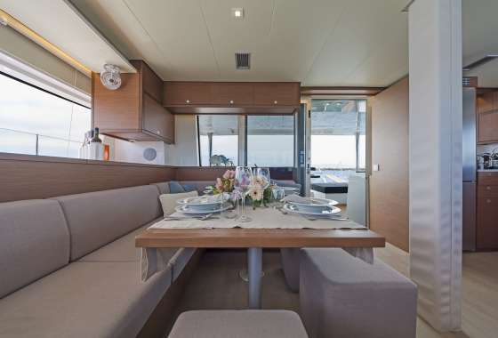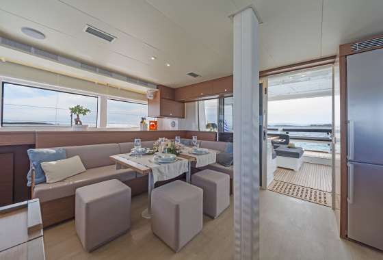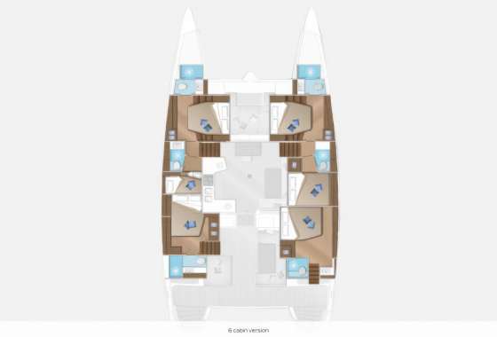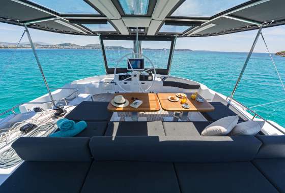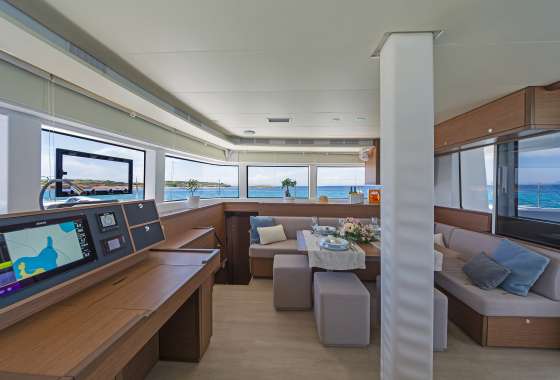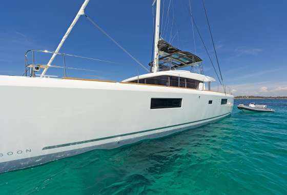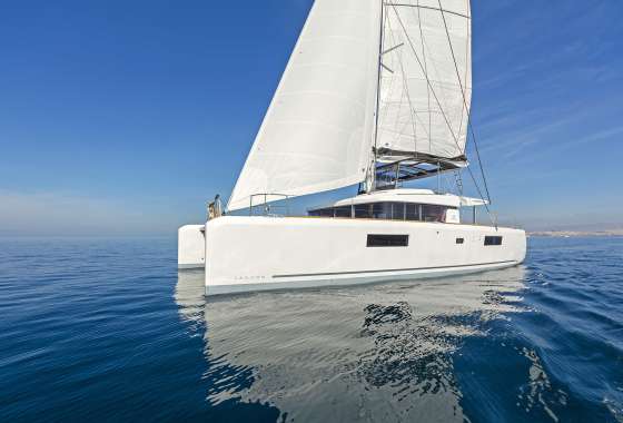 Lengthy discussions between VPLP yacht architects known for their offshore racing cats, the world renowned Italian Nauta design agency and the leading Lagoon shipyard resulted in this game changing yacht with diamond-shaped vertical bows, beveled hulls and a Gull-wing bridge deck marking a whole new era for cruising catamarans, an eye-catcher you cannot miss!