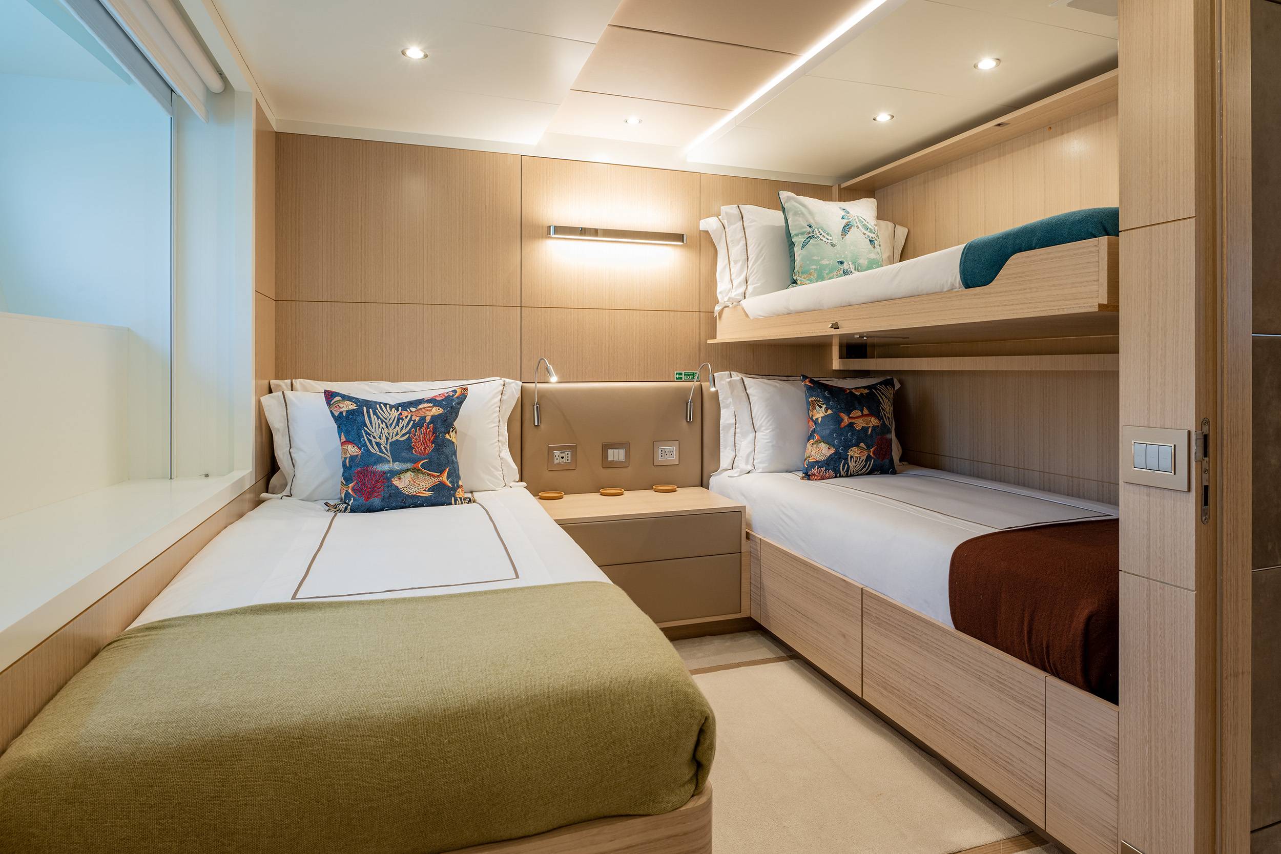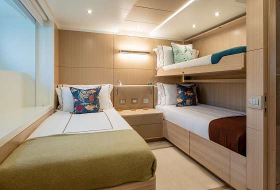 Consisting of 7: Captain, Engineer, Chef, Chief Stewardess, Assistant Stewardess, Bosun & Deckhand, all in separate compartments.
