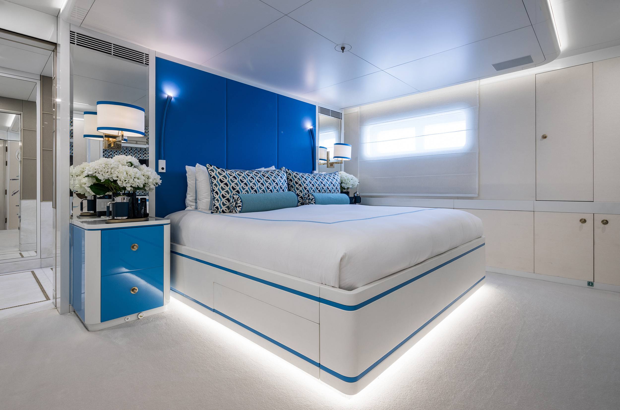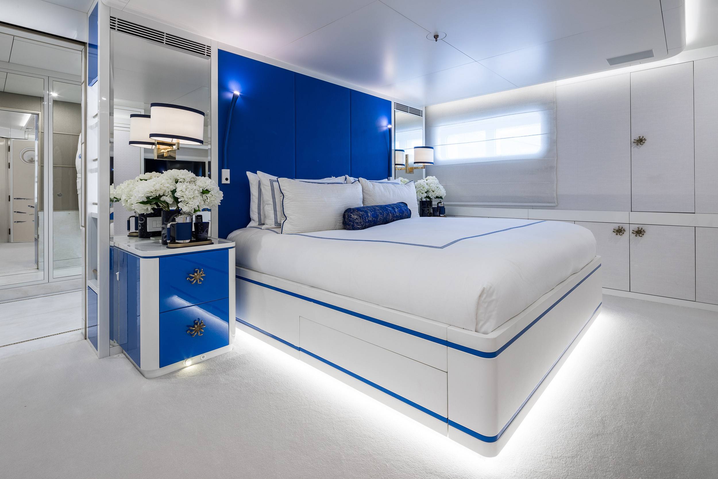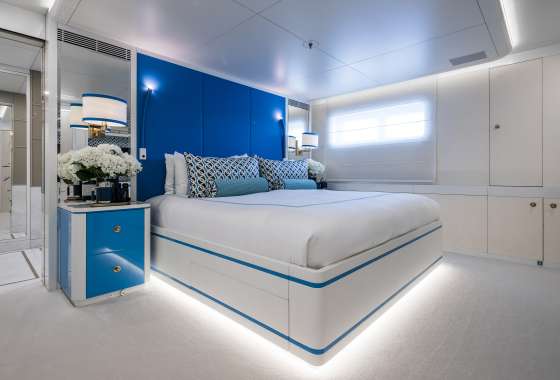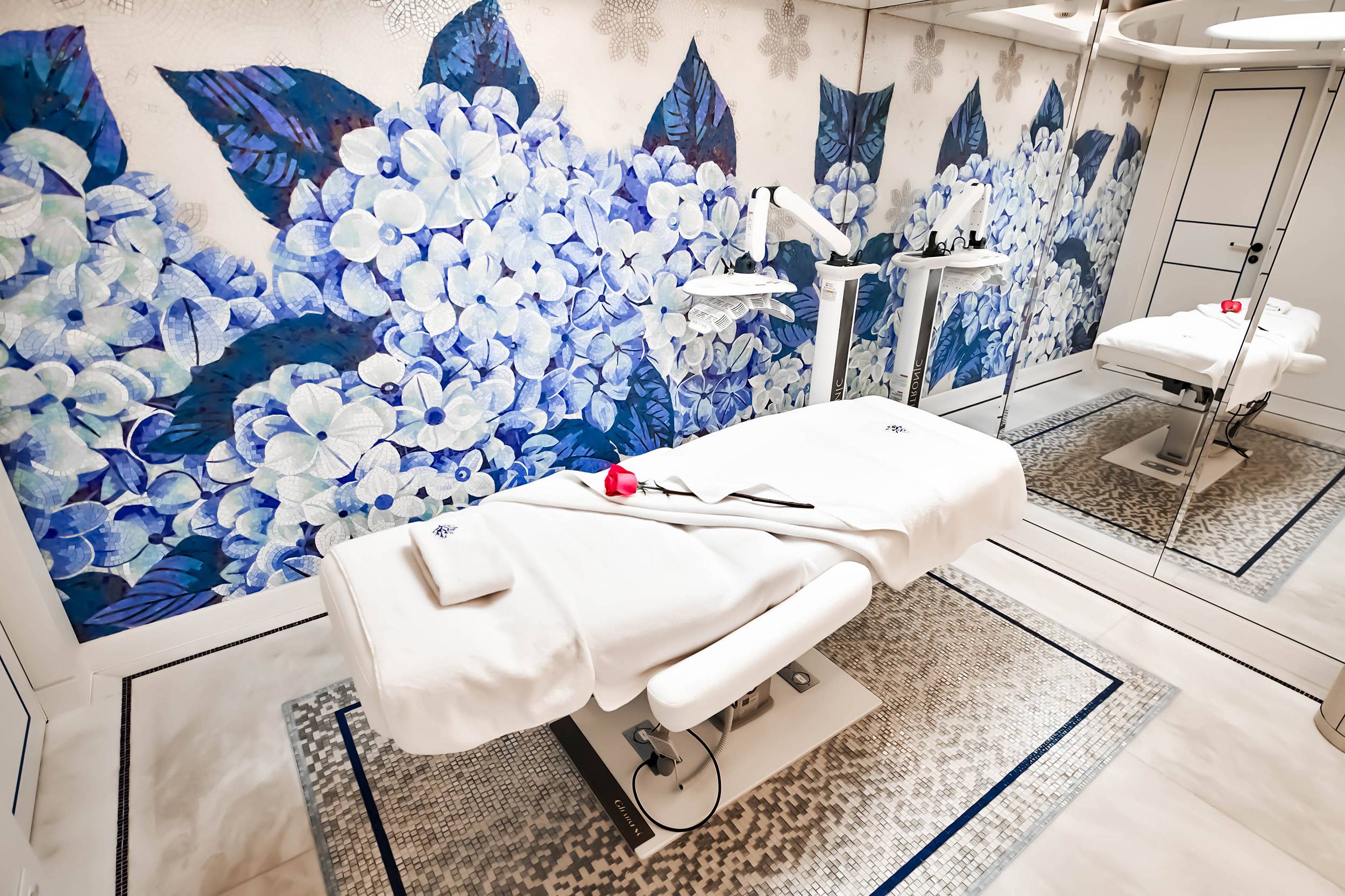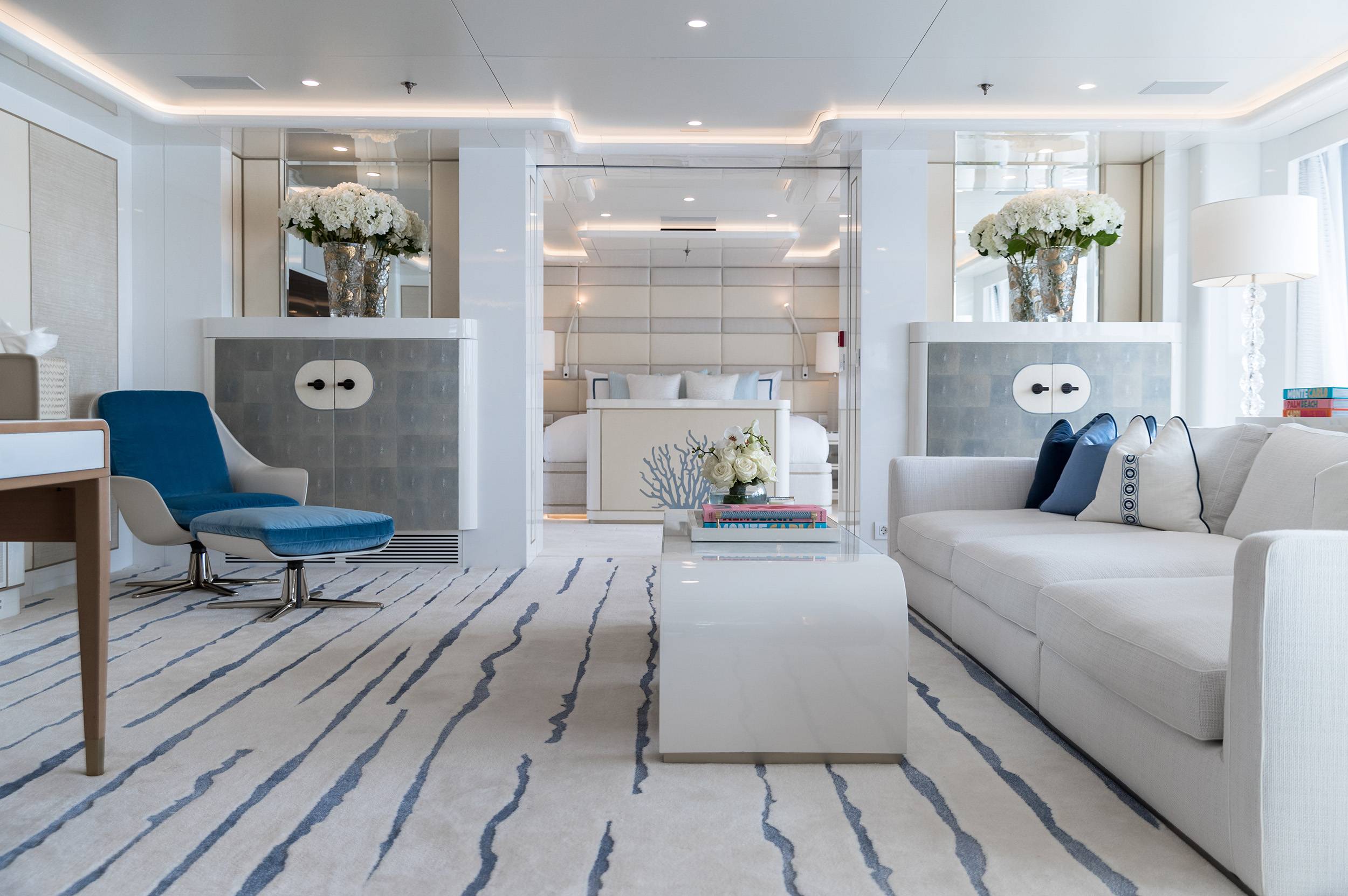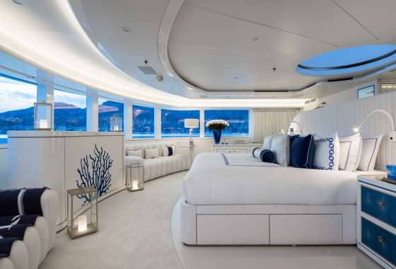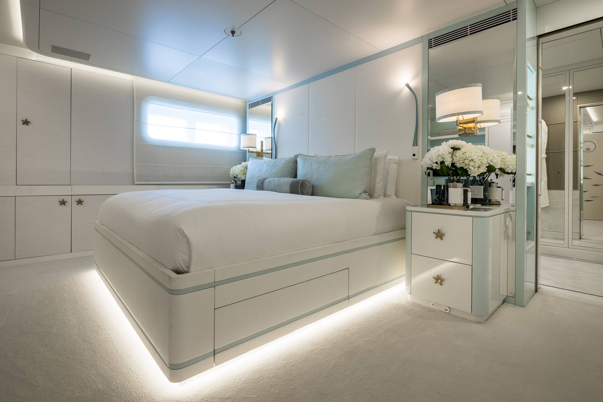 The master bedroom treatment room is equipped with an infrared sauna, a hair salon, luxurious bathrooms, and an onboard beauty therapist for massages, manicures, pedicures, and facials.