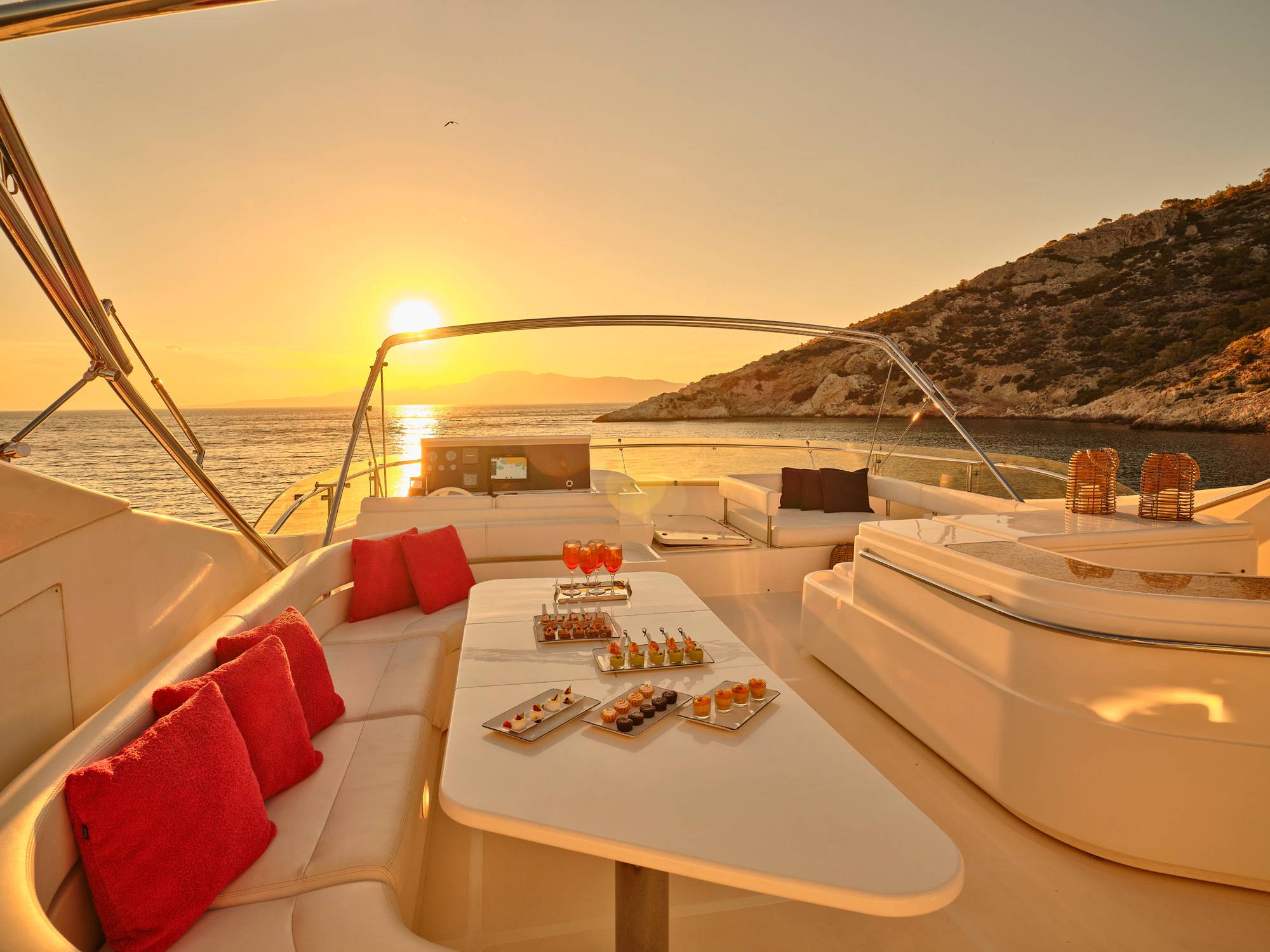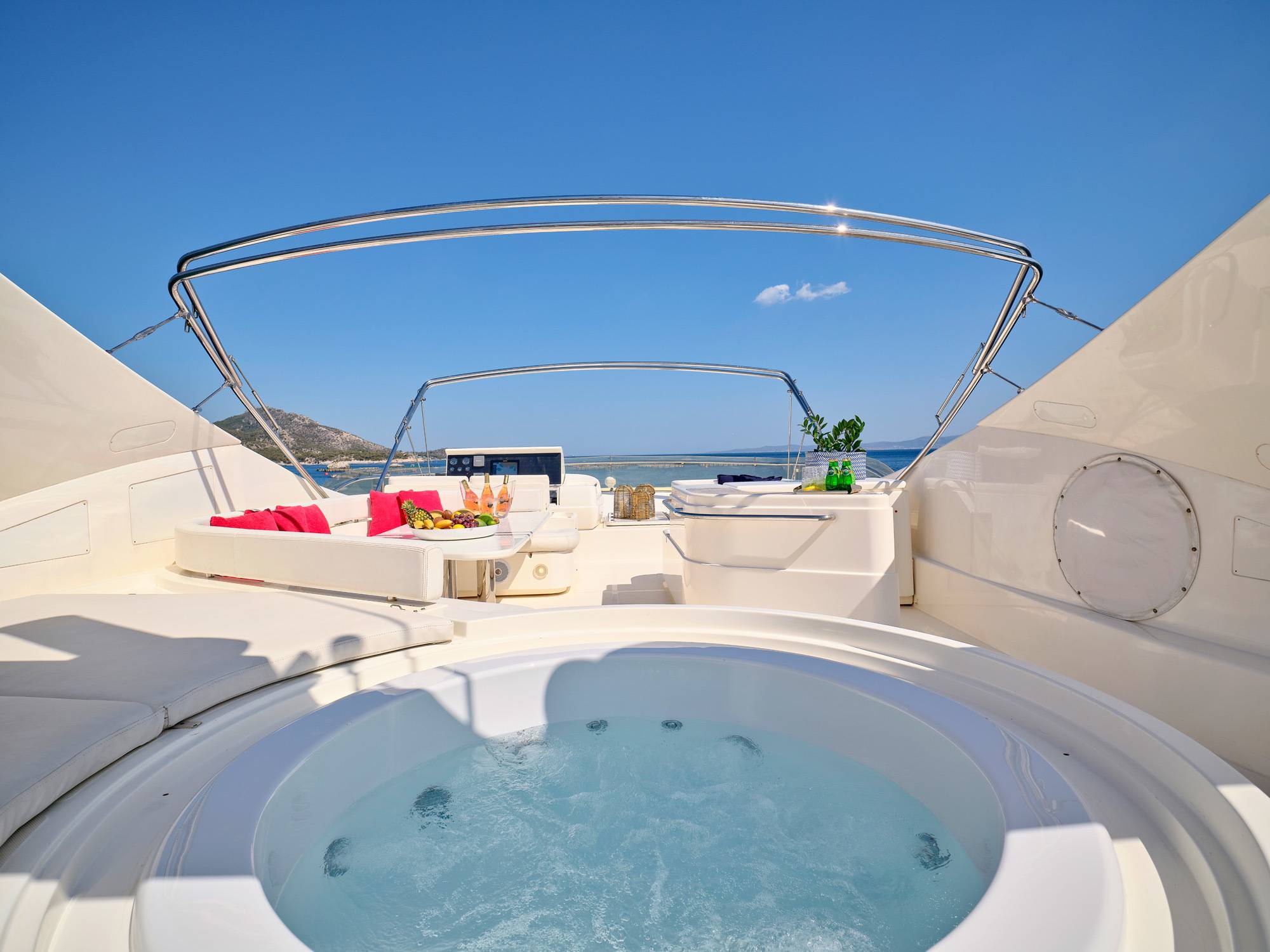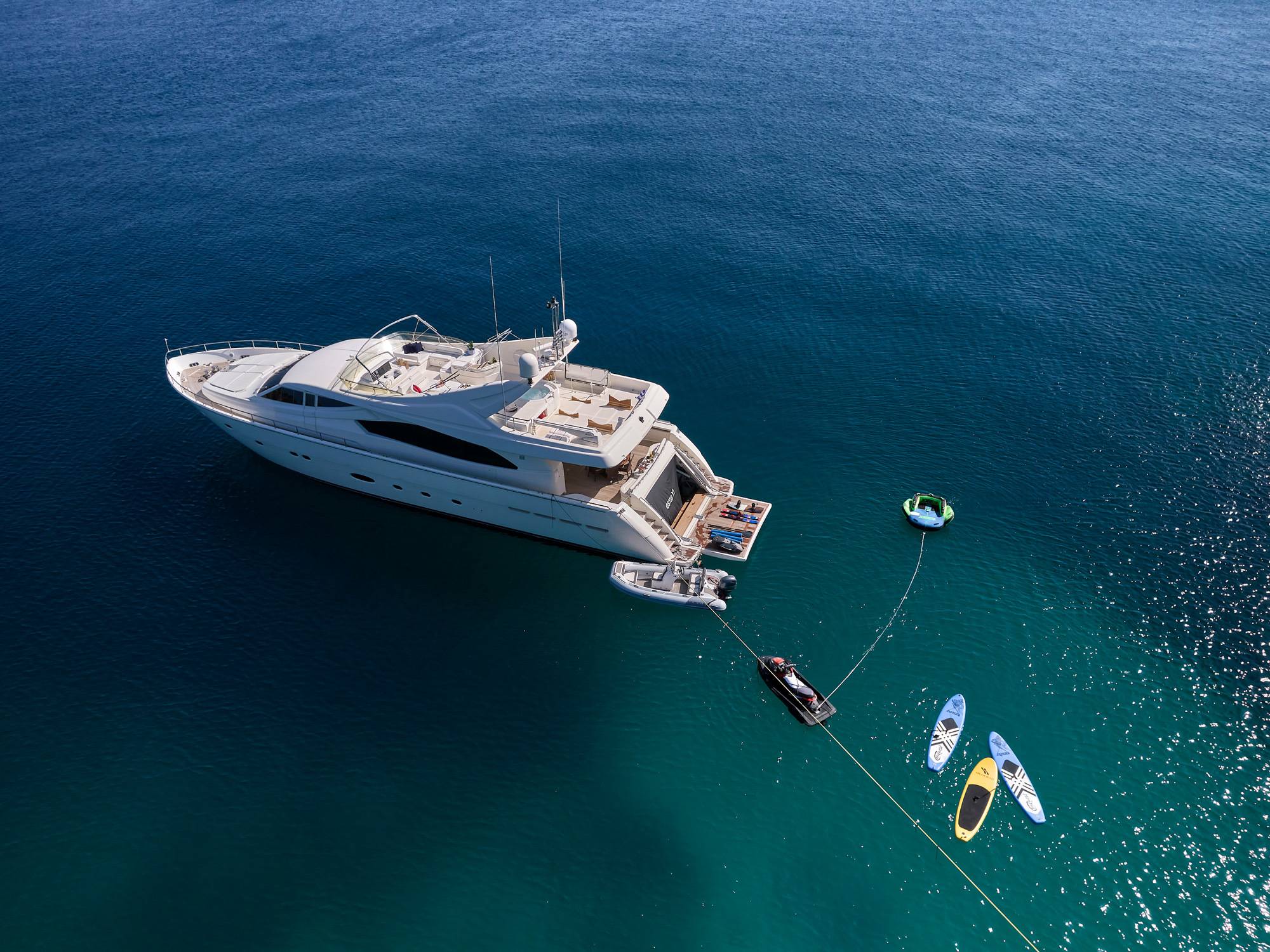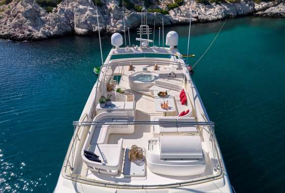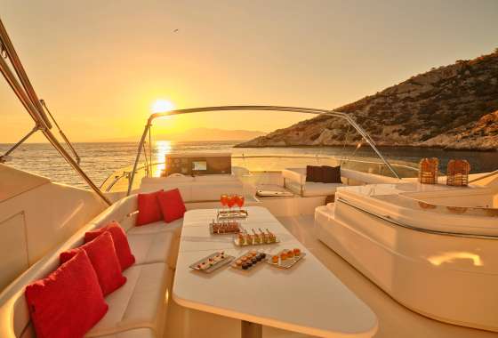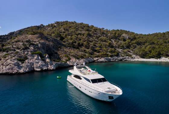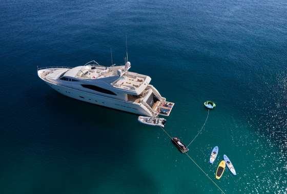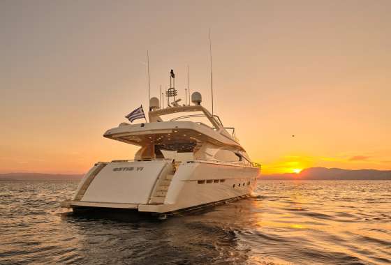 The 88 ft/26m Ferretti 880 motor yacht Estia Yi was built in 2004 by Ferretti and she has been through an extensive full refit in 2021. M/Y Estia Yi offers 4 lavish staterooms that accommodate up to 8+1 guests super comfortably. Her layout includes a master suite, a VIP cabin and 2 twin cabins (one with an extra pullman berth), all with en-suite facilities. Her professional and experienced crew of 5 members take care of Estia Yi’s guests onboard promising a once in a lifetime yachting experience. Among other amenities, the M/Y Estia Yi features a spacious sundeck fully equipped with large sun beds for lounging, an alfresco dining area and a Jacuzzi. In addition, she provides an aft garage which opens and is transformed into a swimming platform, ideal for beach club or romantic dining area. Estia Yi's impressive leisure and entertainment facilities make her the ideal charter yacht for socializing and entertaining with family and friends.