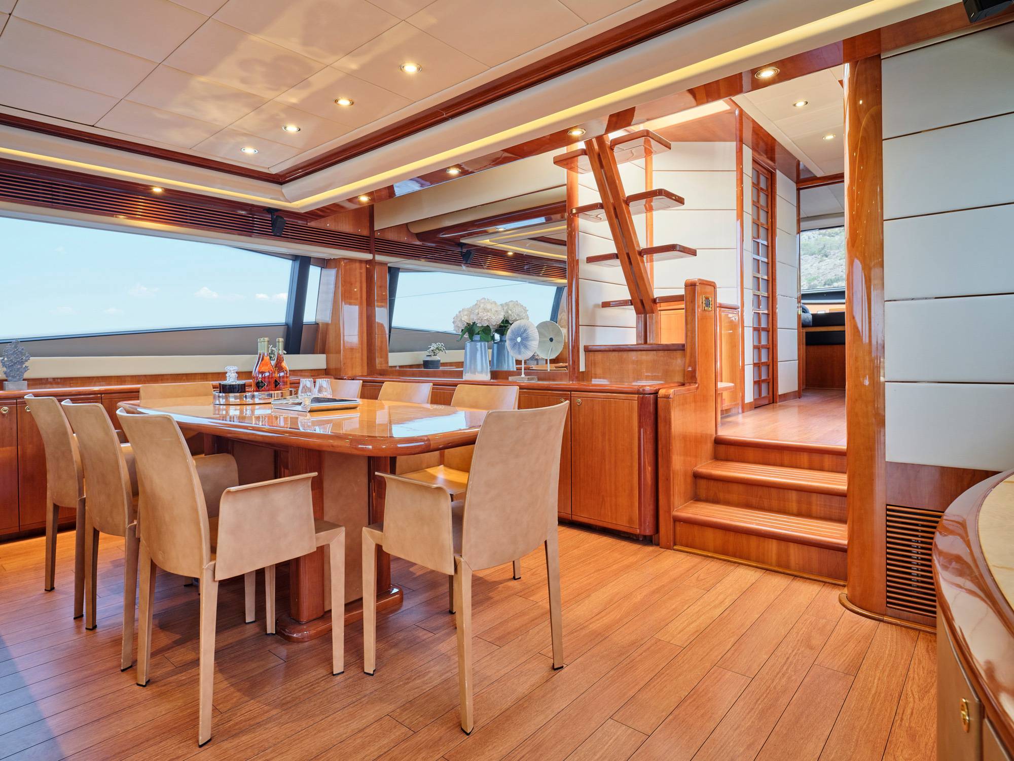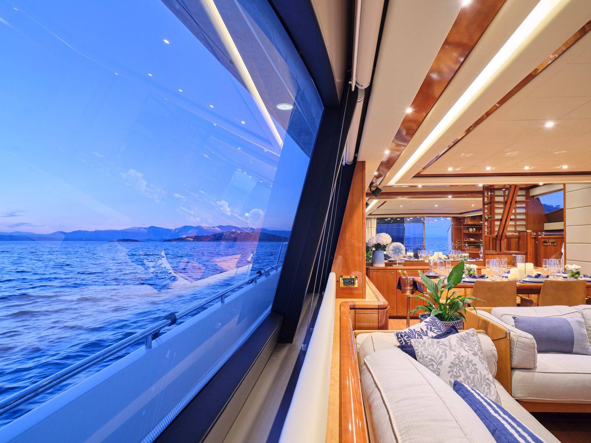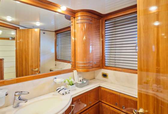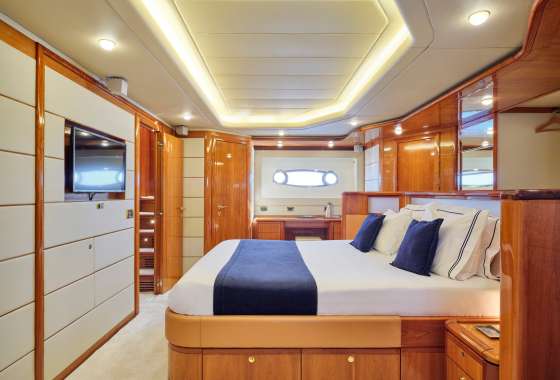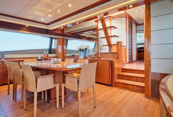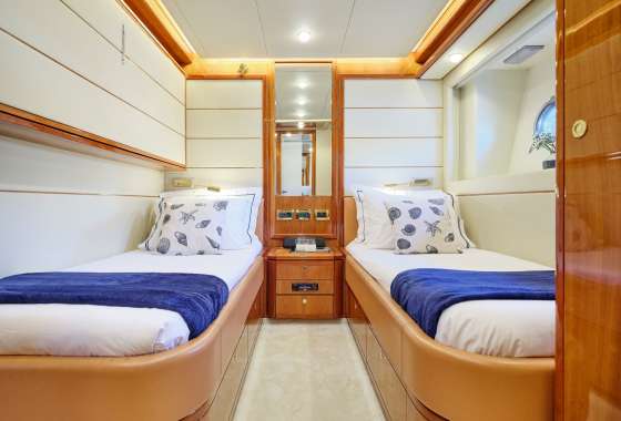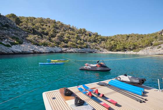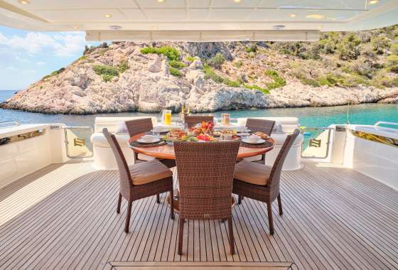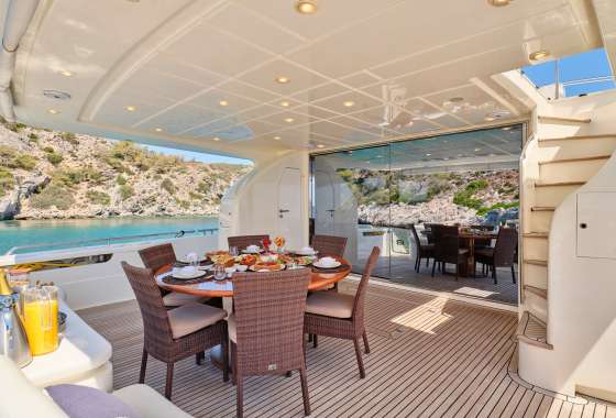 The 88 ft/26m Ferretti 880 motor yacht Estia Yi was built in 2004 by Ferretti and she has been through an extensive full refit in 2021. M/Y Estia Yi offers 4 lavish staterooms that accommodate up to 8+1 guests super comfortably. Her layout includes a master suite, a VIP cabin and 2 twin cabins (one with an extra pullman berth), all with en-suite facilities. Her professional and experienced crew of 5 members take care of Estia Yi’s guests onboard promising a once in a lifetime yachting experience. Among other amenities, the M/Y Estia Yi features a spacious sundeck fully equipped with large sun beds for lounging, an alfresco dining area and a Jacuzzi. In addition, she provides an aft garage which opens and is transformed into a swimming platform, ideal for beach club or romantic dining area. Estia Yi's impressive leisure and entertainment facilities make her the ideal charter yacht for socializing and entertaining with family and friends.