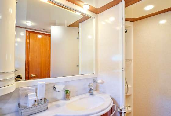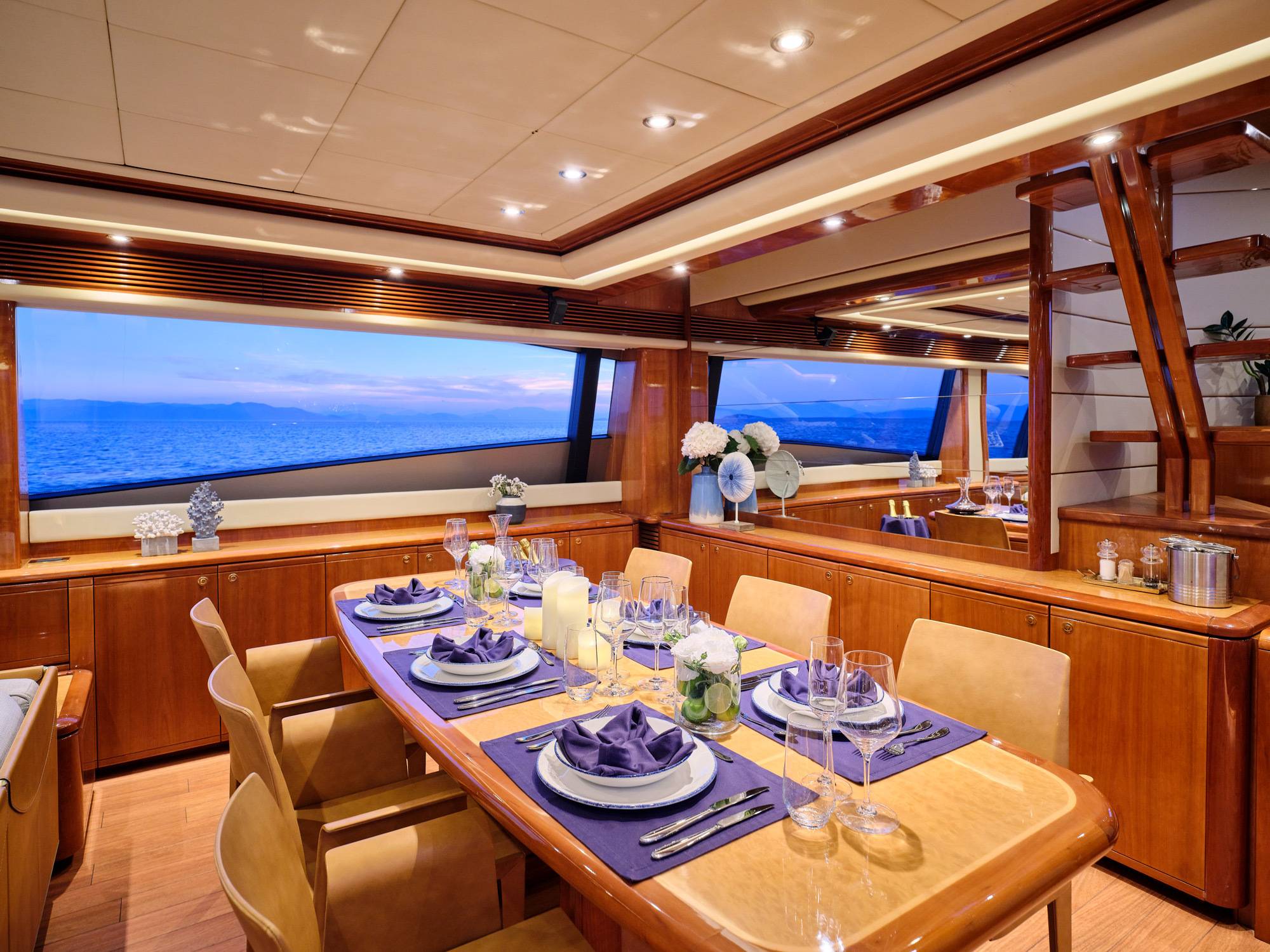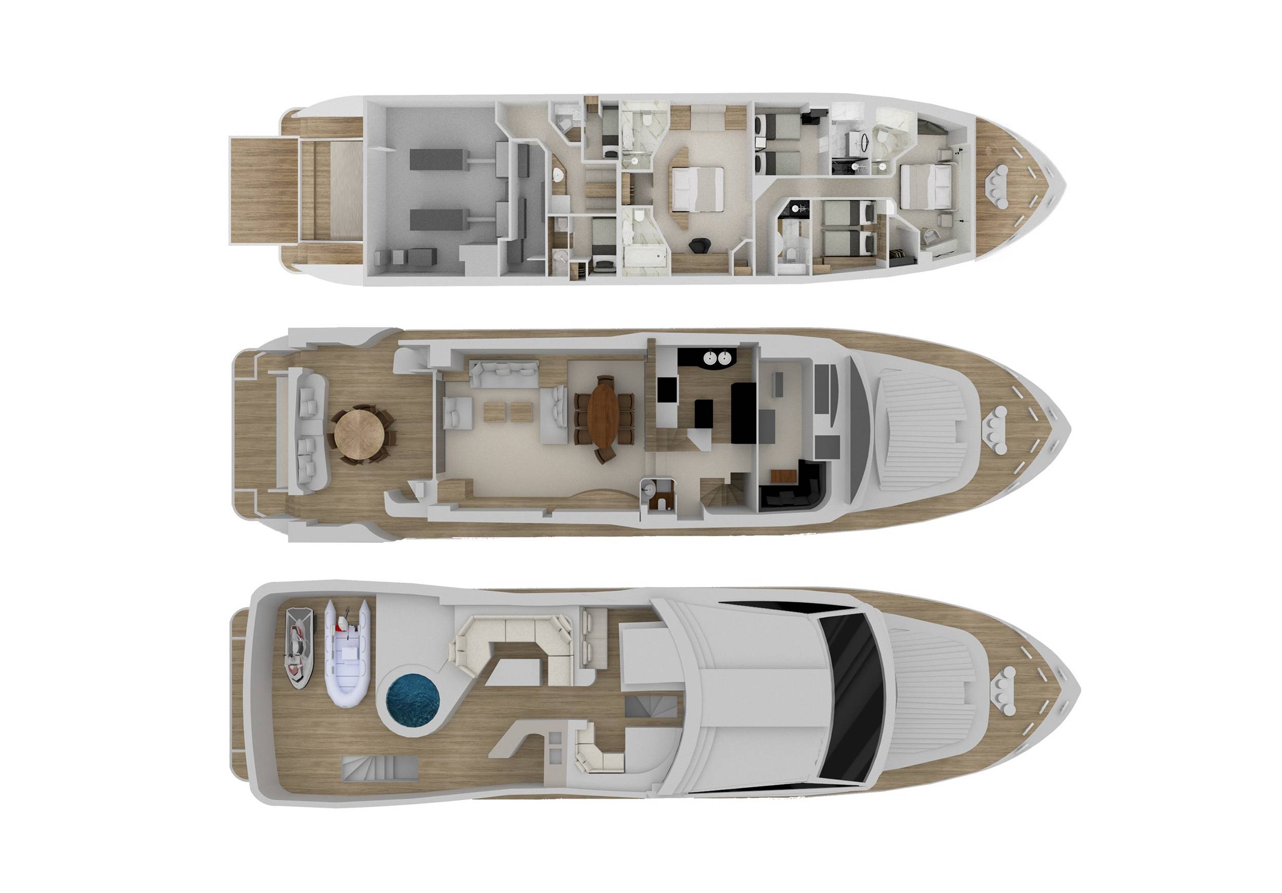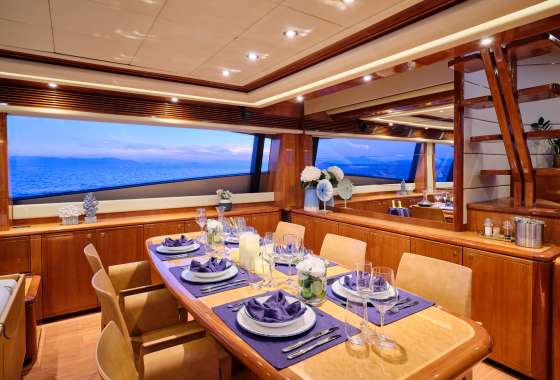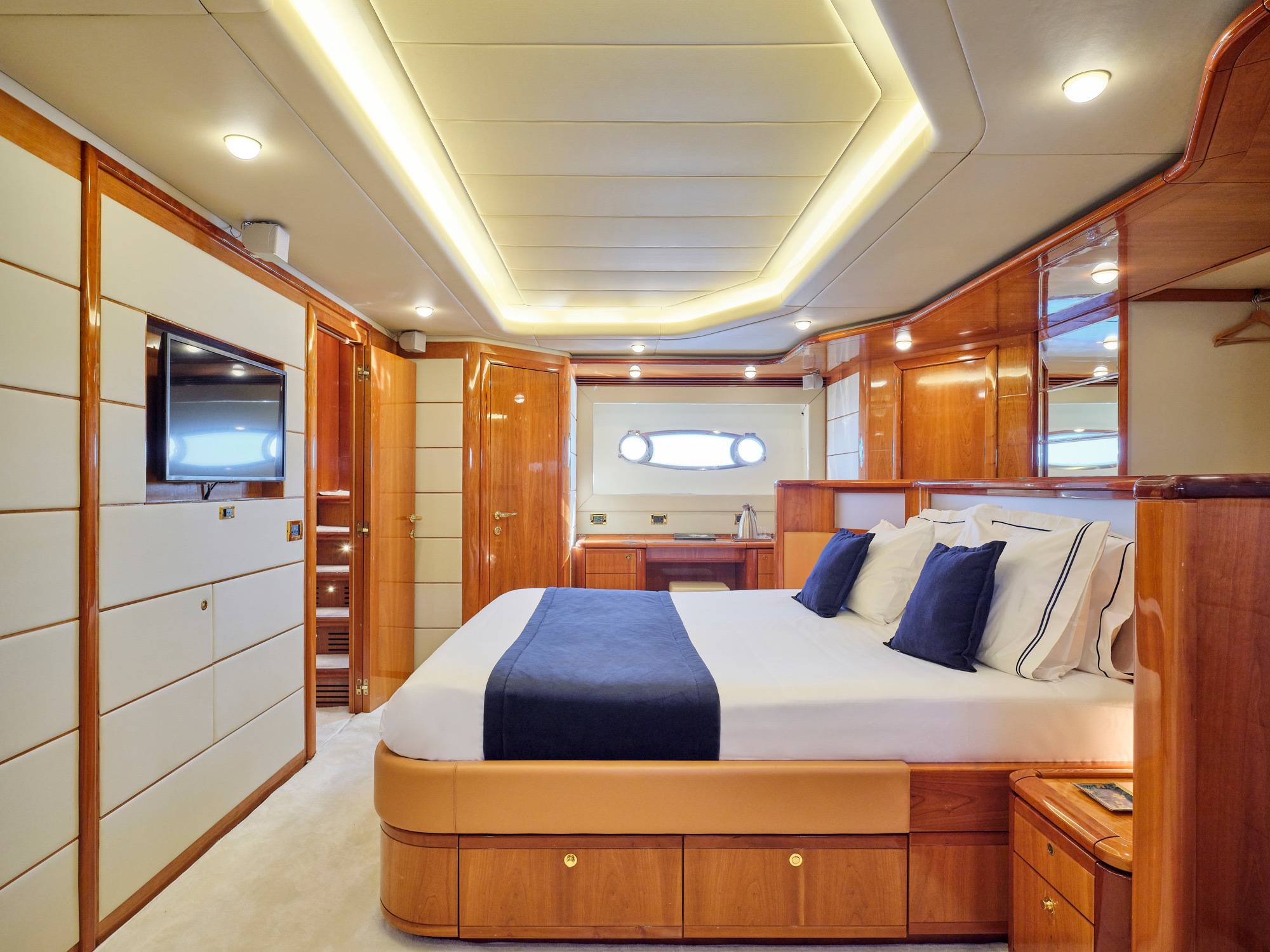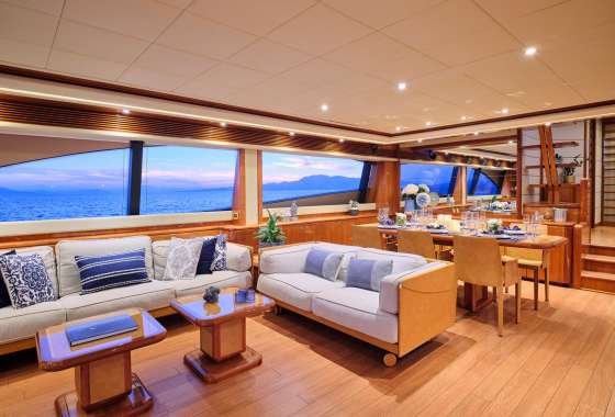 The 88 ft/26m Ferretti 880 motor yacht Estia Yi was built in 2004 by Ferretti and she has been through an extensive full refit in 2021. M/Y Estia Yi offers 4 lavish staterooms that accommodate up to 8+1 guests super comfortably. Her layout includes a master suite, a VIP cabin and 2 twin cabins (one with an extra pullman berth), all with en-suite facilities. Her professional and experienced crew of 5 members take care of Estia Yi’s guests onboard promising a once in a lifetime yachting experience. Among other amenities, the M/Y Estia Yi features a spacious sundeck fully equipped with large sun beds for lounging, an alfresco dining area and a Jacuzzi. In addition, she provides an aft garage which opens and is transformed into a swimming platform, ideal for beach club or romantic dining area. Estia Yi's impressive leisure and entertainment facilities make her the ideal charter yacht for socializing and entertaining with family and friends.