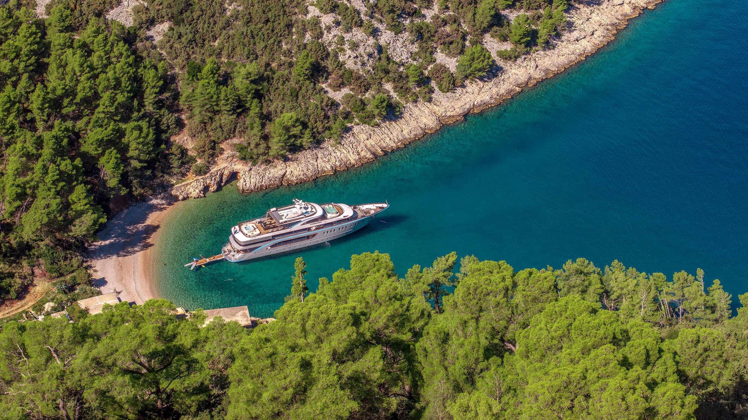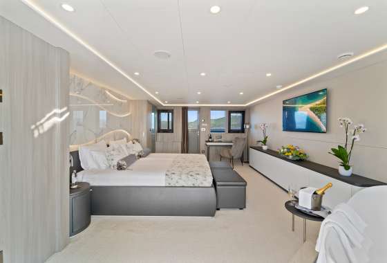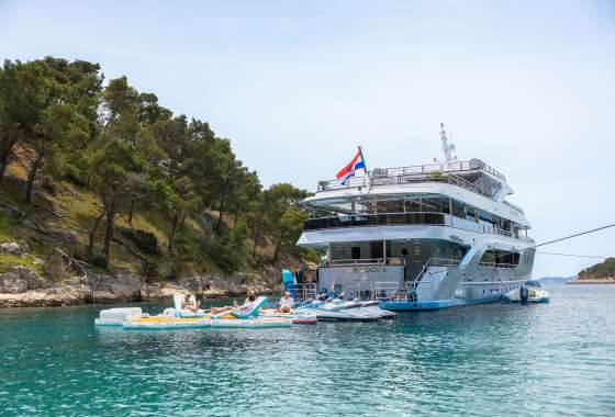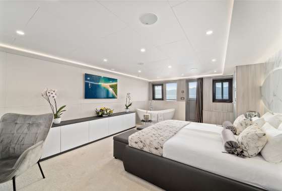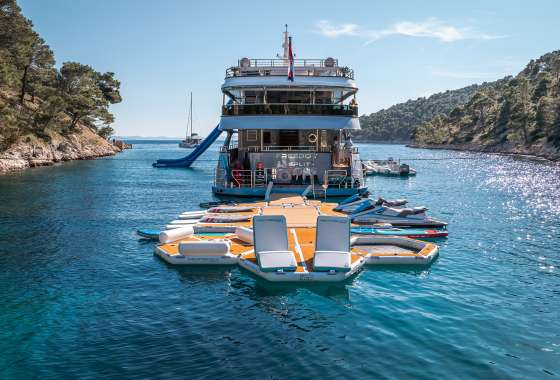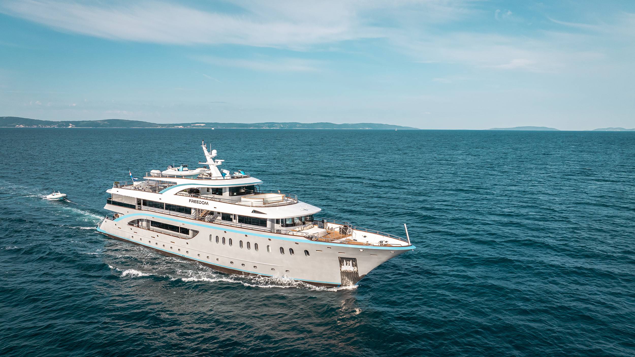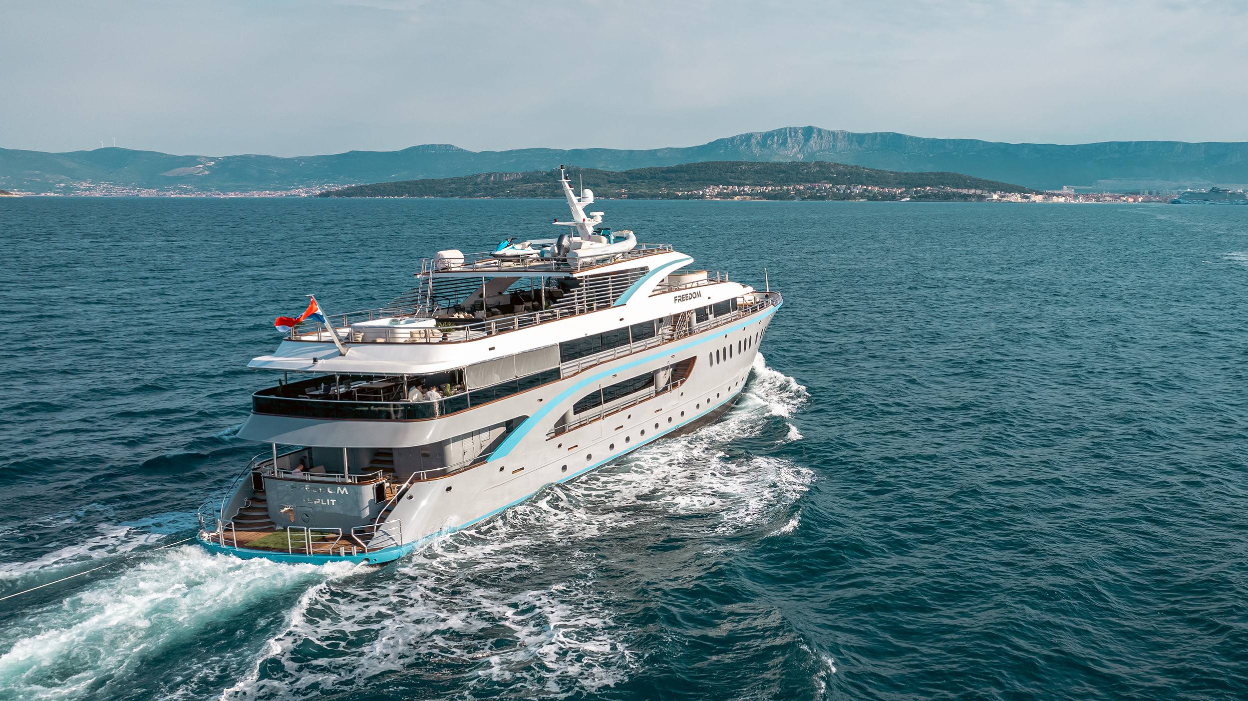 FREEDOM is the frontrunner, setting the standard for yachting in Croatia. Offering delicious culinary delights and amenities such as a swimming pool and a jacuzzi on sundeck, as well as a cinema, gym, sauna, beauty spa/massage room, and a full menu of water toys, she provides the perfect yachting experience for up to 24 guests. FREEDOM'S subtle design comprises 11 regally appointed staterooms 2 huge master suites which are fully fitted with en-suite bathrooms. The vessel is fully air-conditioned and has WiFi throughout.