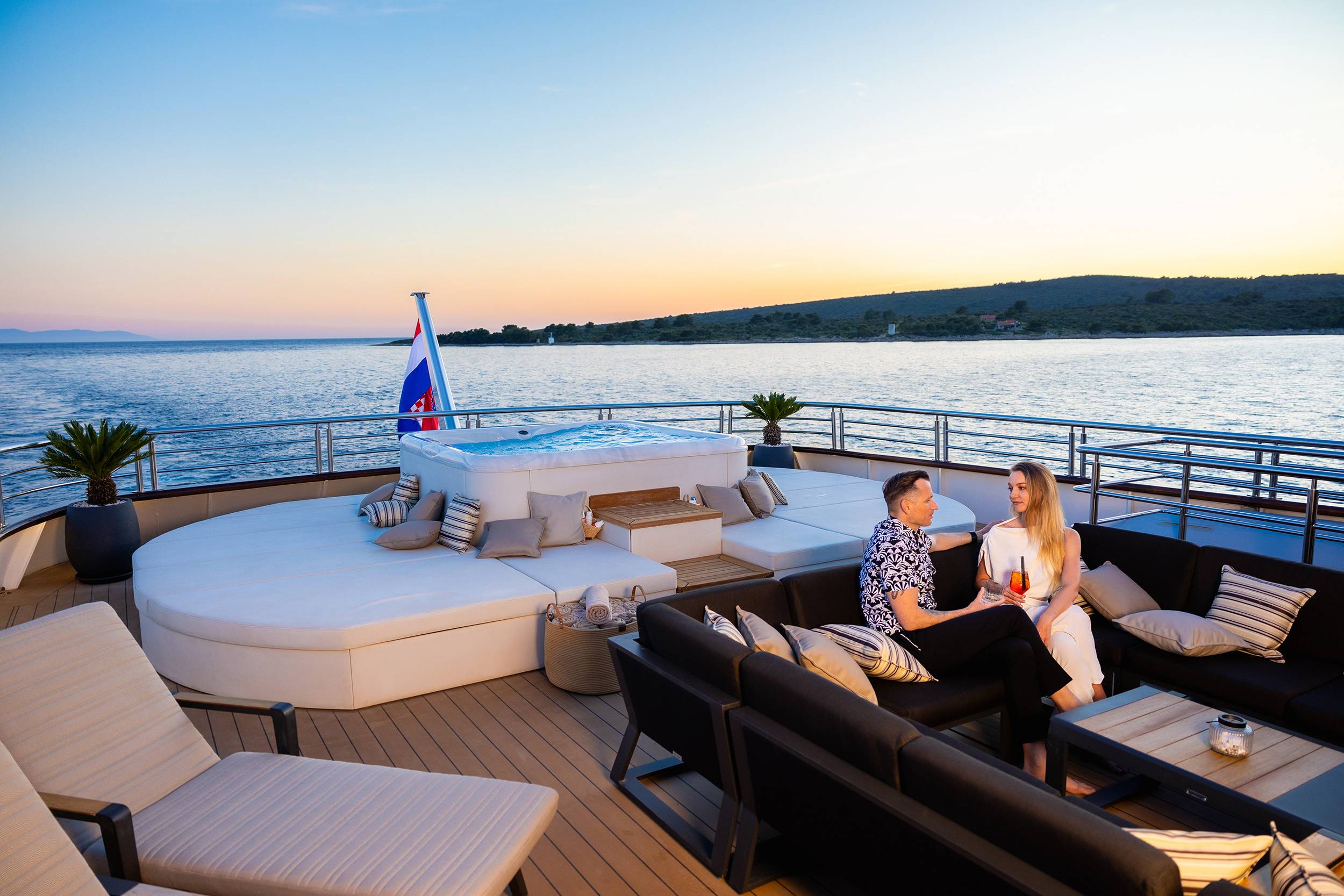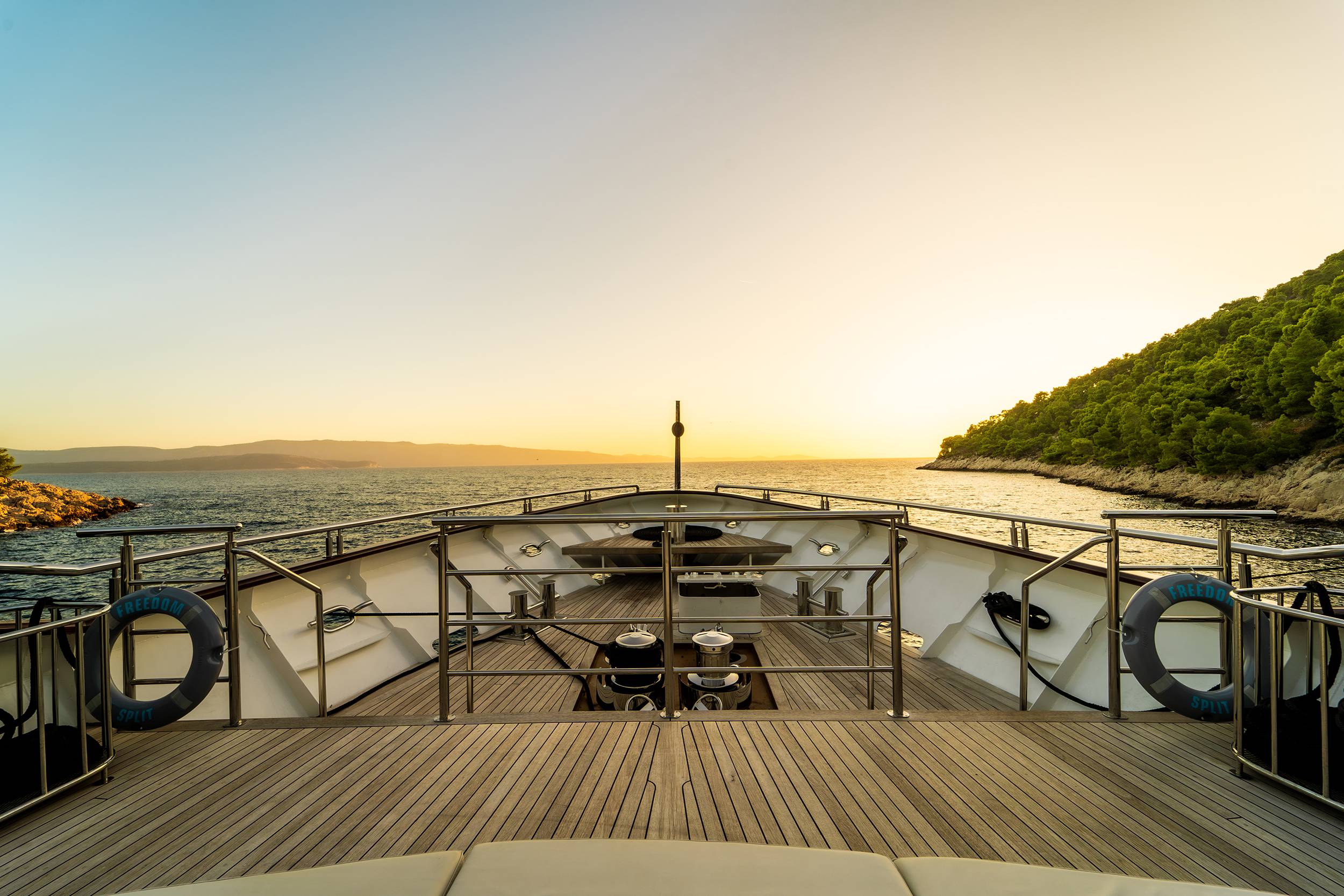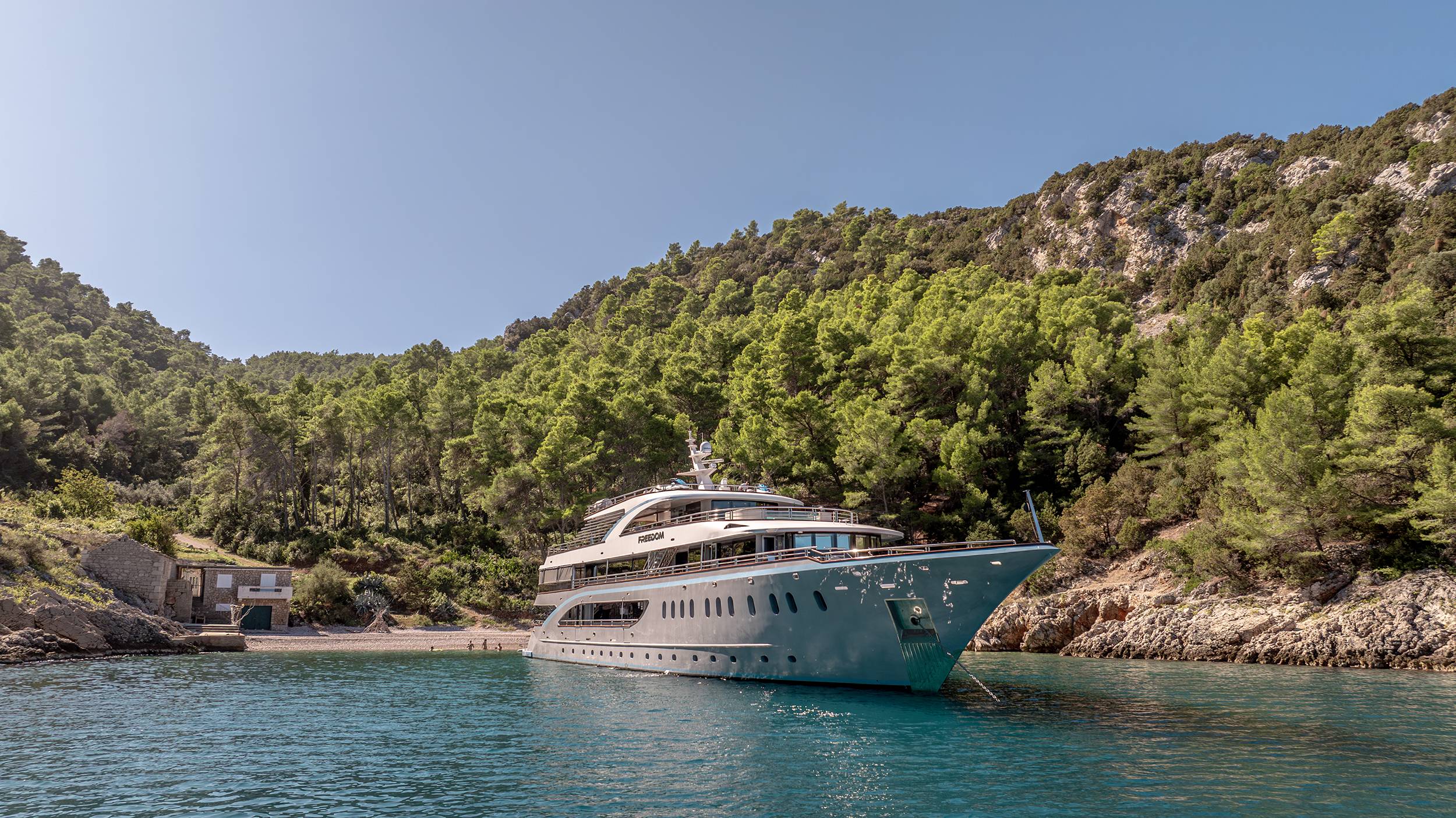 FREEDOM is the frontrunner, setting the standard for yachting in Croatia. Offering delicious culinary delights and amenities such as a swimming pool and a jacuzzi on sundeck, as well as a cinema, gym, sauna, beauty spa/massage room, and a full menu of water toys, she provides the perfect yachting experience for up to 24 guests. FREEDOM'S subtle design comprises 11 regally appointed staterooms 2 huge master suites which are fully fitted with en-suite bathrooms. The vessel is fully air-conditioned and has WiFi throughout.