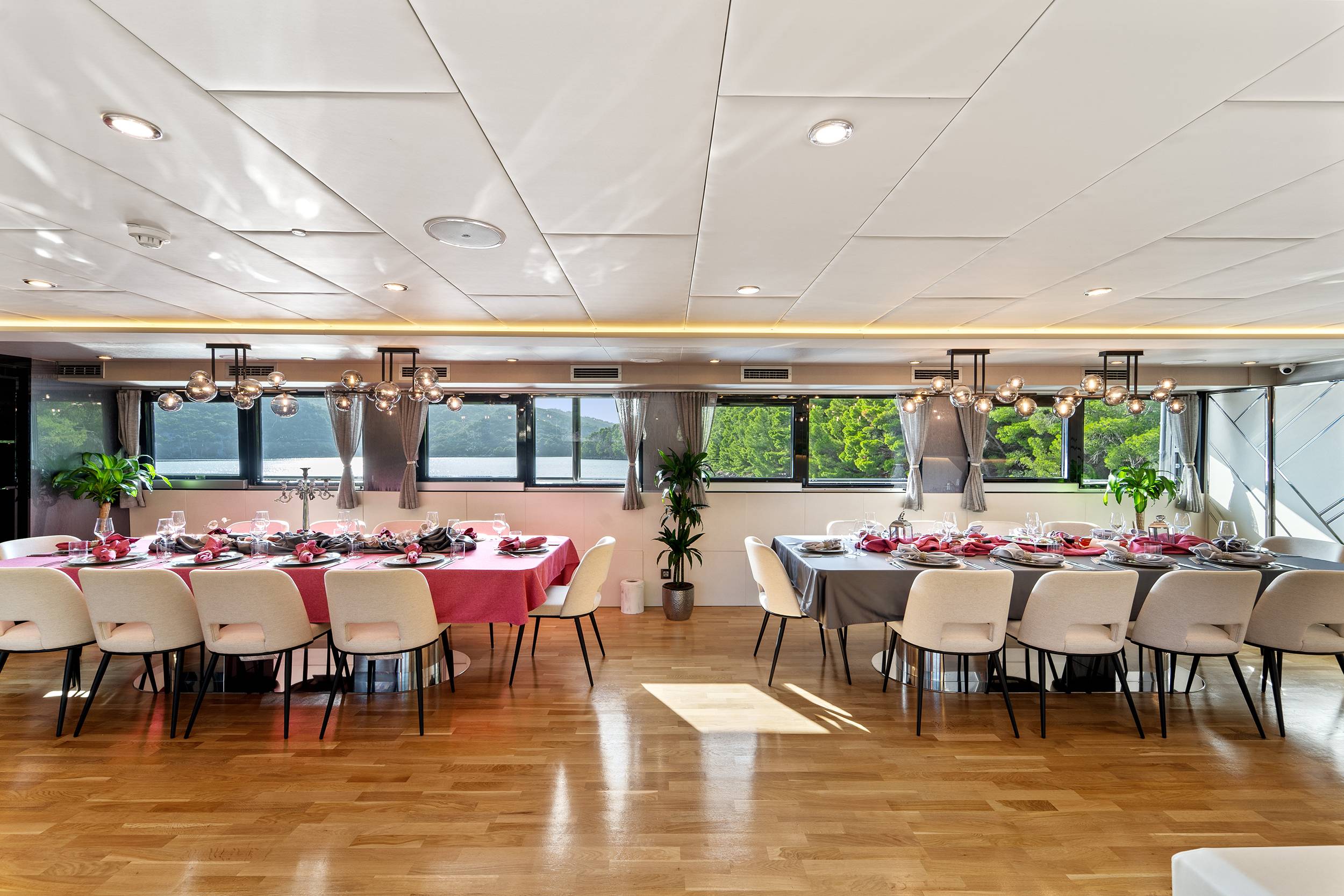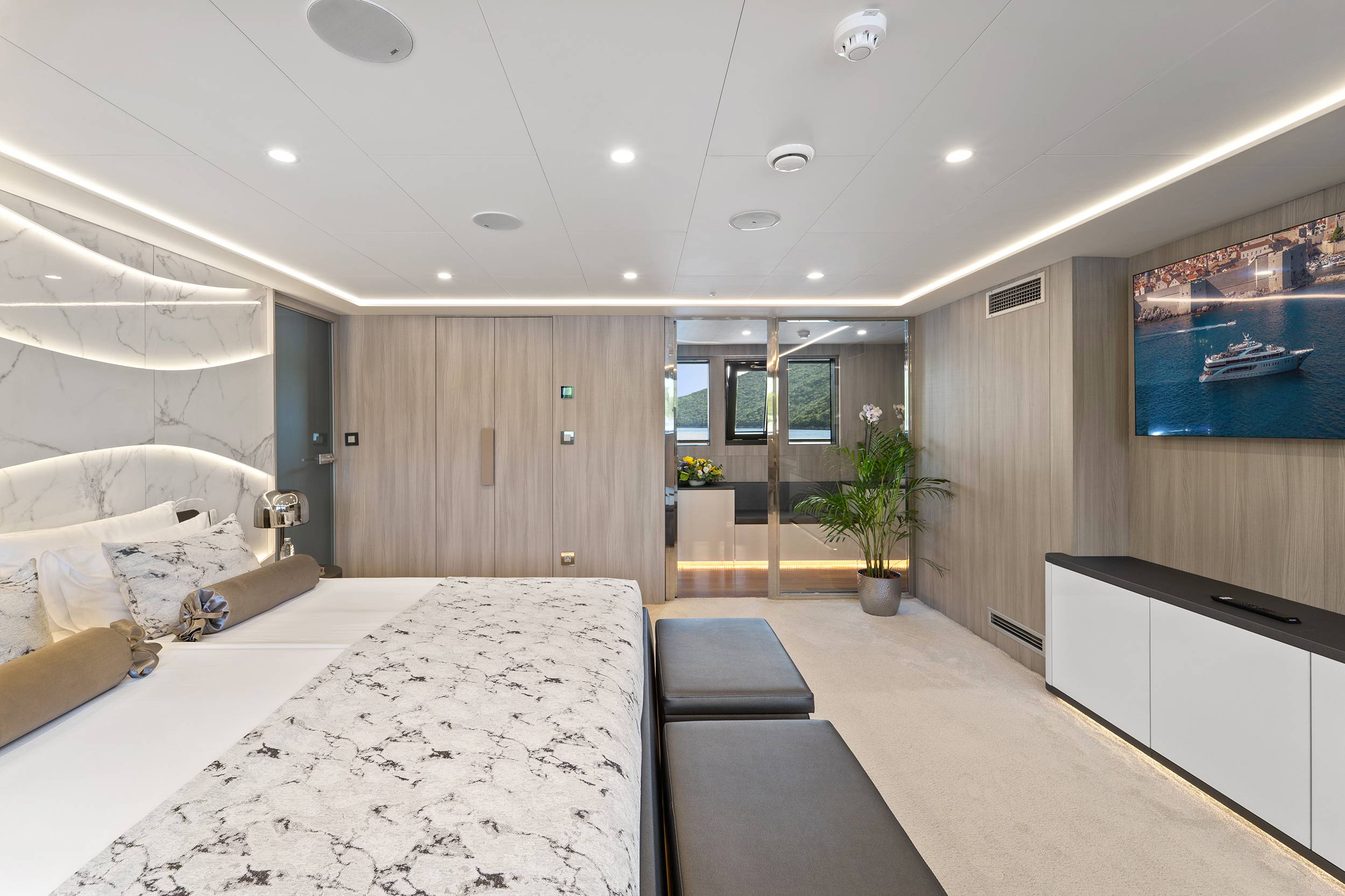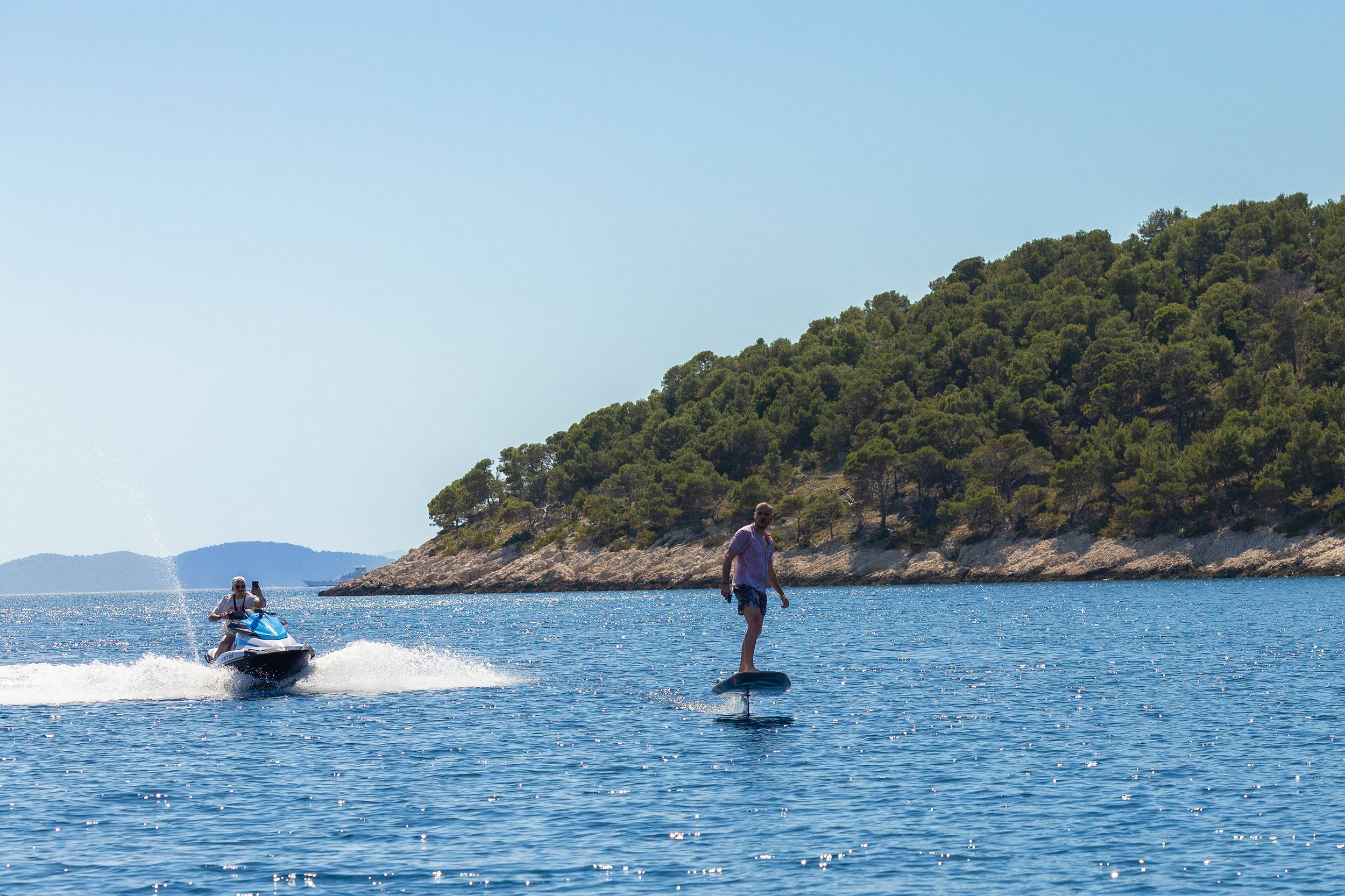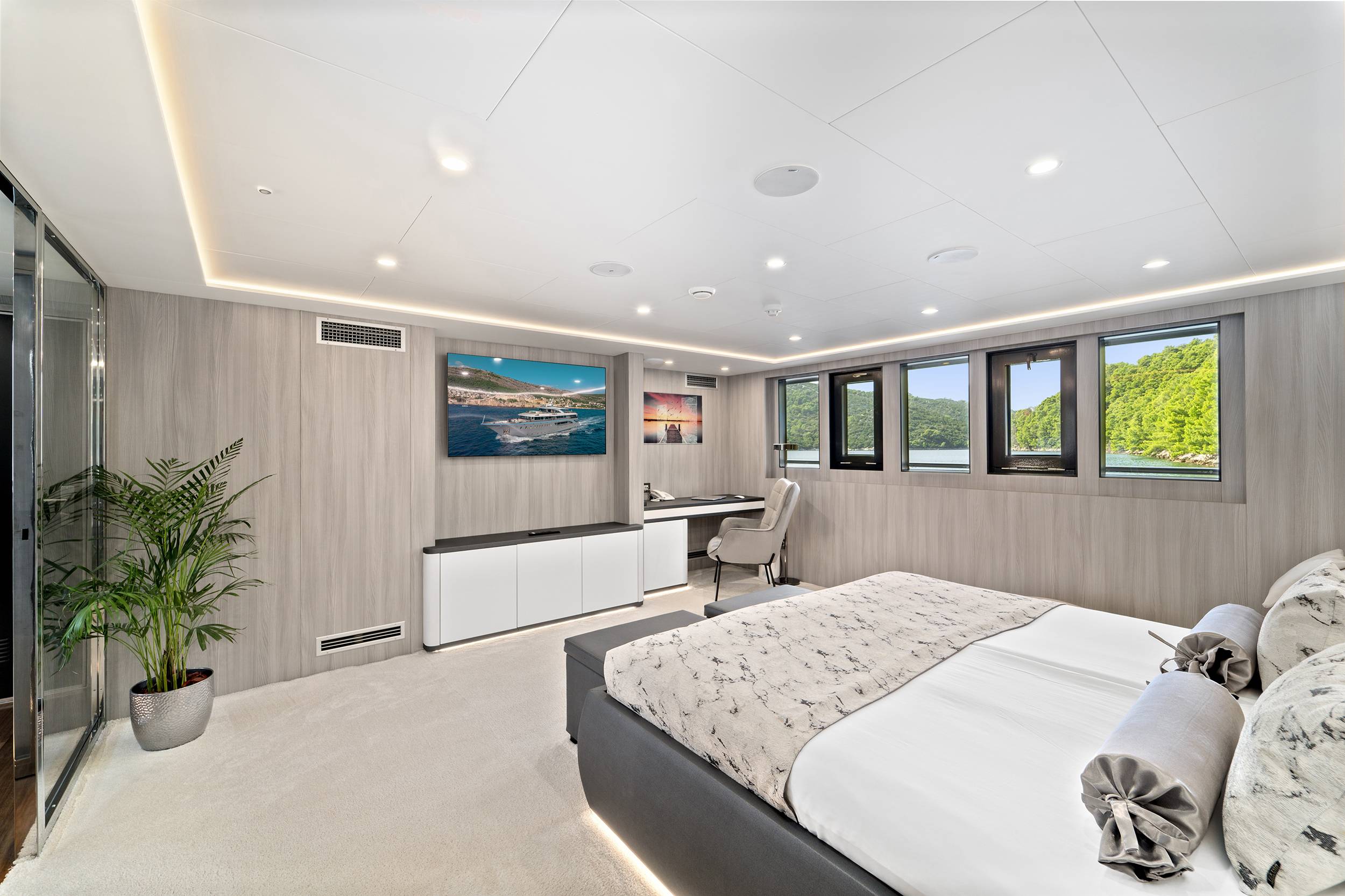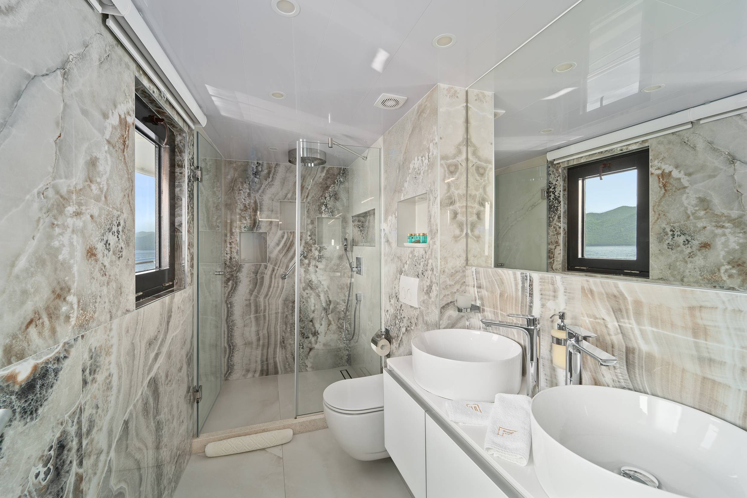 For guests who love water activities, FREEDOM features 2 jet skis, 2 SeaBobs, water skis, a wakeboard, a tube ride, a Ringo ride, 4 paddleboards, 2 electric paddleboards Lamp , 2 E-foils, a canoe, and a waterslide to choose from. FREEDOM also features a cinema and video gaming room, a sauna with a large shower, two open bars, and a spacious indoor dining area.