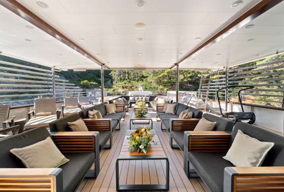 The expansive sundeck features ample lounging areas