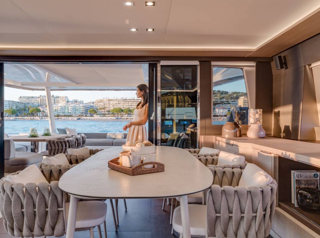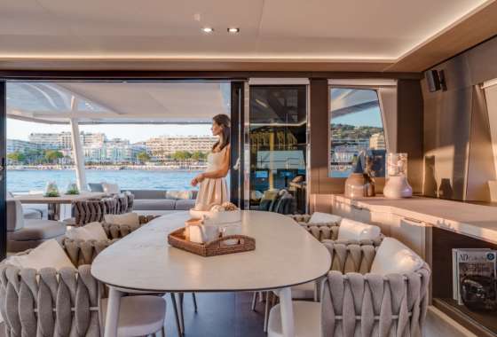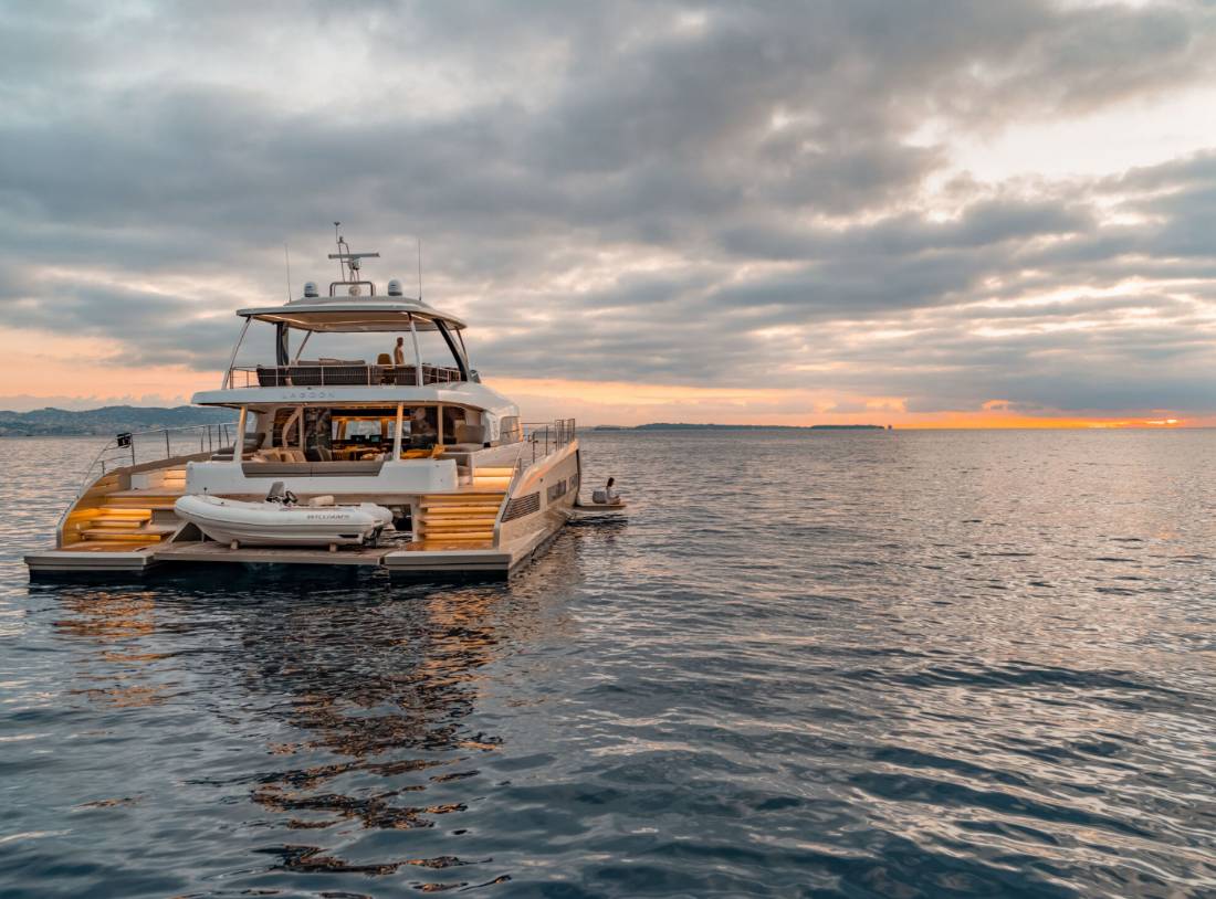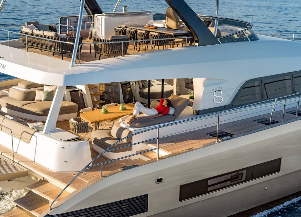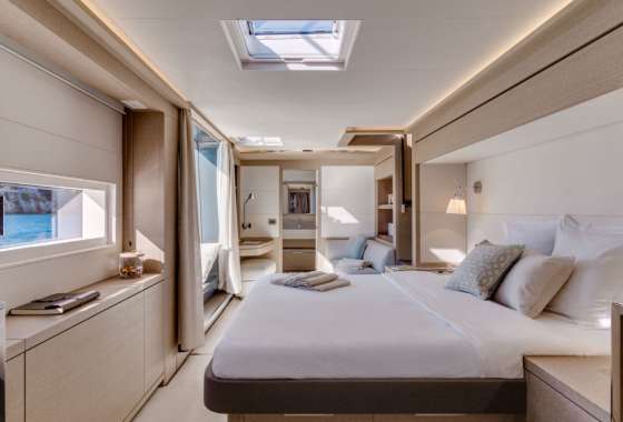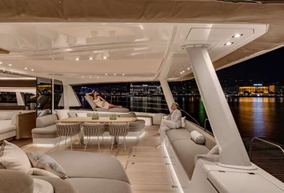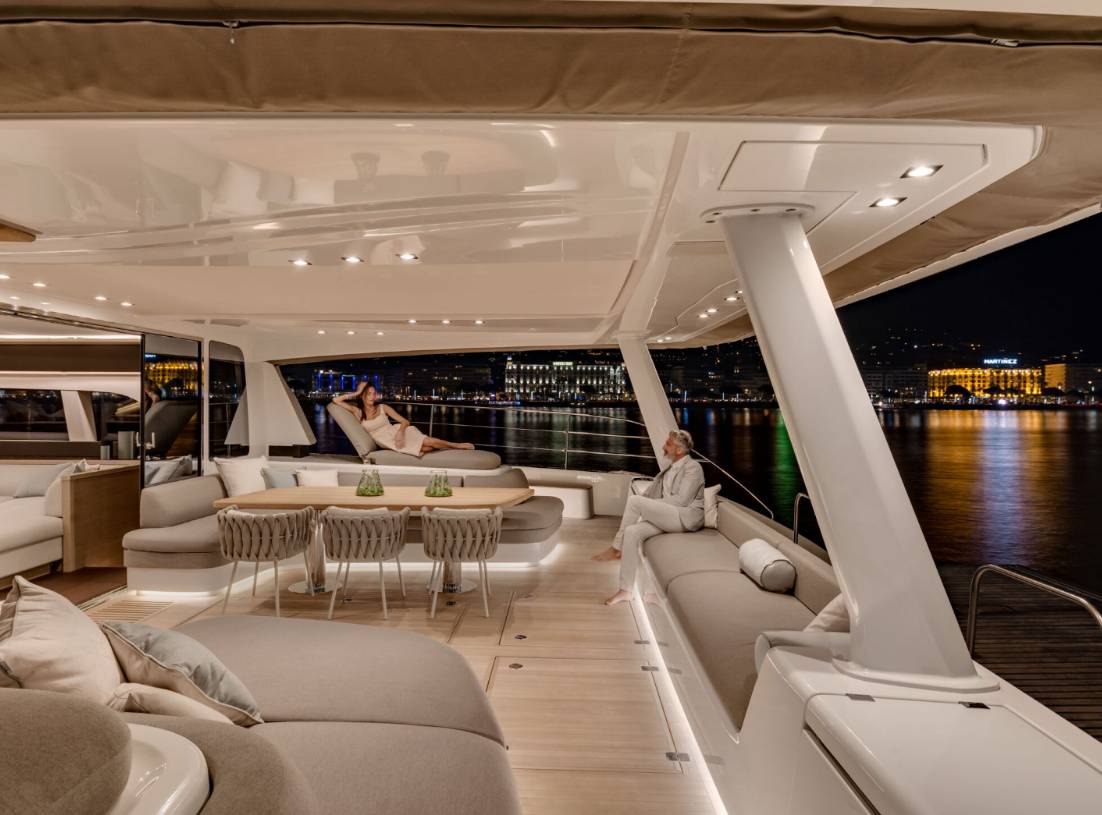 A magnificent 43-meter (2012)tri-deck motor boat that exudes beauty and elegance indelible.This is a highly energetic and attractive yacht to enjoy a memorable charter because it has recently undergone major renovations in all the important areas. Teak Decks, a Jacuzzi Hot Tub, a Full Bar, a BBQ Grill, a Tri Deck Water Slide, and opulent Sunbathing Areas with Fixed and Retractable Sunshades make up the ideal Sun deck environment.There are five deluxe staterooms that can accommodate 11 guests, each with an Italian marbleprivate bathroom with a tub, Molton Brown toiletries, hotel-quality bedding, a smart TV and audio system, cedar closets, and Terry cloth bathrobes. The full beam master stateroom is located on the main deck and has a king-size bed and a Jacuzzi double bathtub. Freshly installed indoor and outdoor carpeting, new bed and bath linens, outside furniture, a μsmart TV/AV system, zero speed stabilizers, low fuel use, quiet generators, and ice-cold airconditioning!