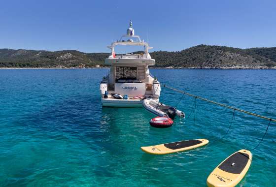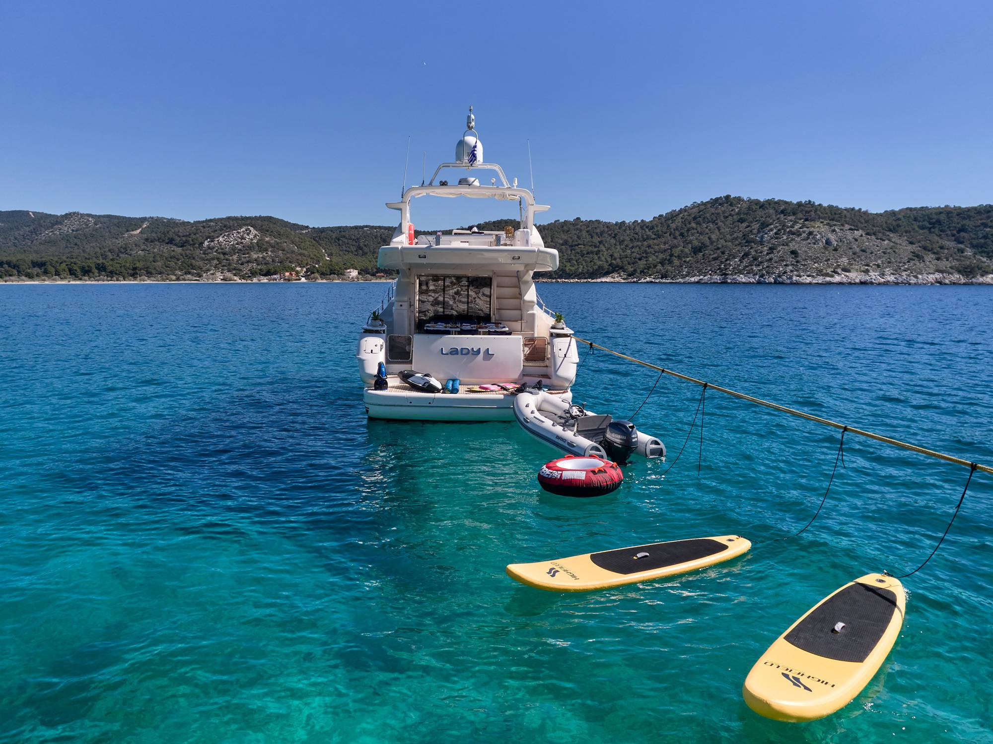 The 64ft/19.5m Altamar 64 motor yacht Lady L was built in 2006 and she has been through an extensive refit program in 2021-2022. M/Y Lady L offers stylish cruising for up to 8 guests with comfortable overnight accommodation in 4 staterooms. Her interior layout includes two double cabins, one twin cabin and one twin with bunk beds, all with private ensuite facilities. She is managed by a qualified crew of 3 willing to satisfy guests needs and wants. The exterior living areas offer a sunbathing space on the foredeck and a seating area on the fly bridge offered for an alfresco dining surrounded by marvelous scenery. From the fine modern lines of the exterior to the spacious interior in combination with her performance, Lady L is an ideal yacht for daily cruises or long weekend charters. Oriented for families or friends who would desire to explore sandy beaches, small bays and coves less reachable from larger yachts.
