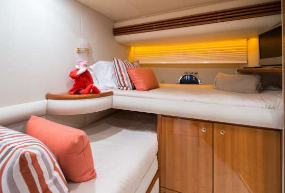 Based in the beautiful island of Zakynthos, Manu is the perfect yacht for cruising in the Ionian Islands! She presents a cozy leather saloon with a comfortable seating area on the Main deck and four cabins on the lower; one Master, one VIP andtwo Twin cabins (one of which with upper and lower beds). Captain Nikos and Fofo are many years onboard as a team and will work miracles to guarantee an unforgettable stayonboard.