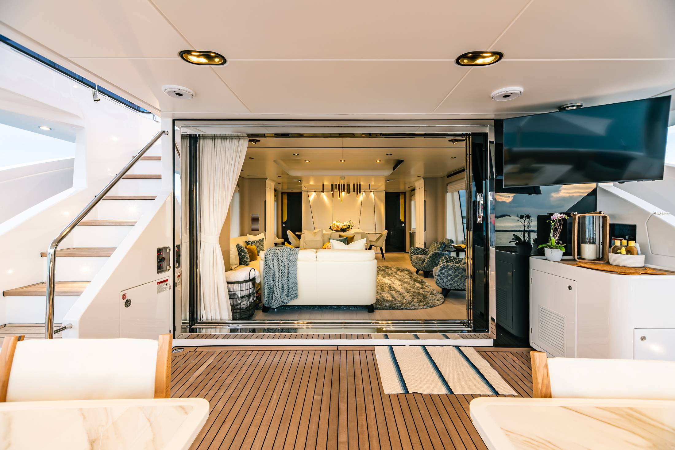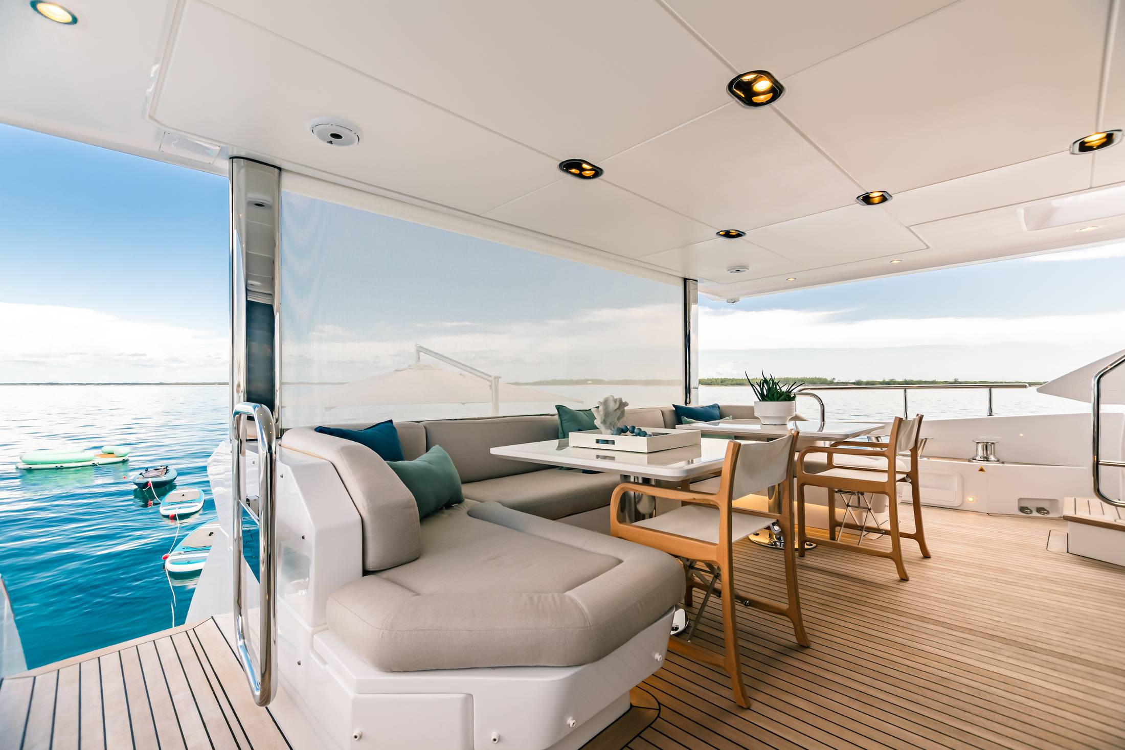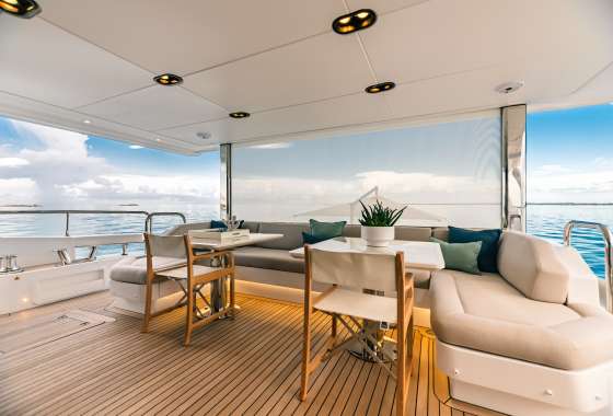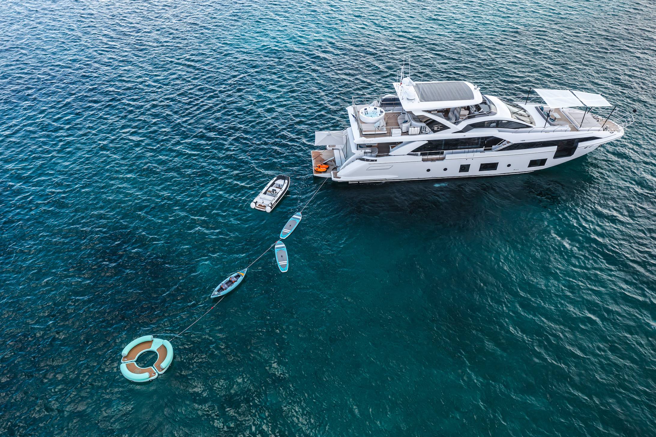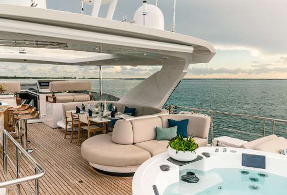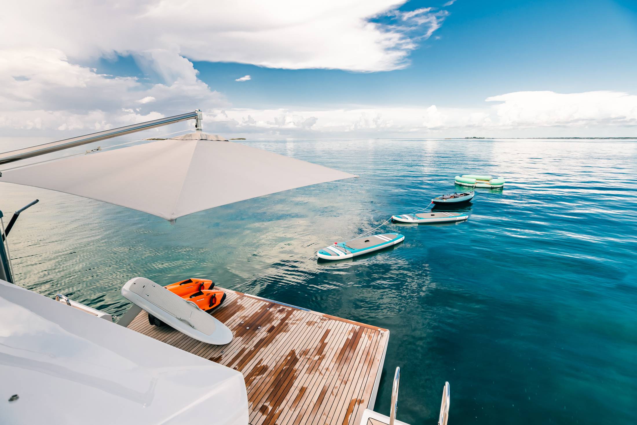 Keeping comfortable and entertained on Marea La Nautica is easy thanks to the available amenities, particularly a deck jacuzzi, perfect to enjoy the scenery with your favorite drink in hand. She also has stabilizers underway and at anchor. Onboard Marea La Nautica has a range of toys and accessories to keep you and your guests entertained on the water throughout your stay aboard. Based in the turquoise waters of the Caribbean Marea La Nautica ensures a memorable experience!