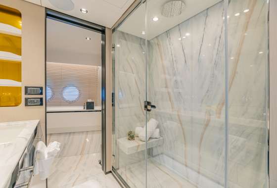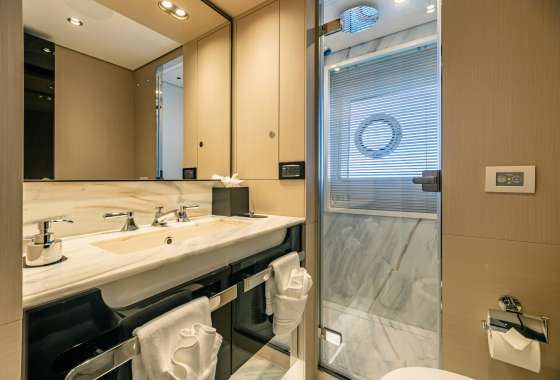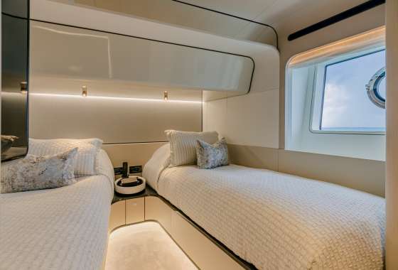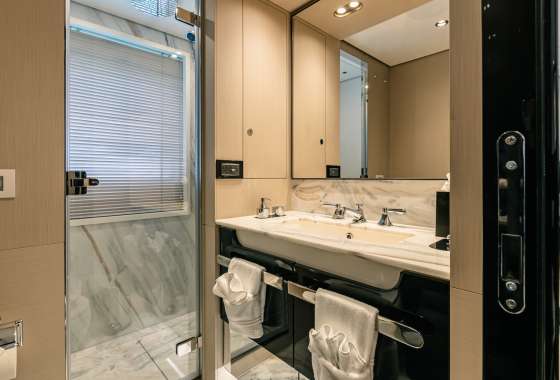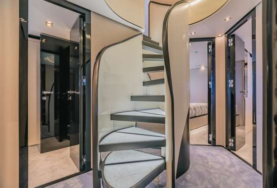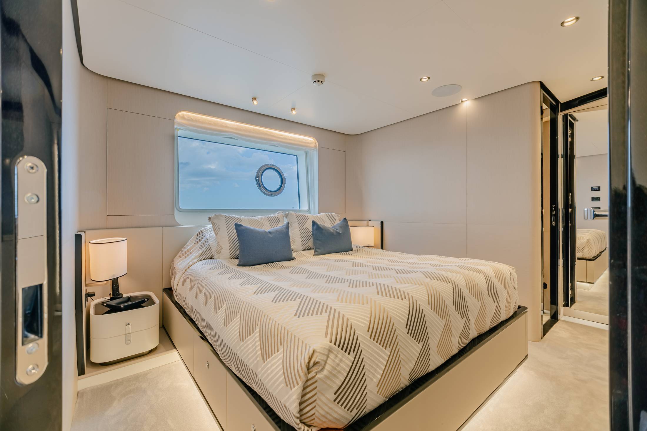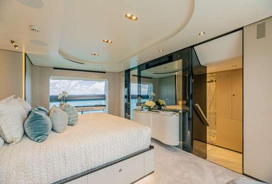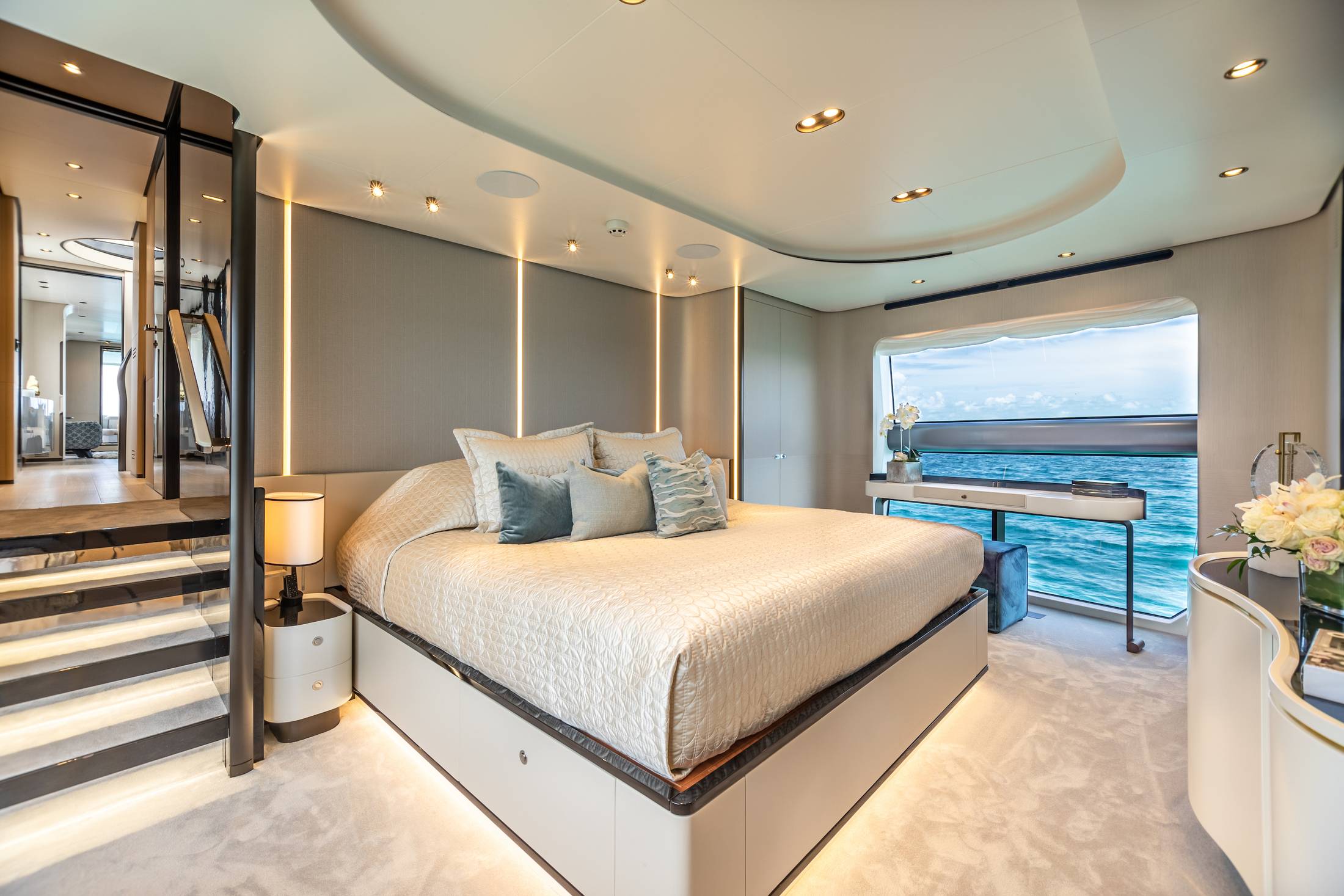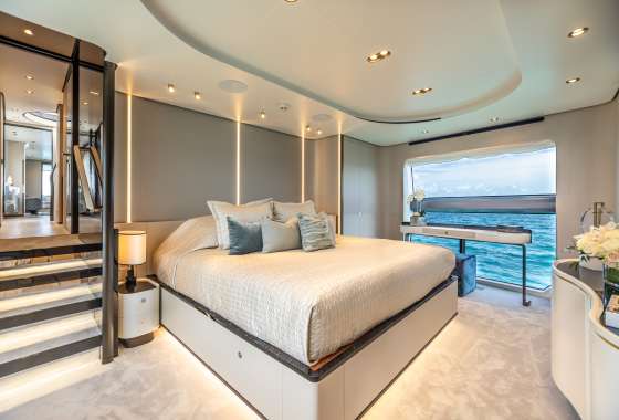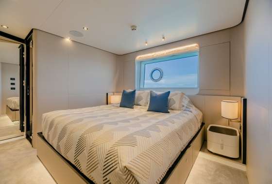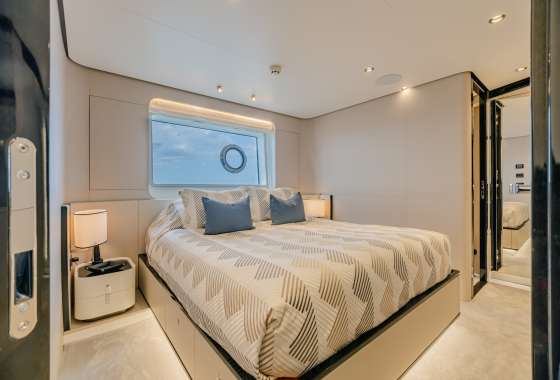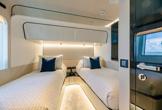 A brand-new superyacht having only launched in 2022, offers guest accommodation for up to 10 guests in 5 suites comprising a master suite located on the main deck, two VIP cabins and two cabins one of them turn into a double.
