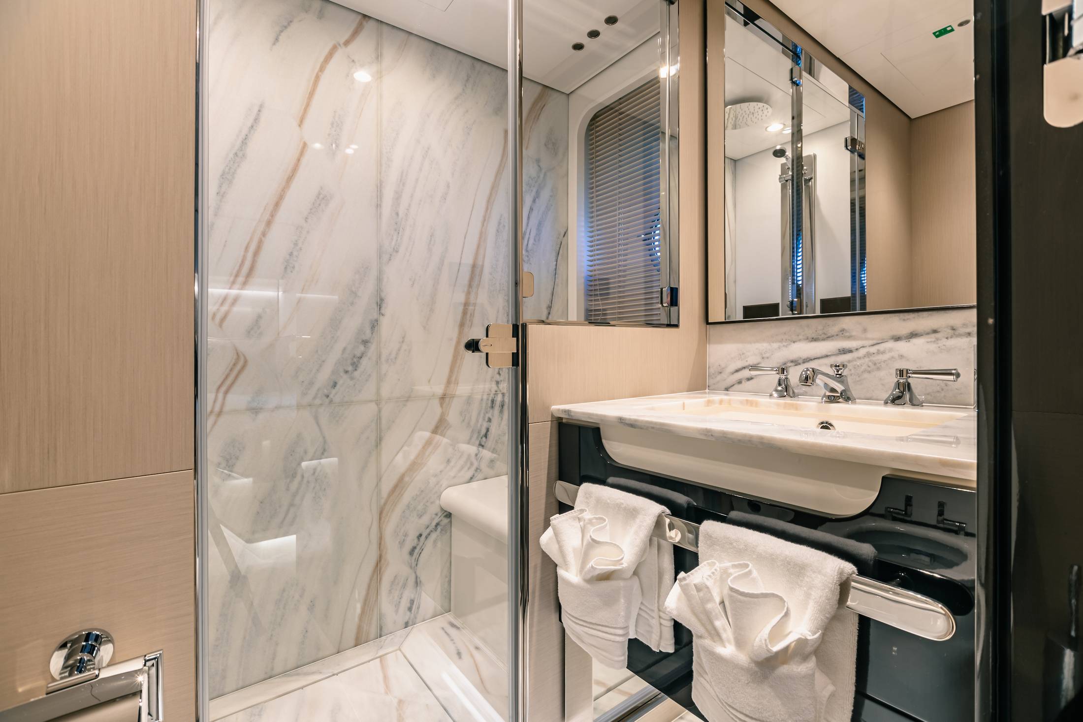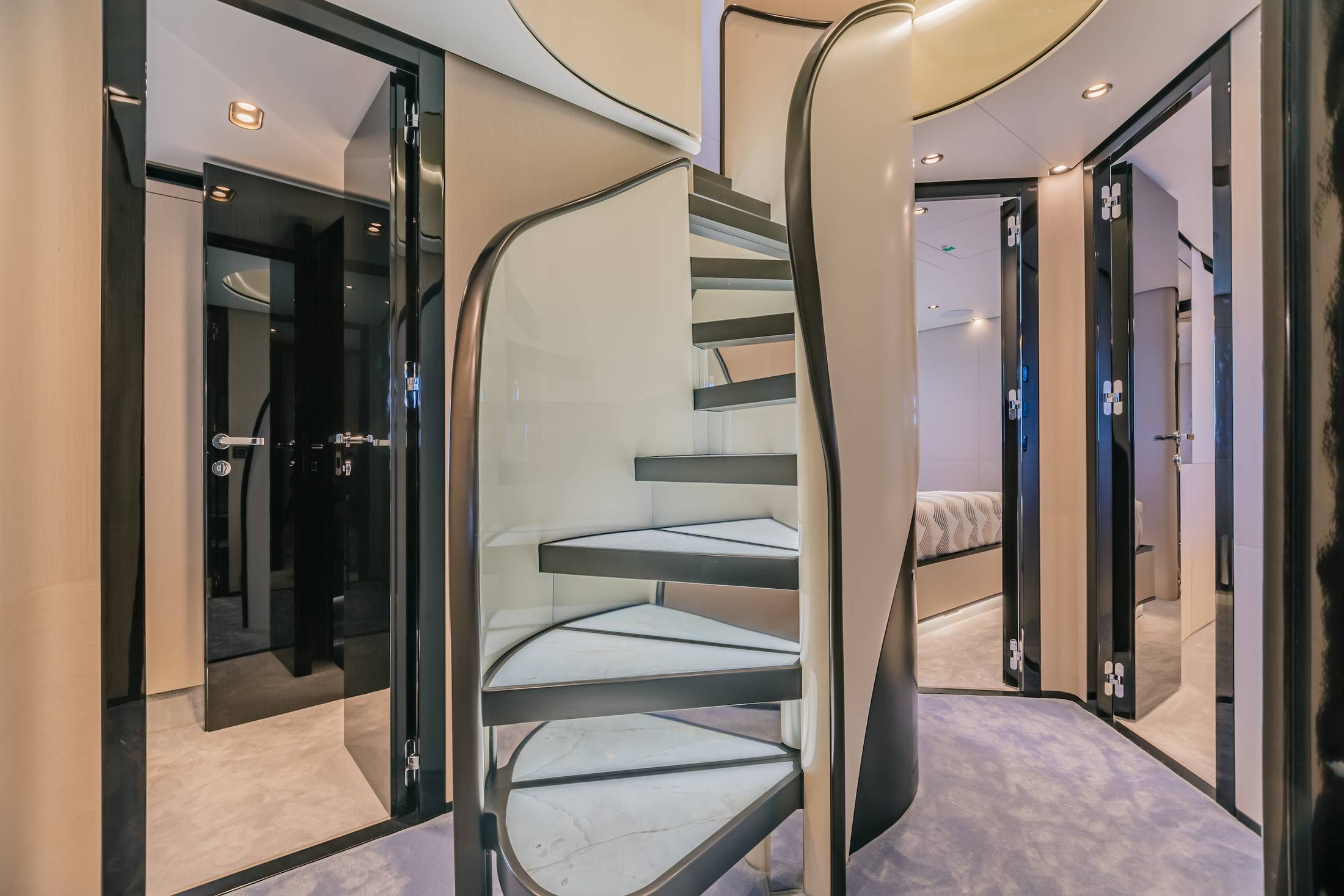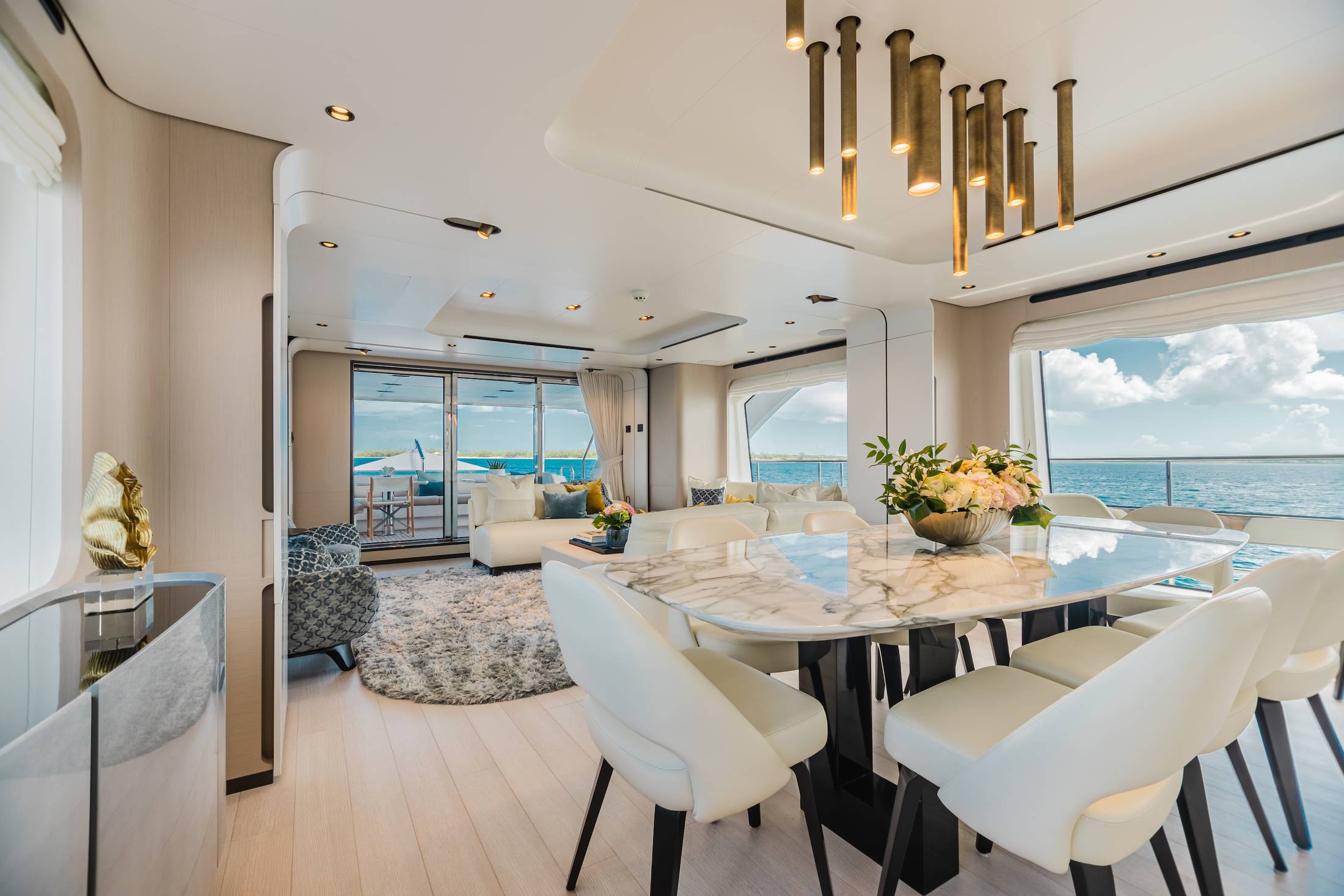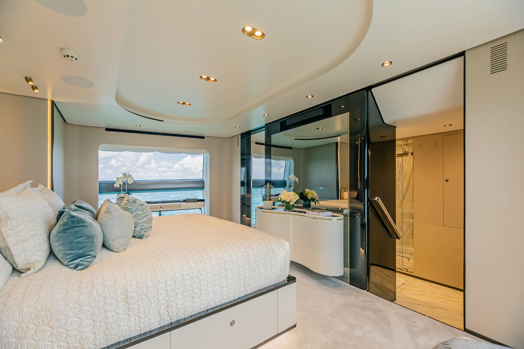 A brand-new superyacht having only launched in 2022, offers guest accommodation for up to 10 guests in 5 suites comprising a master suite located on the main deck, two VIP cabins and two cabins one of them turn into a double.