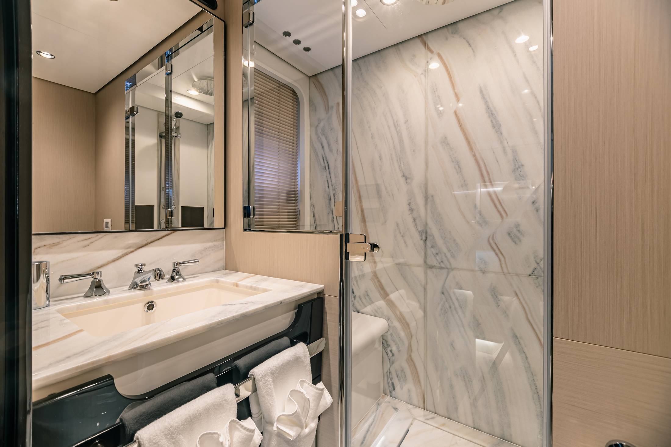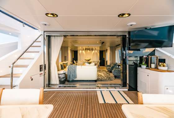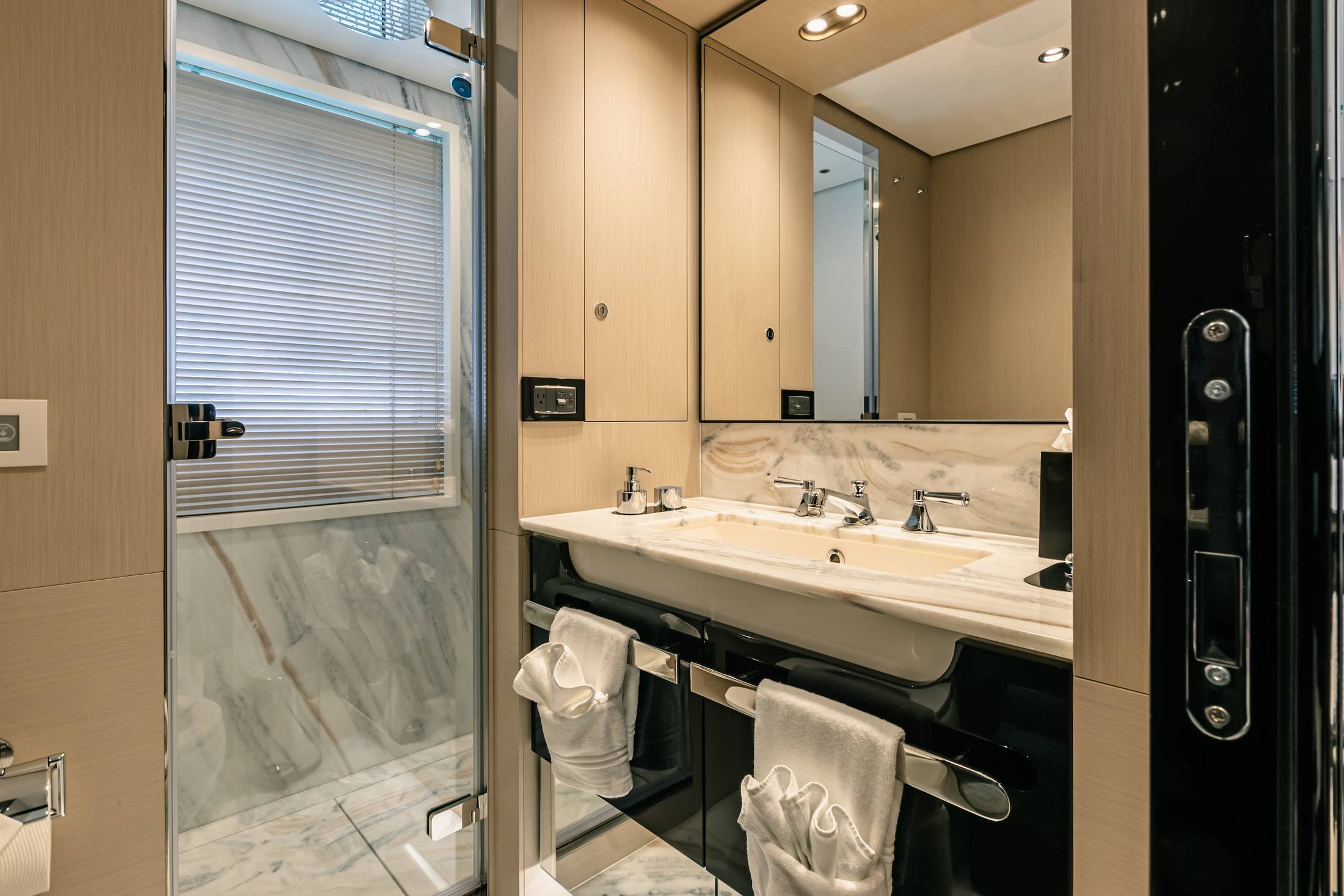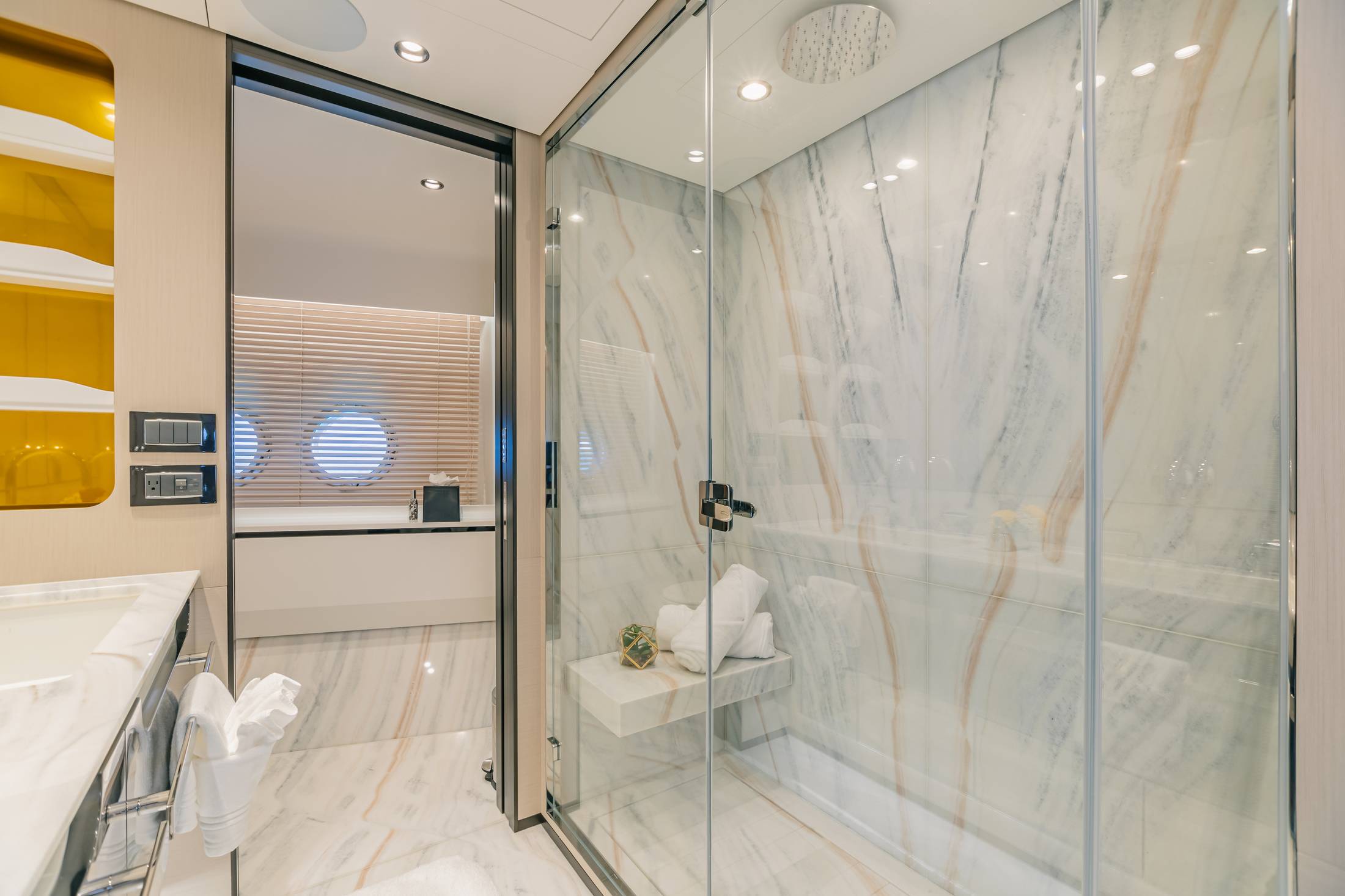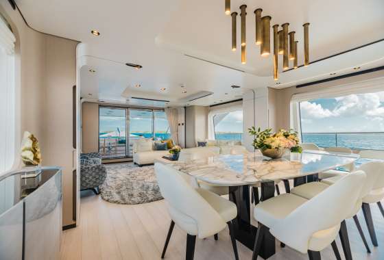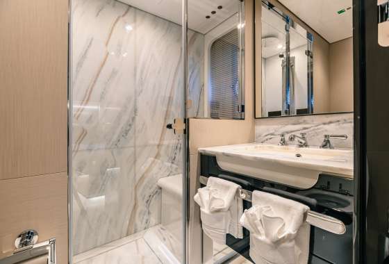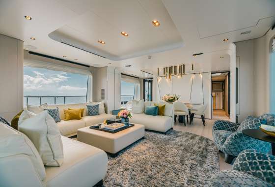 A brand-new superyacht having only launched in 2022, offers guest accommodation for up to 10 guests in 5 suites comprising a master suite located on the main deck, two VIP cabins and two cabins one of them turn into a double.