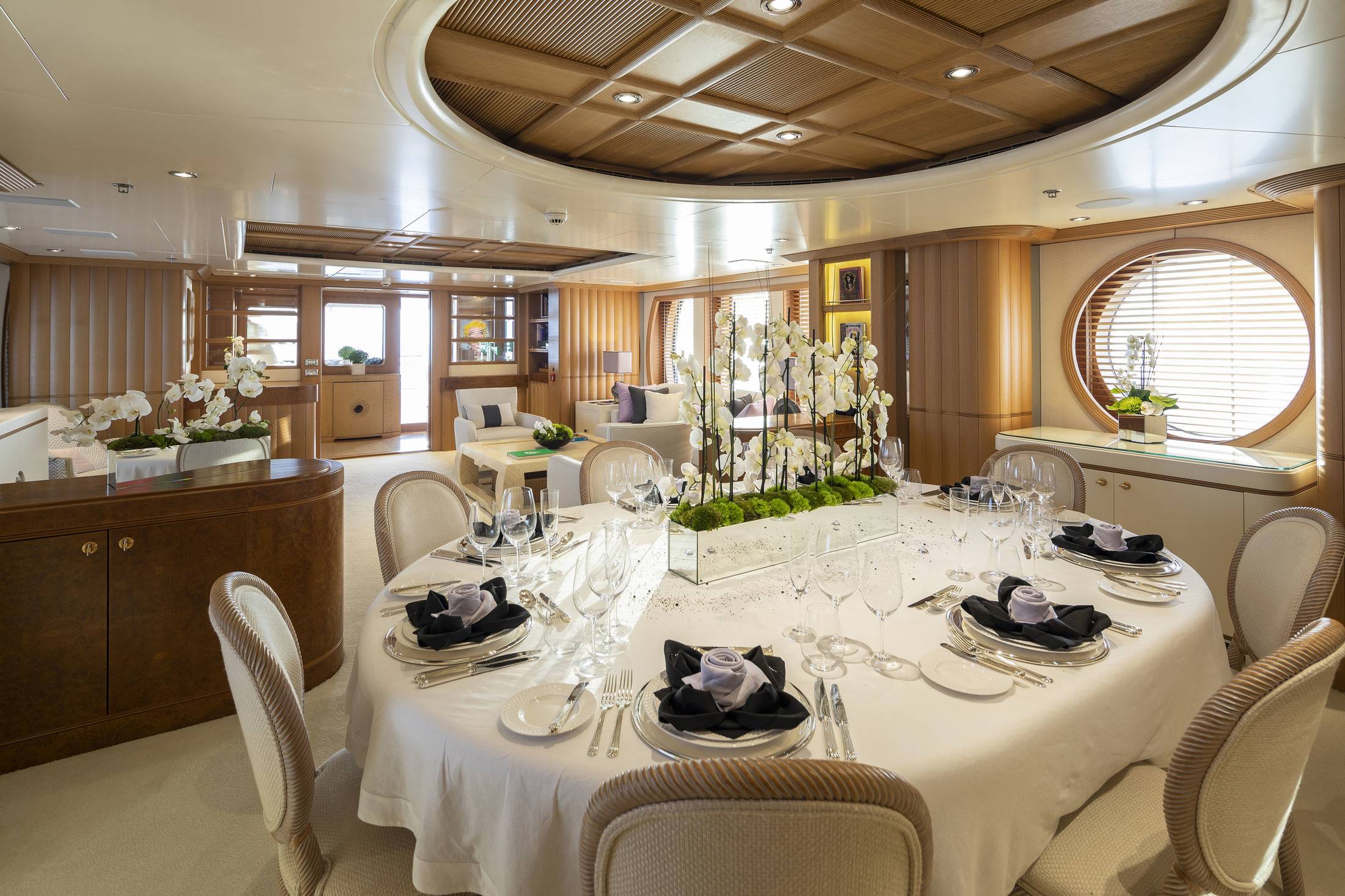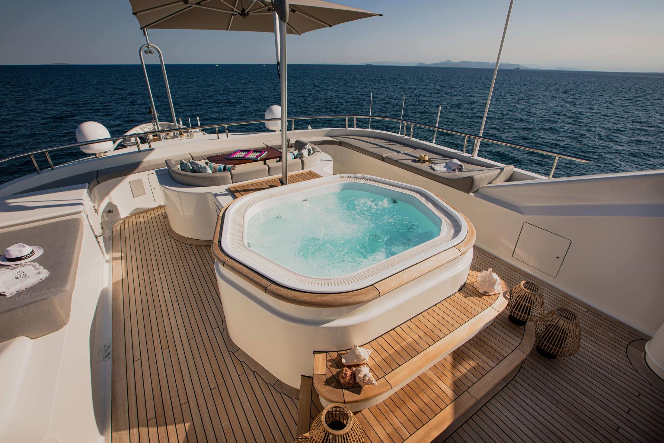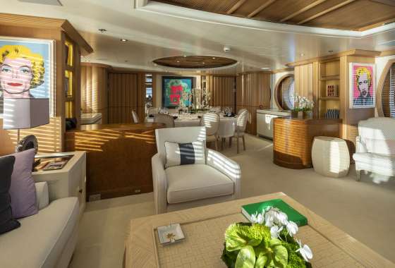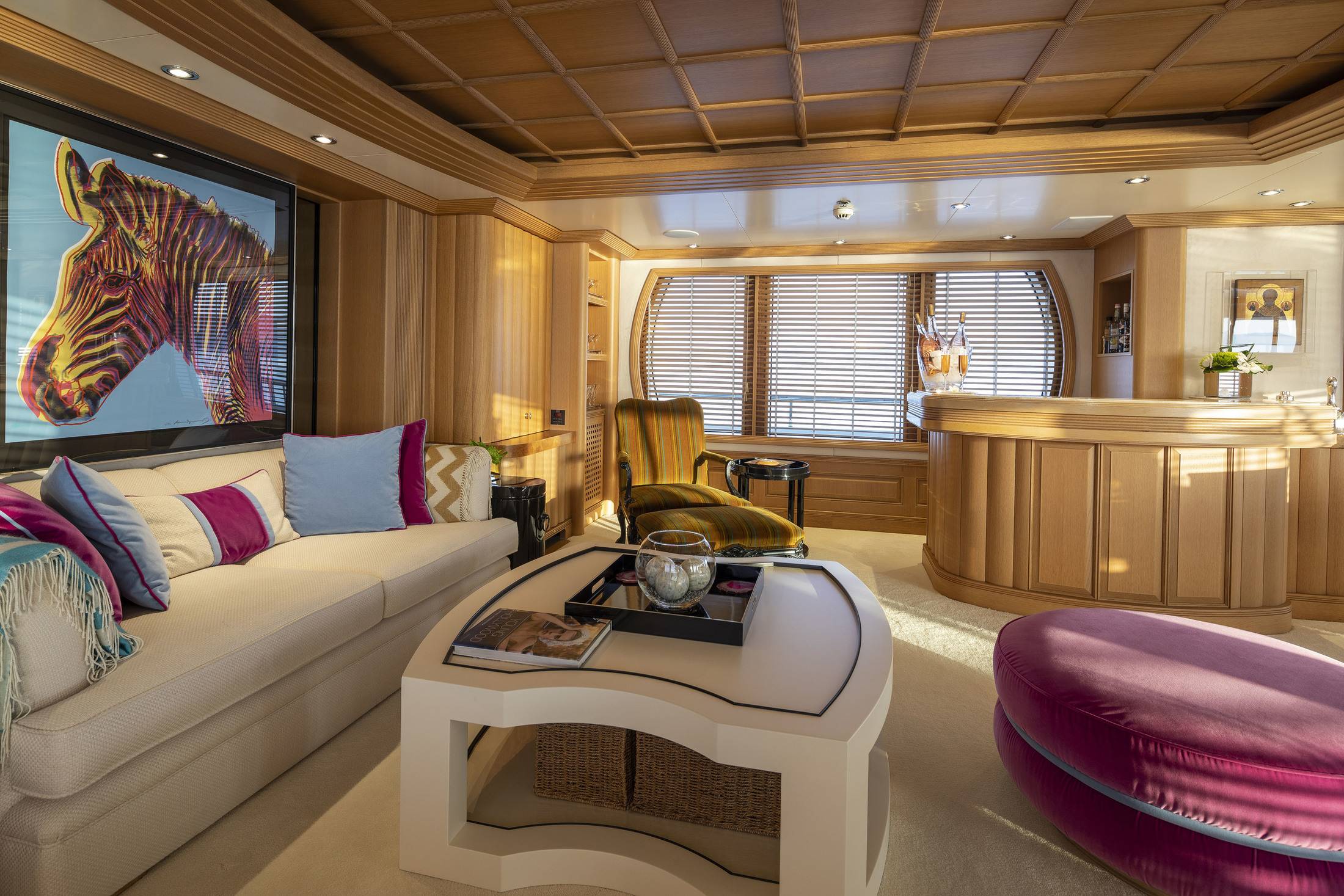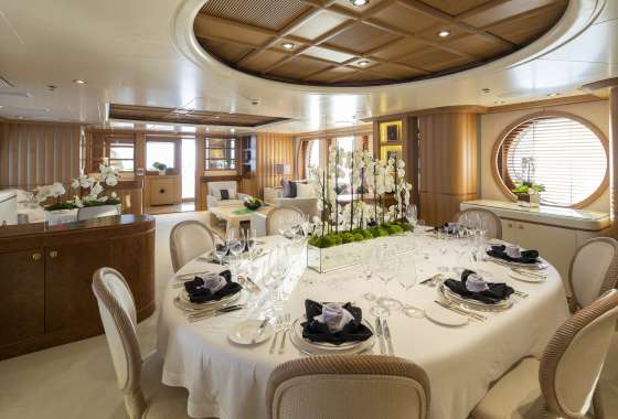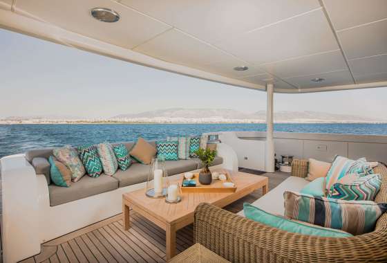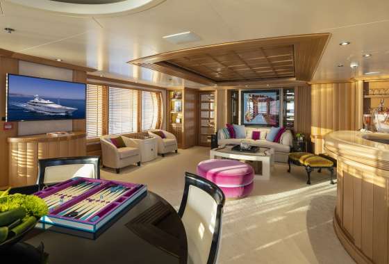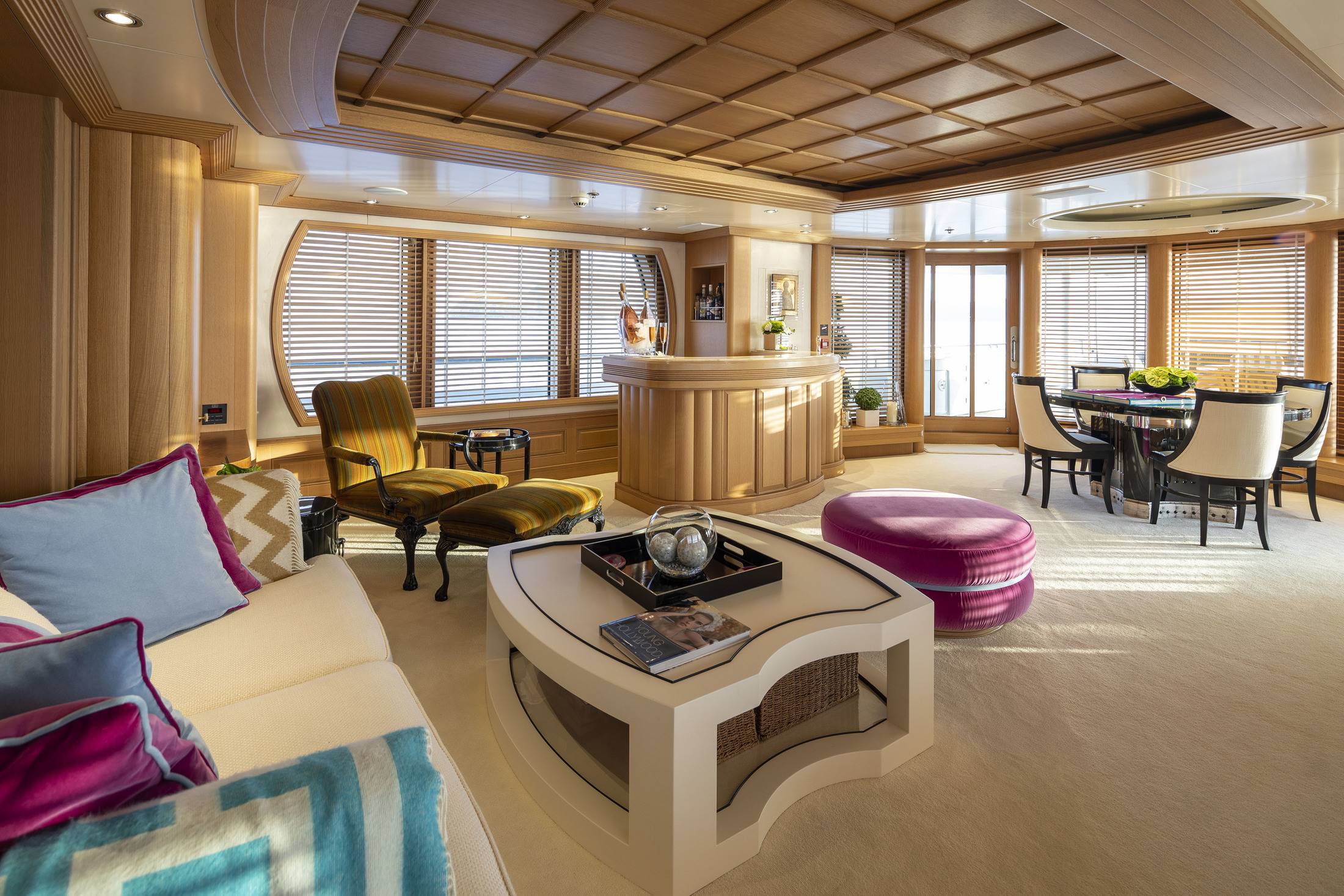 The yacht was designed by Terence Disdale, who is responsible for her stunning exterior and interior. Her sleek and beautiful lines, gorgeous furnishings as well as her impressive leisure and entertainment facilities, make her the ideal charter yacht for socializing and entertaining with family and friends. Her exceptional Captain Manolis, leads the highly experienced and professional crew of 12. Marla' sleeps up to 12 guests in 6 rooms, including a master suite, 2 double cabins and 2 twin cabins and 1 pullman bed, ensuring a relaxed luxury yachting experience. Made of steel and aluminum, she can achieve a top speed of 15.4 knots and a cruising speed of 13 knots. Please note that she has zero speed stabilizers. Previous refits on 2012 and 2014. Main engines were rebuilt to 0 hours and surveyed by Lloyd’s; generators replaced in 2010 and surveyed by Lloyd’s. Yacht has completed all class surveys. Intermediate ISM and ISPS carried out by flag in 2010. Galley fully equipped with commercial professional equipment. Her hull was repainted and her decks were refitted where necessary in the winter of 2009.