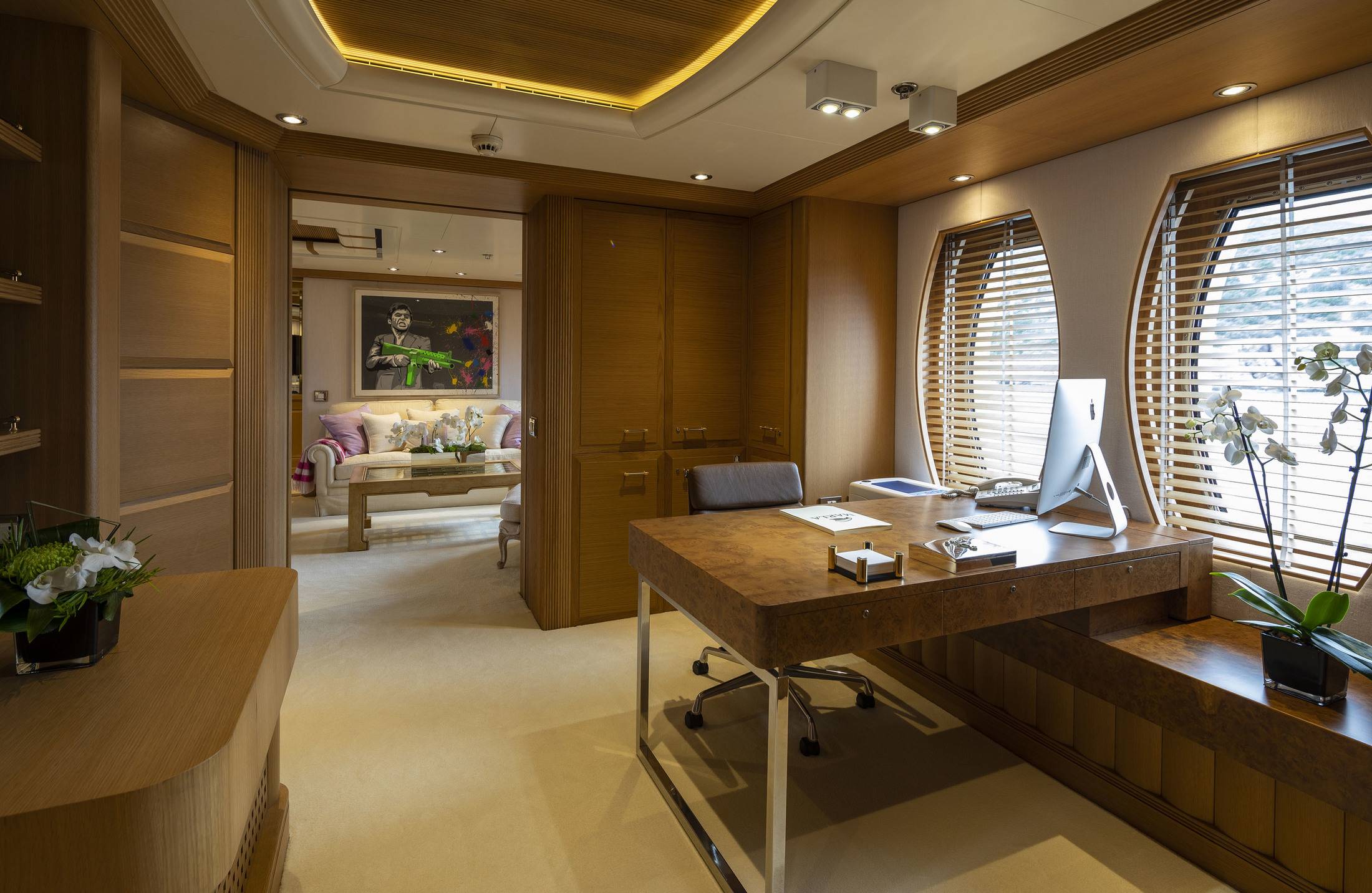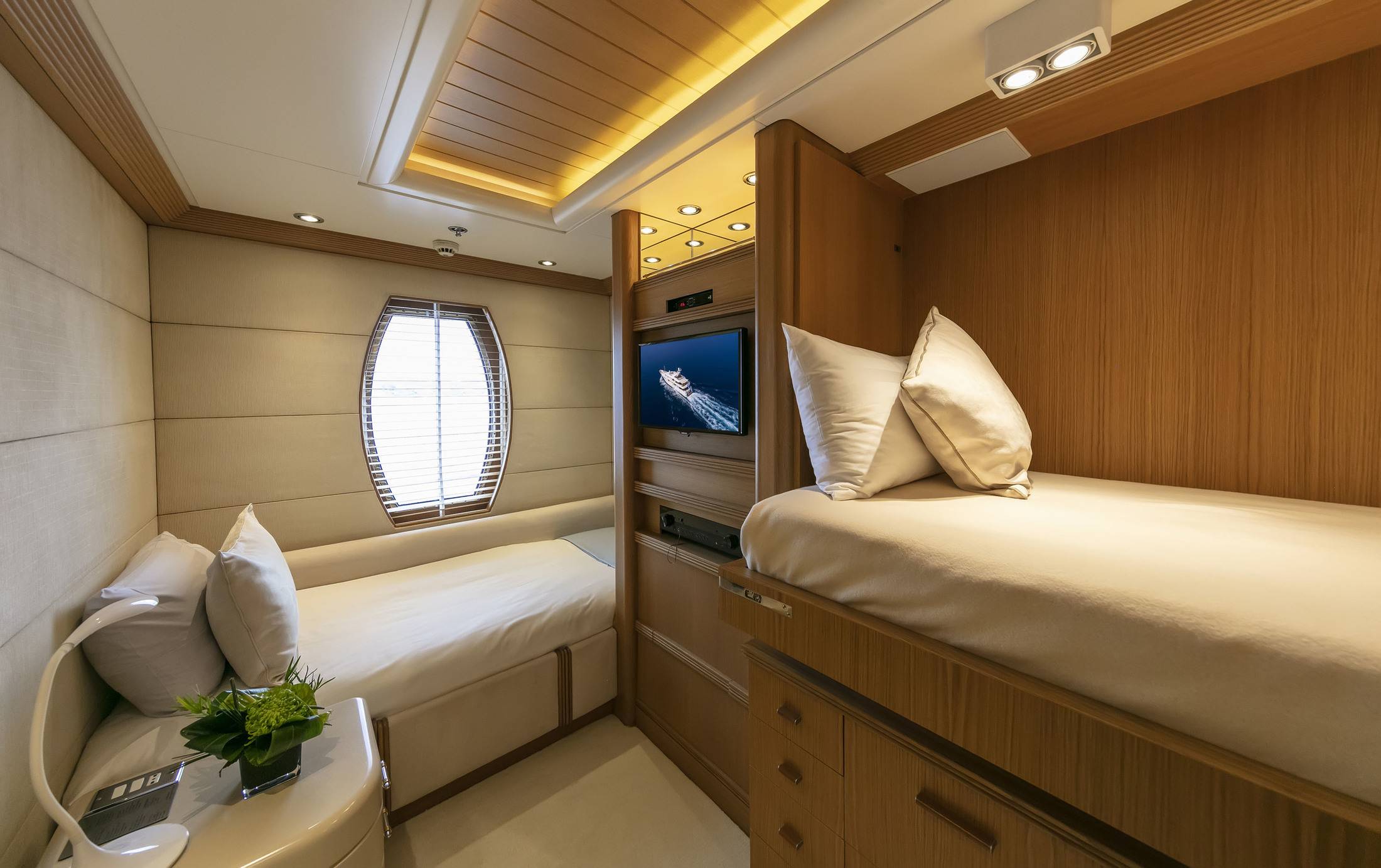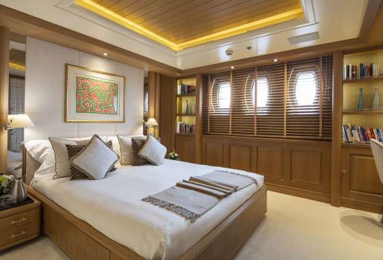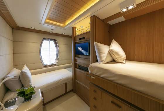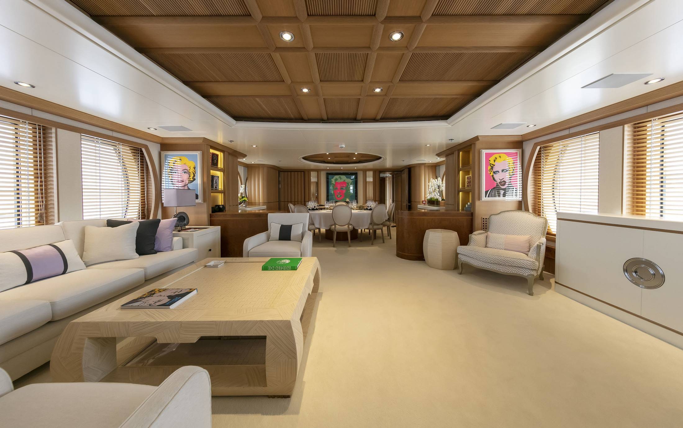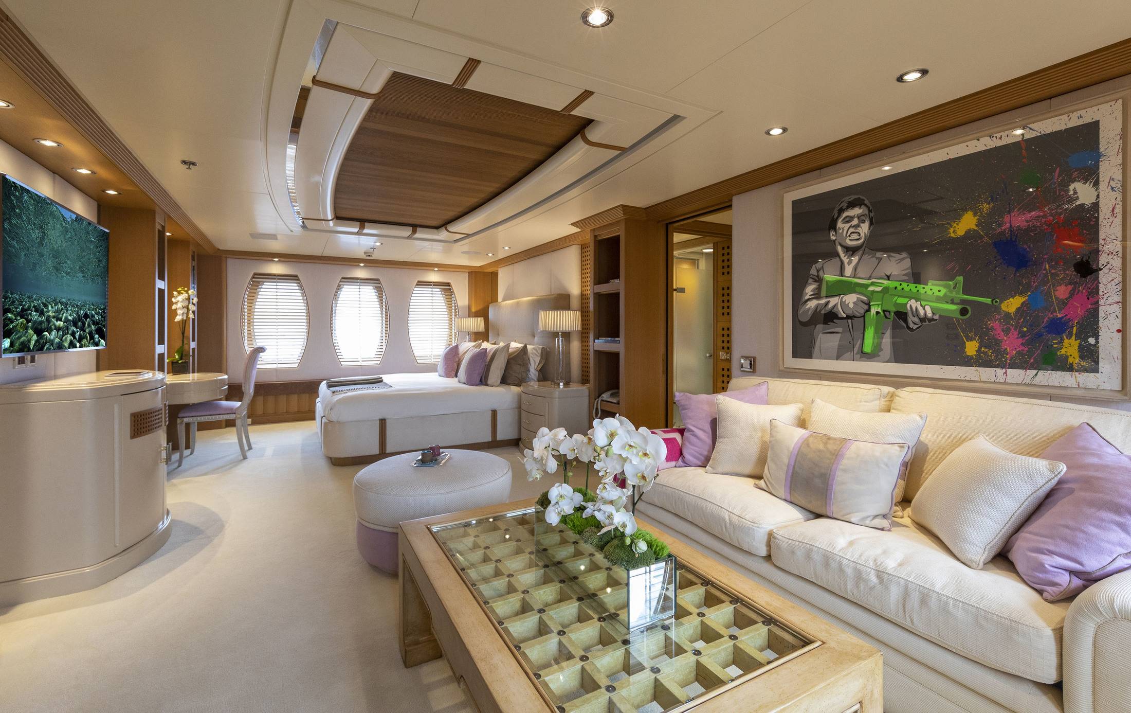 The yacht was designed by Terence Disdale, who is responsible for her stunning exterior and interior. Her sleek and beautiful lines, gorgeous furnishings as well as her impressive leisure and entertainment facilities, make her the ideal charter yacht for socializing and entertaining with family and friends. Her exceptional Captain Manolis, leads the highly experienced and professional crew of 12. Marla' sleeps up to 12 guests in 6 rooms, including a master suite, 2 double cabins and 2 twin cabins and 1 pullman bed, ensuring a relaxed luxury yachting experience. Made of steel and aluminum, she can achieve a top speed of 15.4 knots and a cruising speed of 13 knots. Please note that she has zero speed stabilizers. Previous refits on 2012 and 2014. Main engines were rebuilt to 0 hours and surveyed by Lloyd’s; generators replaced in 2010 and surveyed by Lloyd’s. Yacht has completed all class surveys. Intermediate ISM and ISPS carried out by flag in 2010. Galley fully equipped with commercial professional equipment. Her hull was repainted and her decks were refitted where necessary in the winter of 2009.