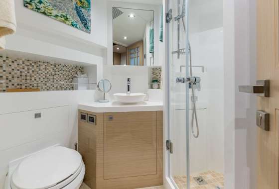 Sleeps 10 guests in 5 staterooms. On main deck Master with king size, Two VIP with queen size bed, one double and one twin /convertible with pullman bed all with ensuite facilities.