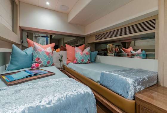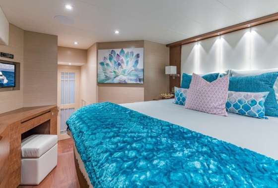 MUCHO GUSTO offers bespoke accommodation in a main deck master King Suite, a VIP King suite and a Twin berth convertible to a King suite.