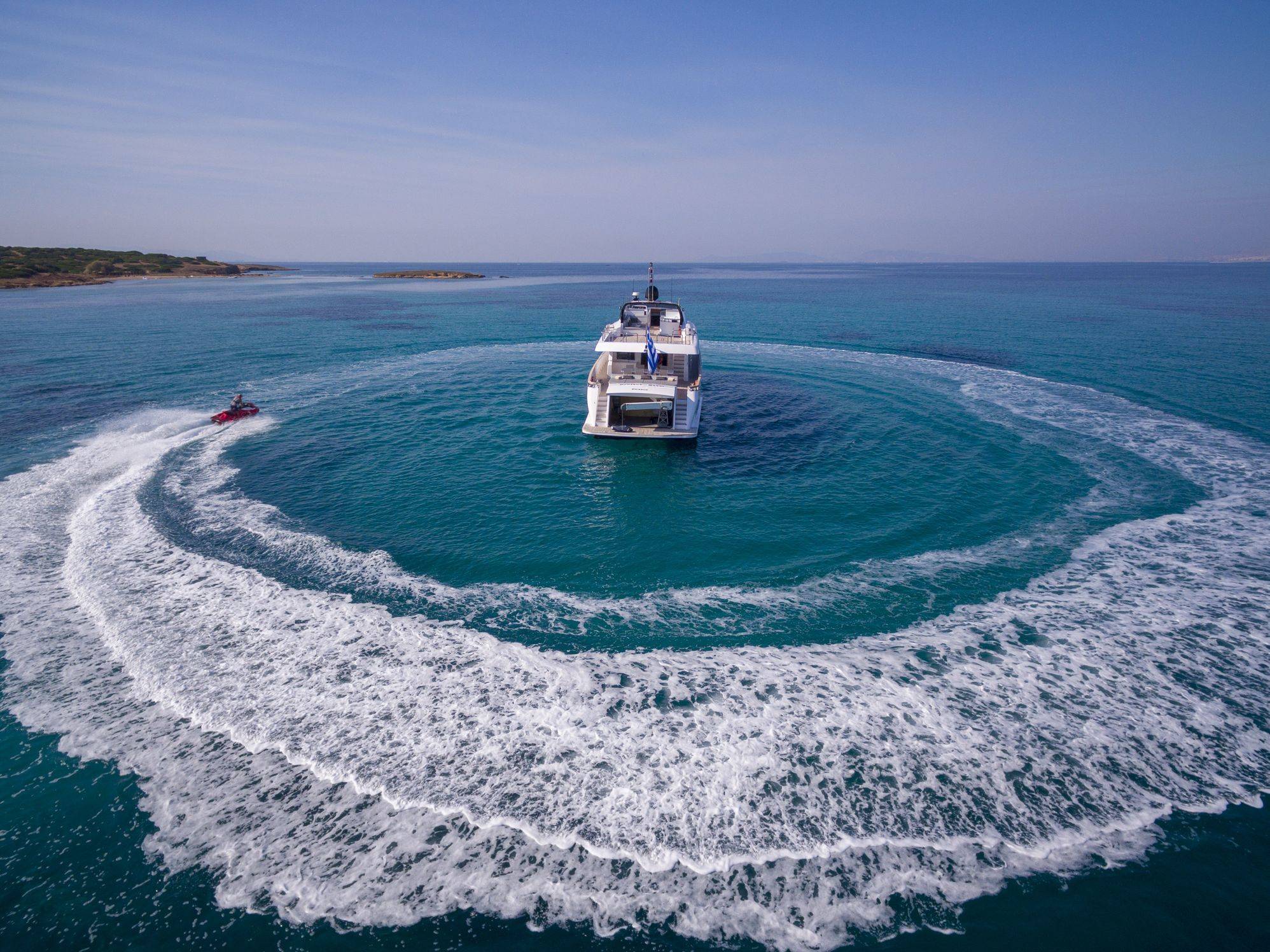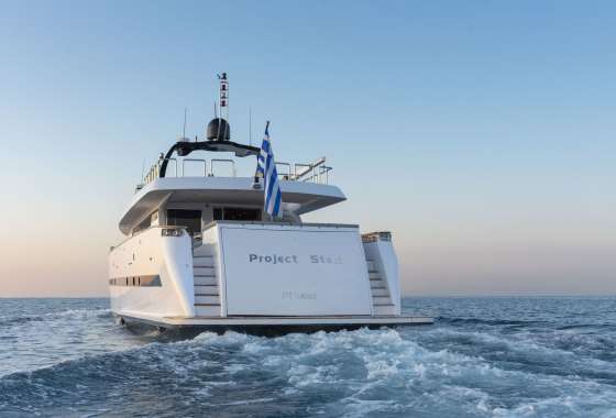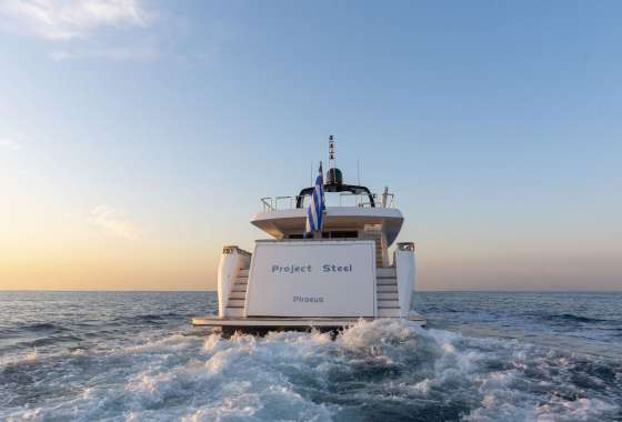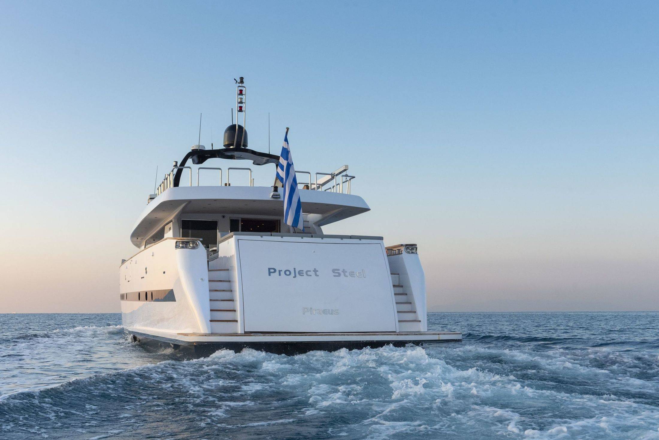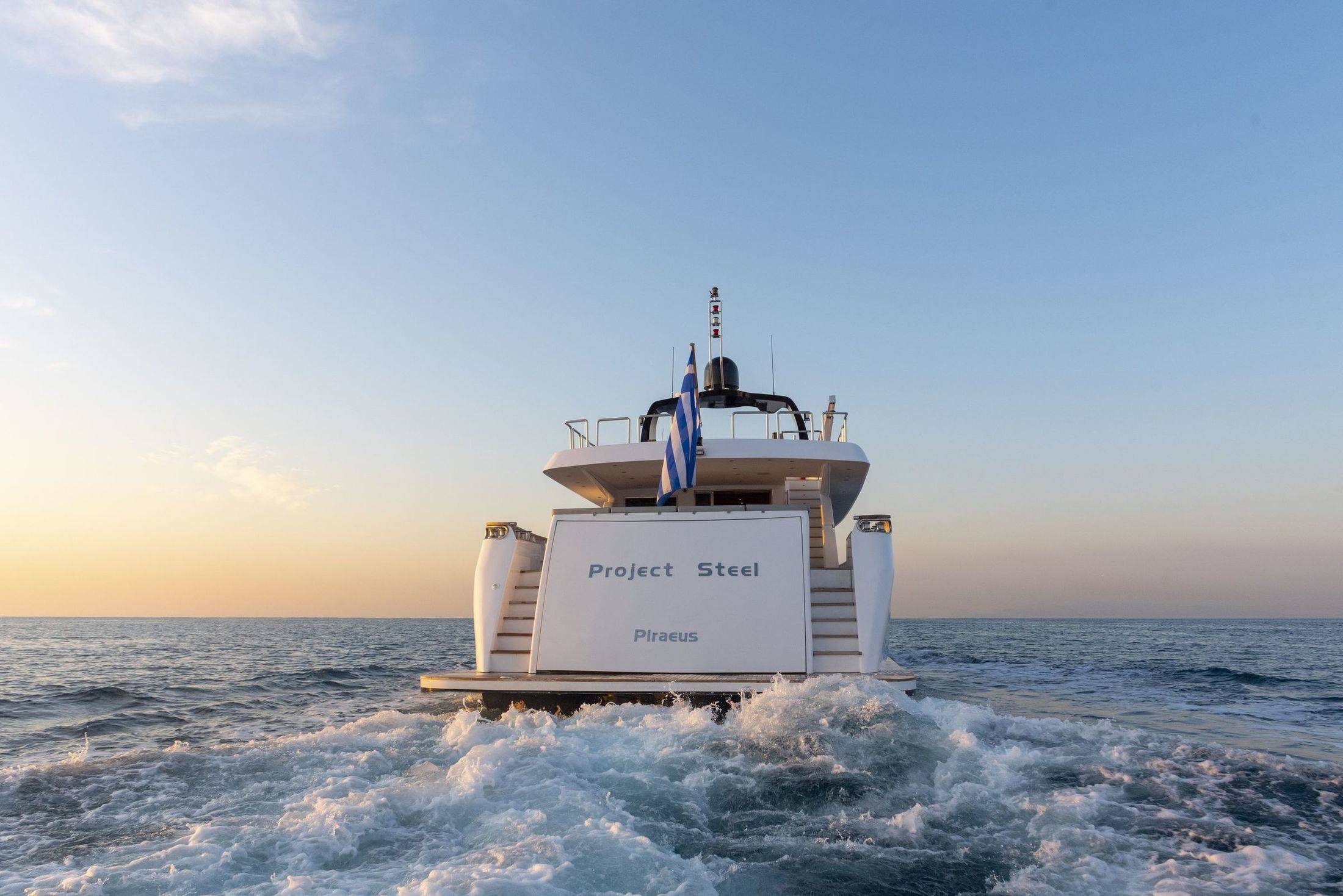 Project Steel is our amazing Bugari 112, a motor-yacht available for crewed charters throughout Greece. Featuring 5 cabins with ensuite facilities, she is perfect for larger groups of up to 12 guests.