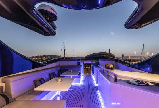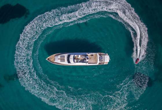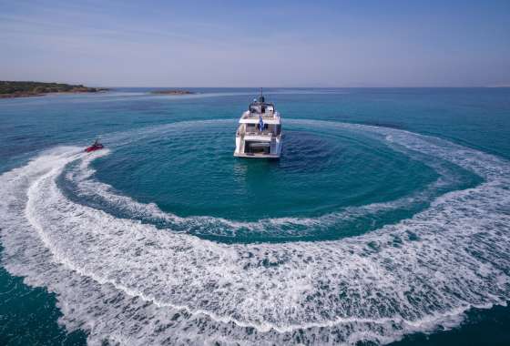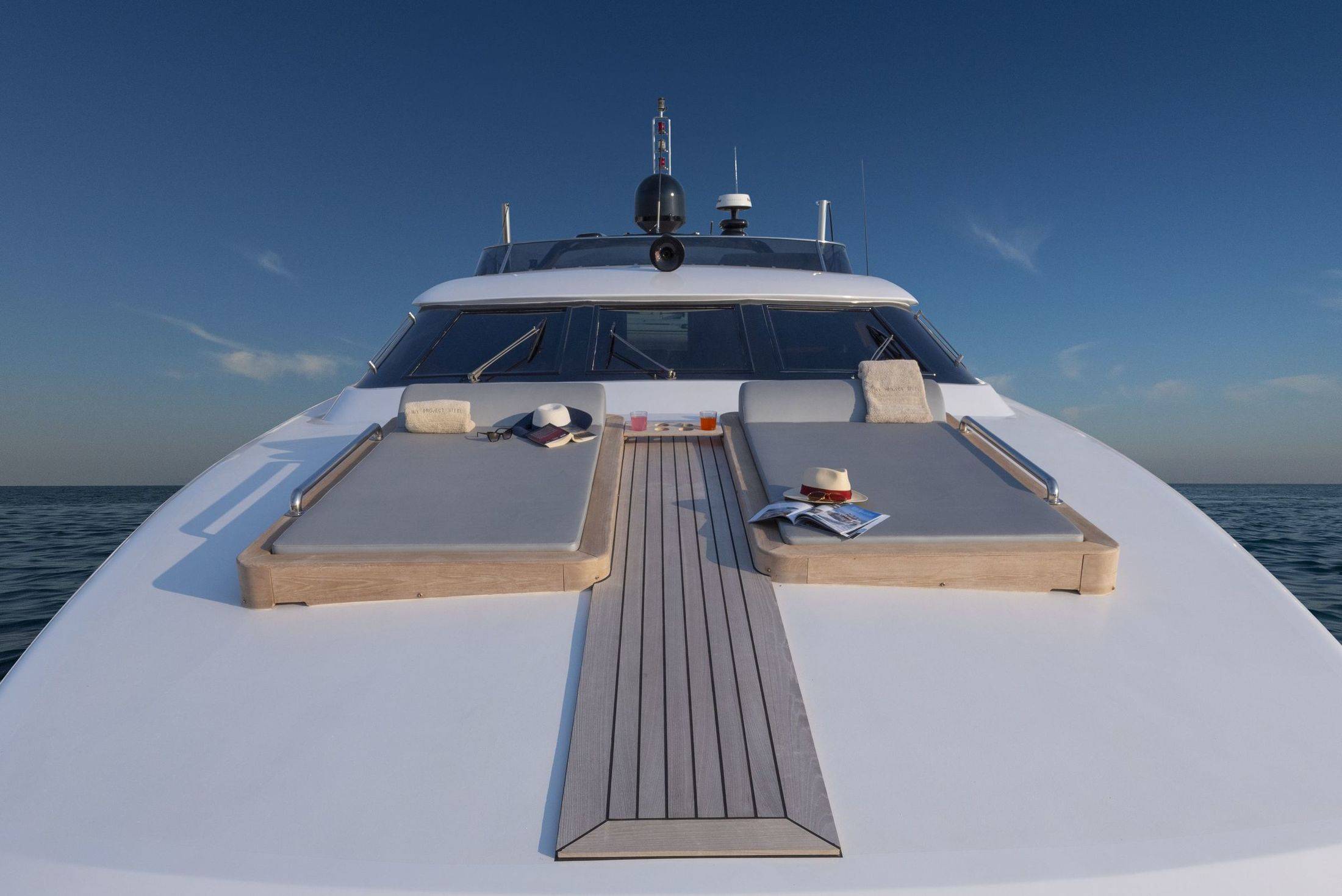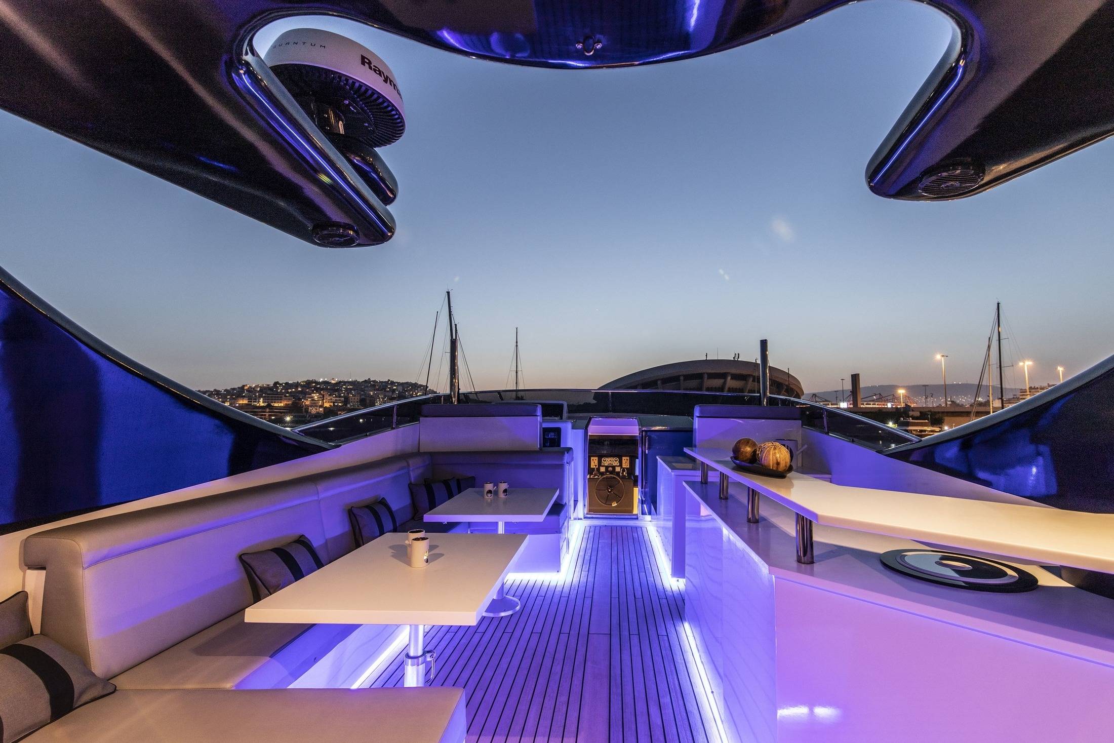 Project Steel is our amazing Bugari 112, a motor-yacht available for crewed charters throughout Greece. Featuring 5 cabins with ensuite facilities, she is perfect for larger groups of up to 12 guests.