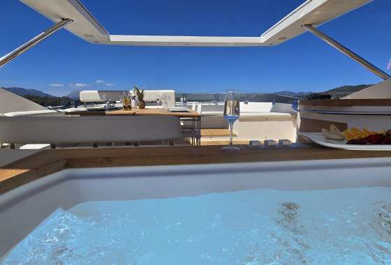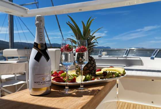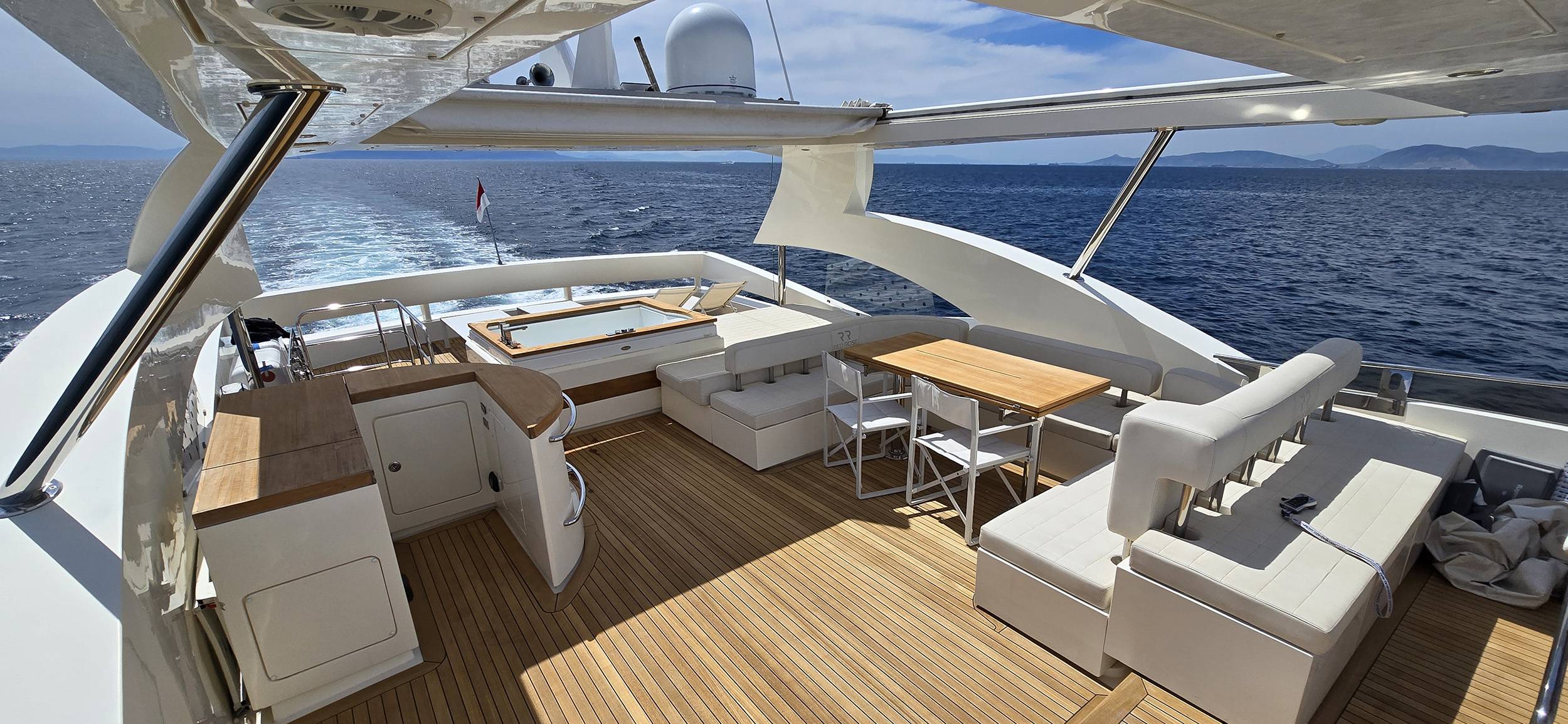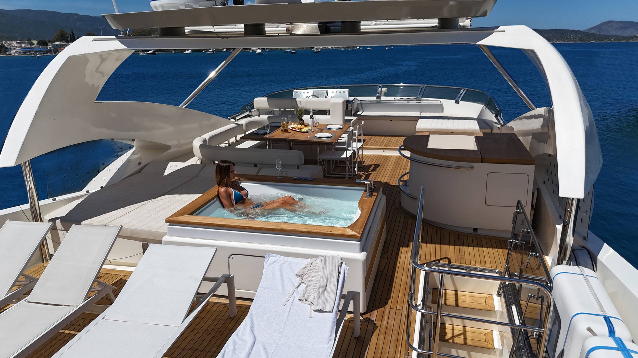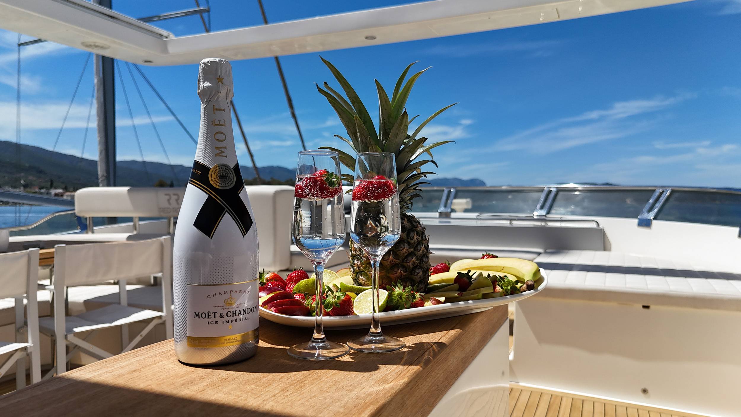 Designed for outdoor indulgence, Red Rose offers expansive deck spaces featuring a spacious jacuzzi and a larger hardtop than most yachts in her class. Her generous seating areas create the perfect setting for all-day alfresco dining, from a light morning breakfast to a leisurely lunch and an exquisite evening feast under the stars.