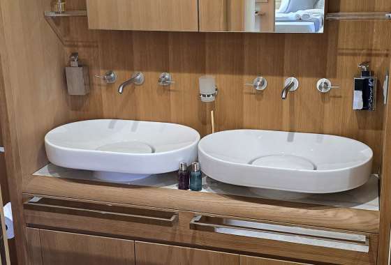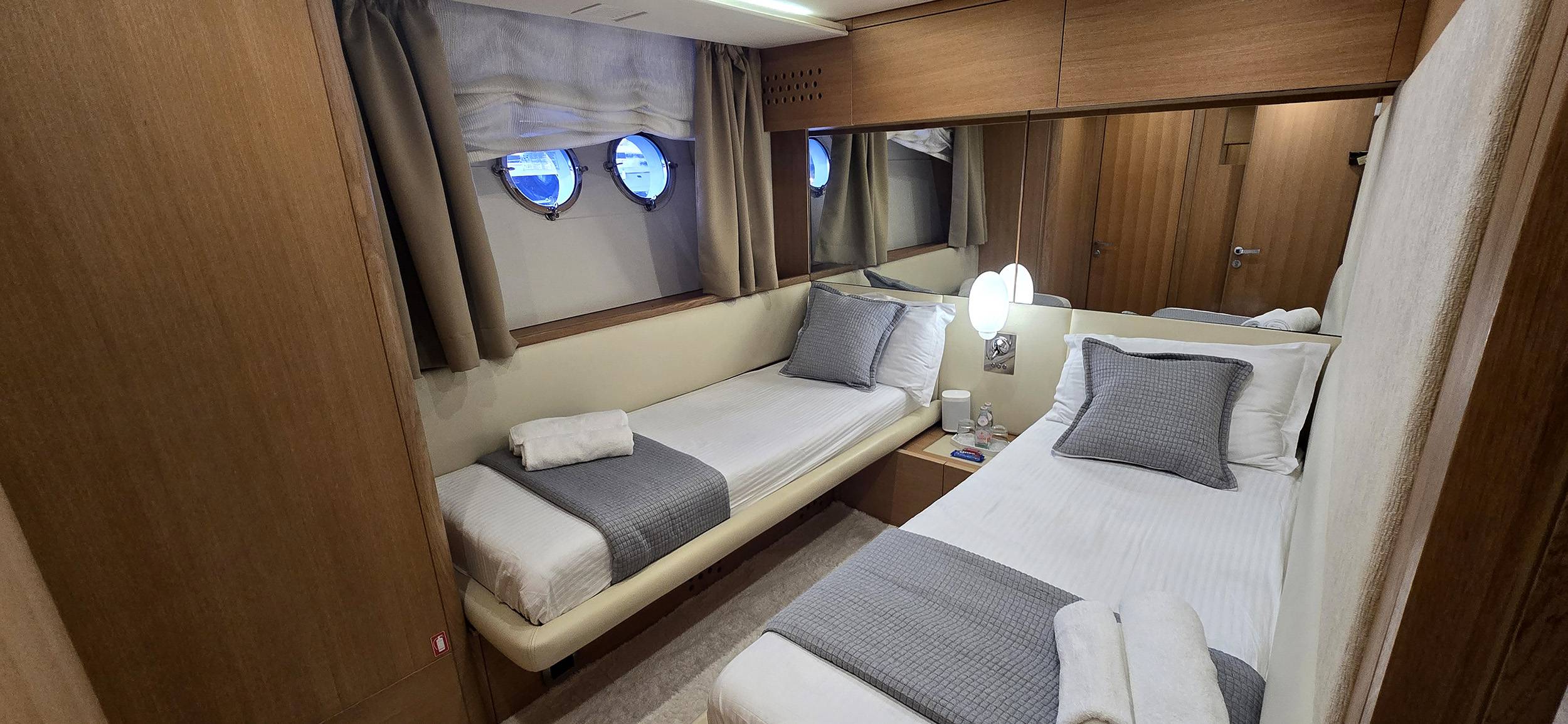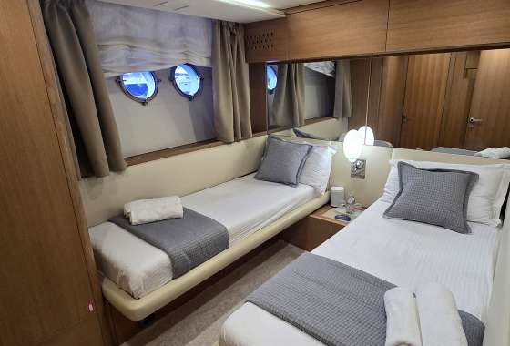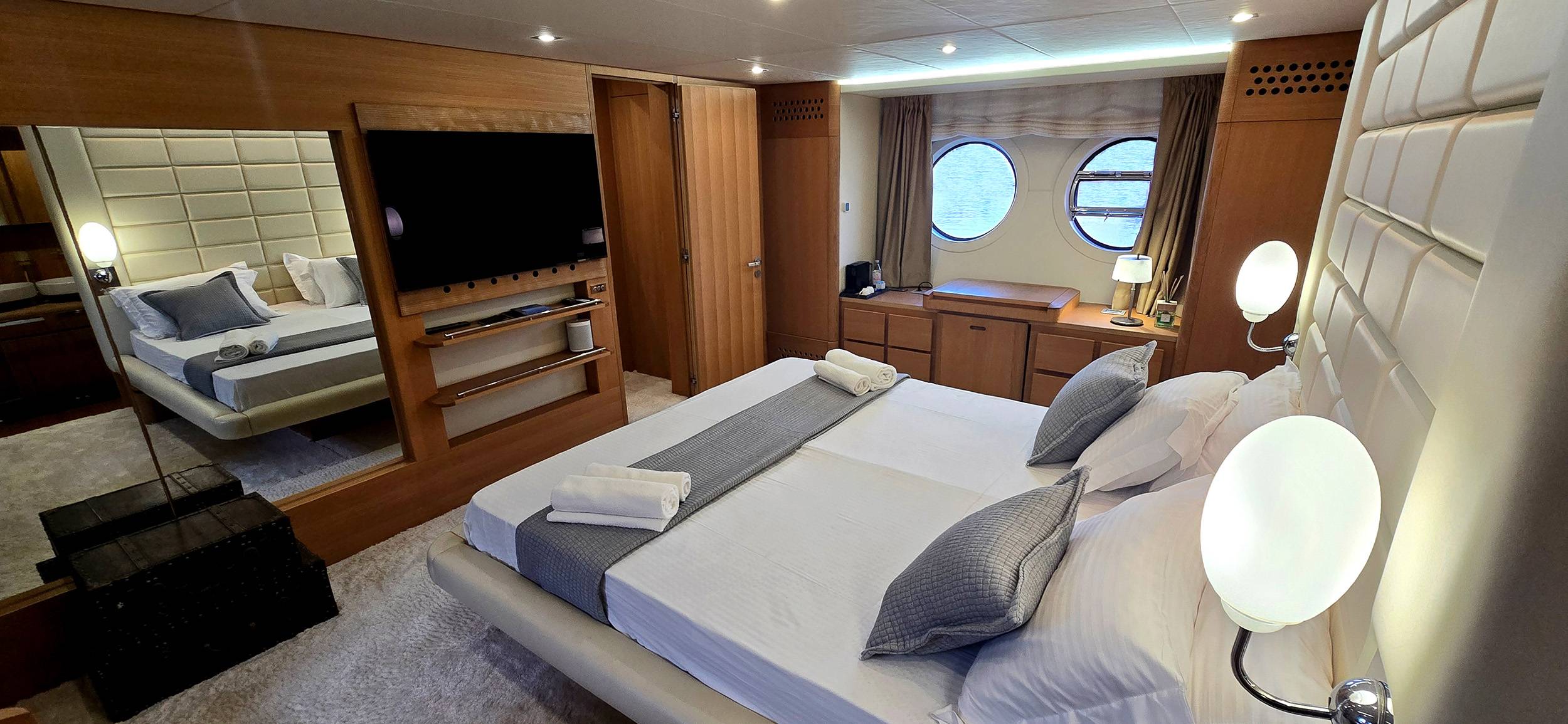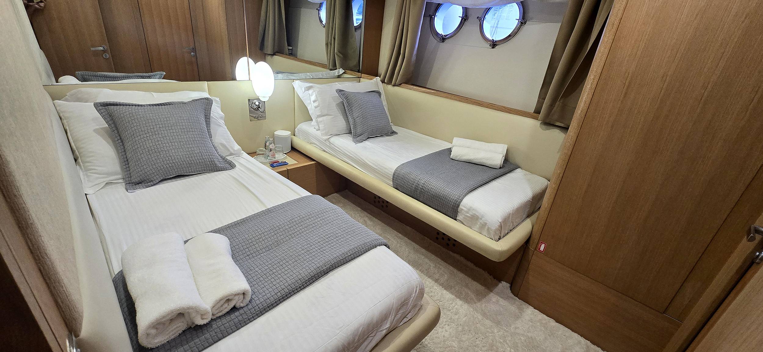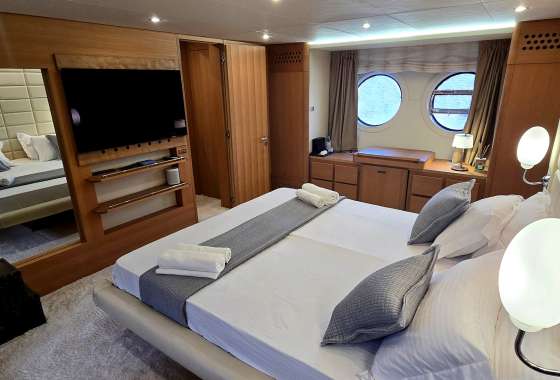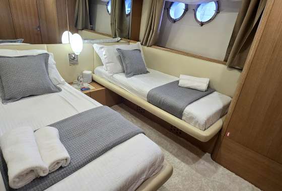 8 guests in 1 Master Suite, 1 VIP and 2 Twin Cabins of which the one can be convertible to double, all with en-suite facilities.