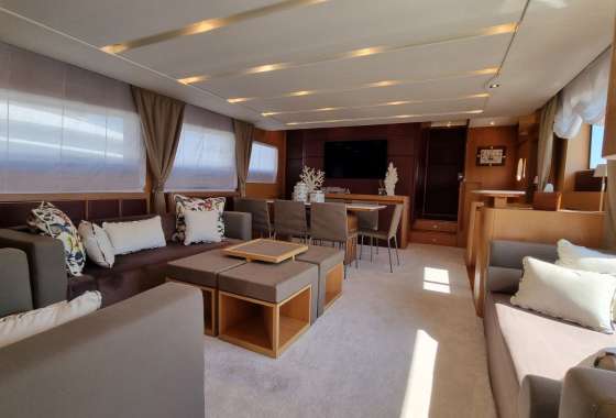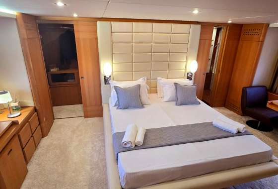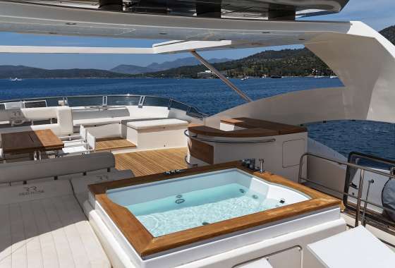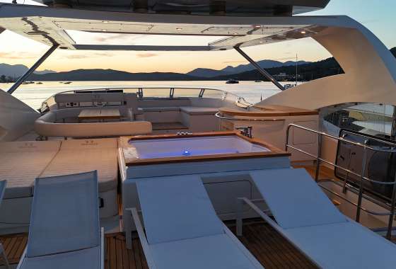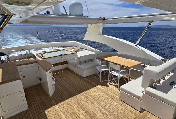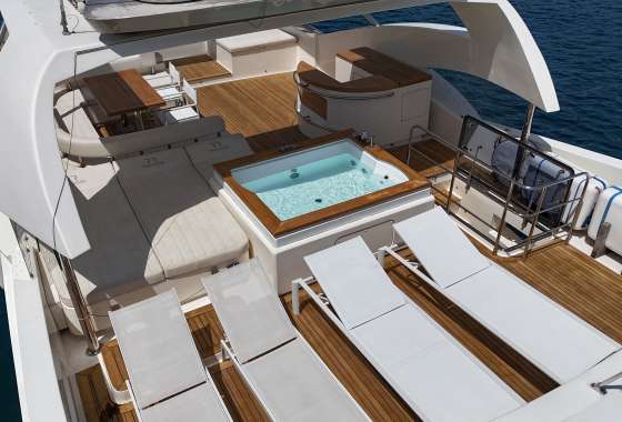 Stabilizers underway and zero speed, Impressive sundeck area with a BBQ and multiple lounge areas, Submersible swimming platform, Small bar area in main salon, TV in salon & in two of four cabins, Sonos sound system, His & Hers en-suite in Master cabin, Seperate crew quarters ensuring maximum guest privacy