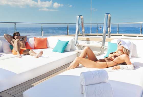 Perfect for sunbathing, lounging and entertaining guests, the yacht comes with a plethora of amenities.