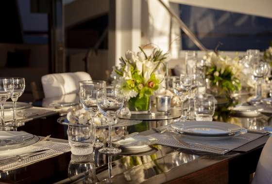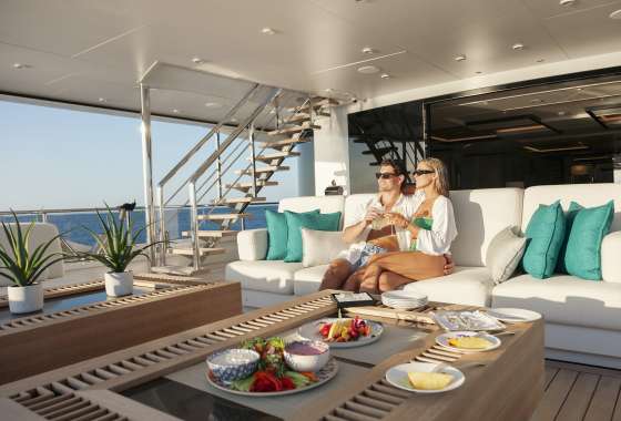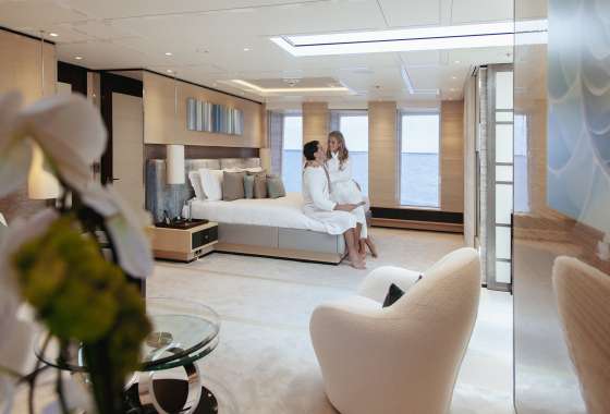 The yacht offers luxurious accommodations for up to 12 guests, across 6 refined suites.