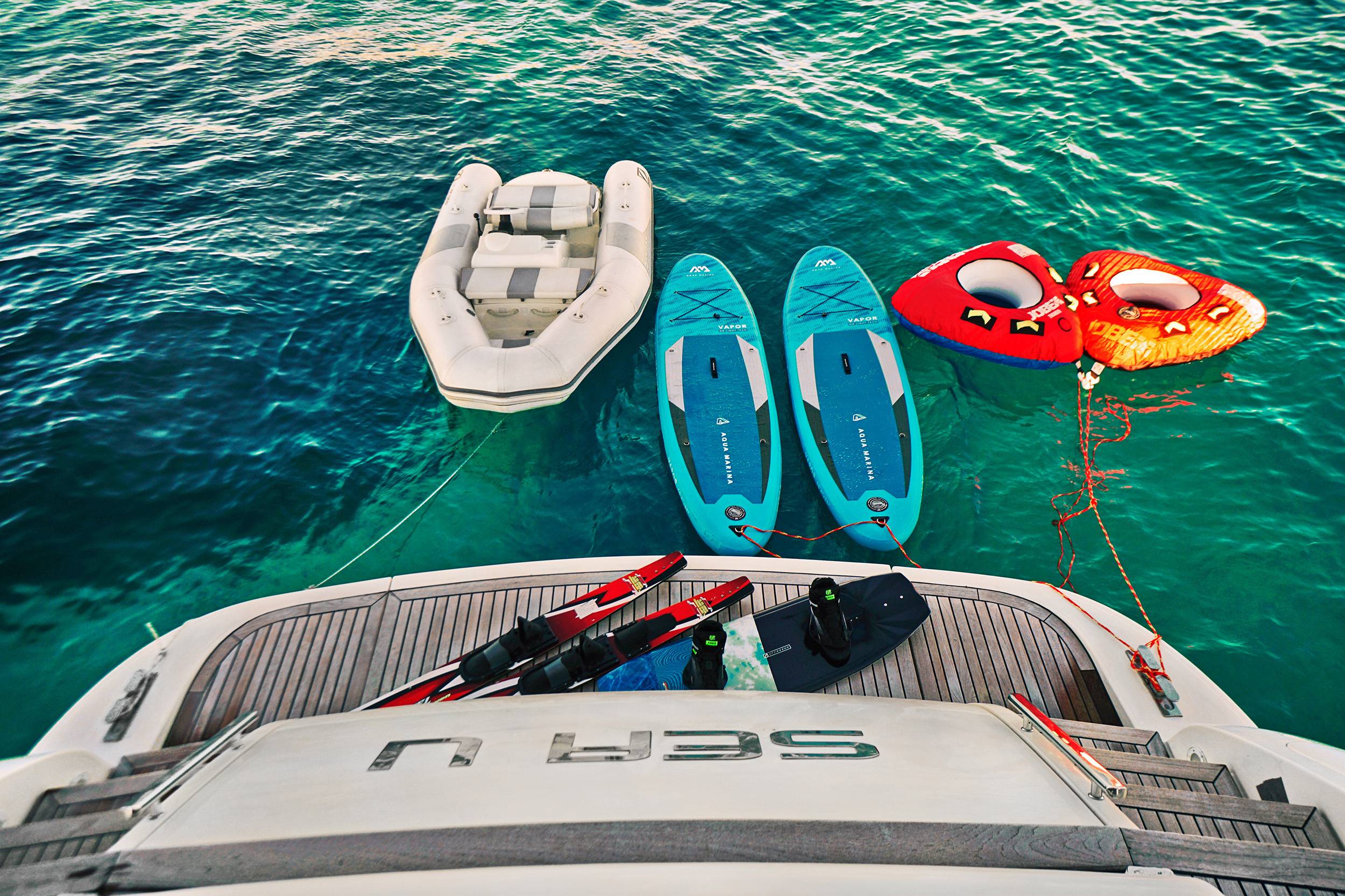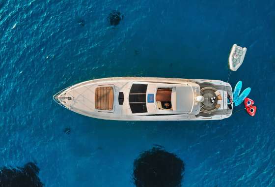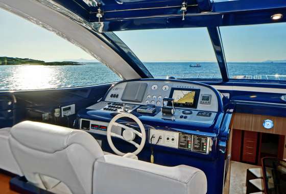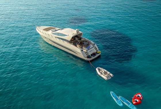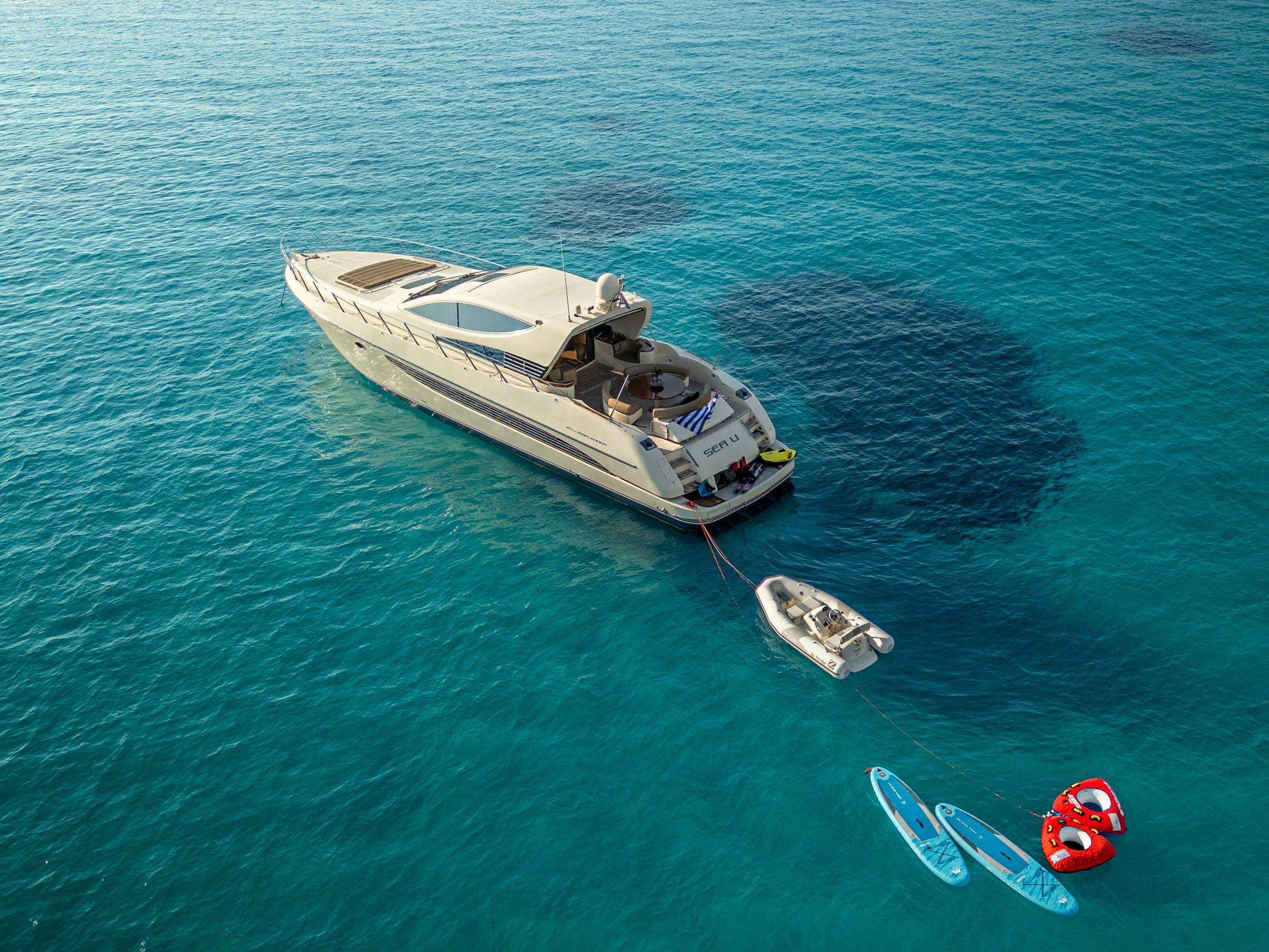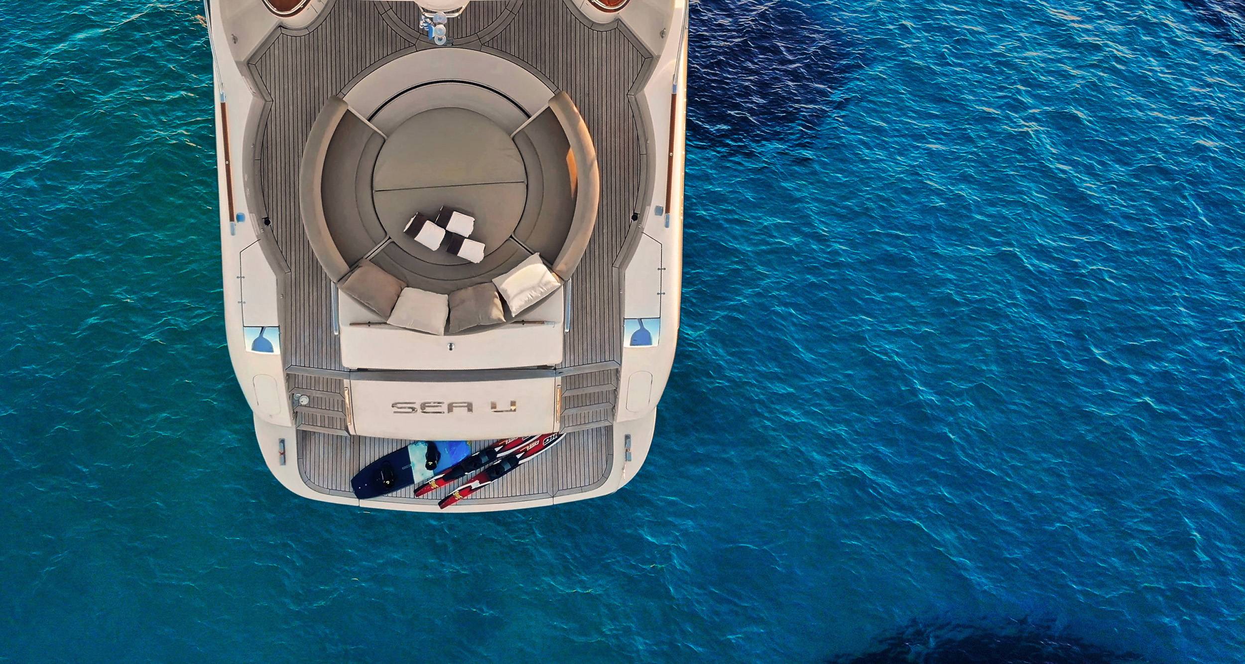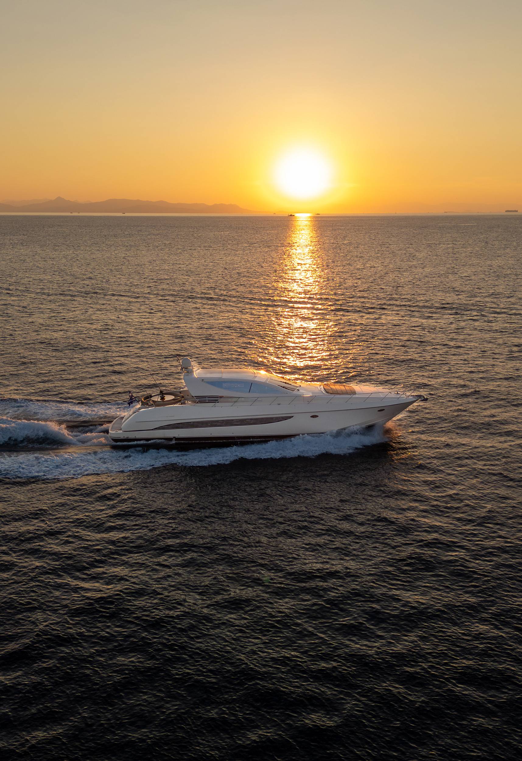 An elegant yacht that Riva describes as a "cabriolet sports cruiser". She features a retractable sunroof on her main deck salon, flooding the interior with sunlight and at her lower deck there is a large semi-transparent skylight, also allowing natural light to enter.
