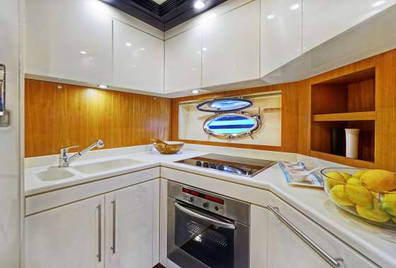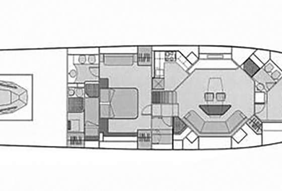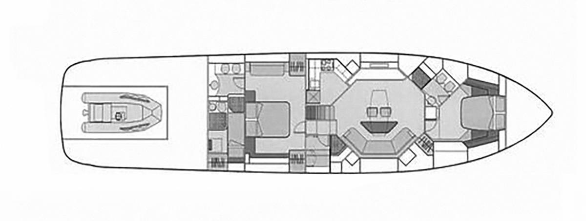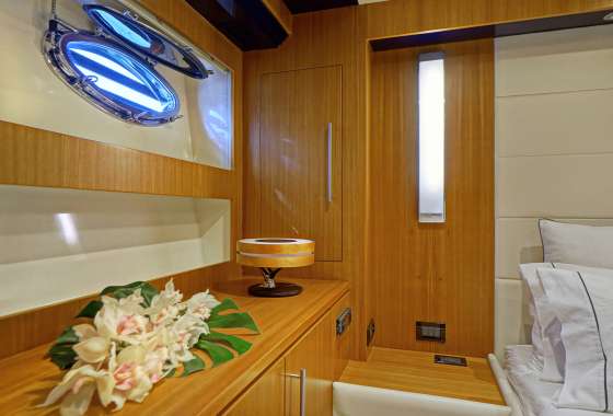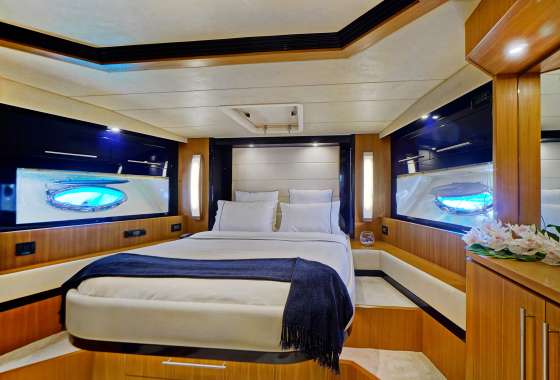 The most important part of the boat - the aft deck, is right next to the meticulously composed main saloon. The main saloon is a friendly space with comfortable seating and entertainment areas and enables a number of media entertainment options. She the ideal option for weekend getaways and romantic cruises.