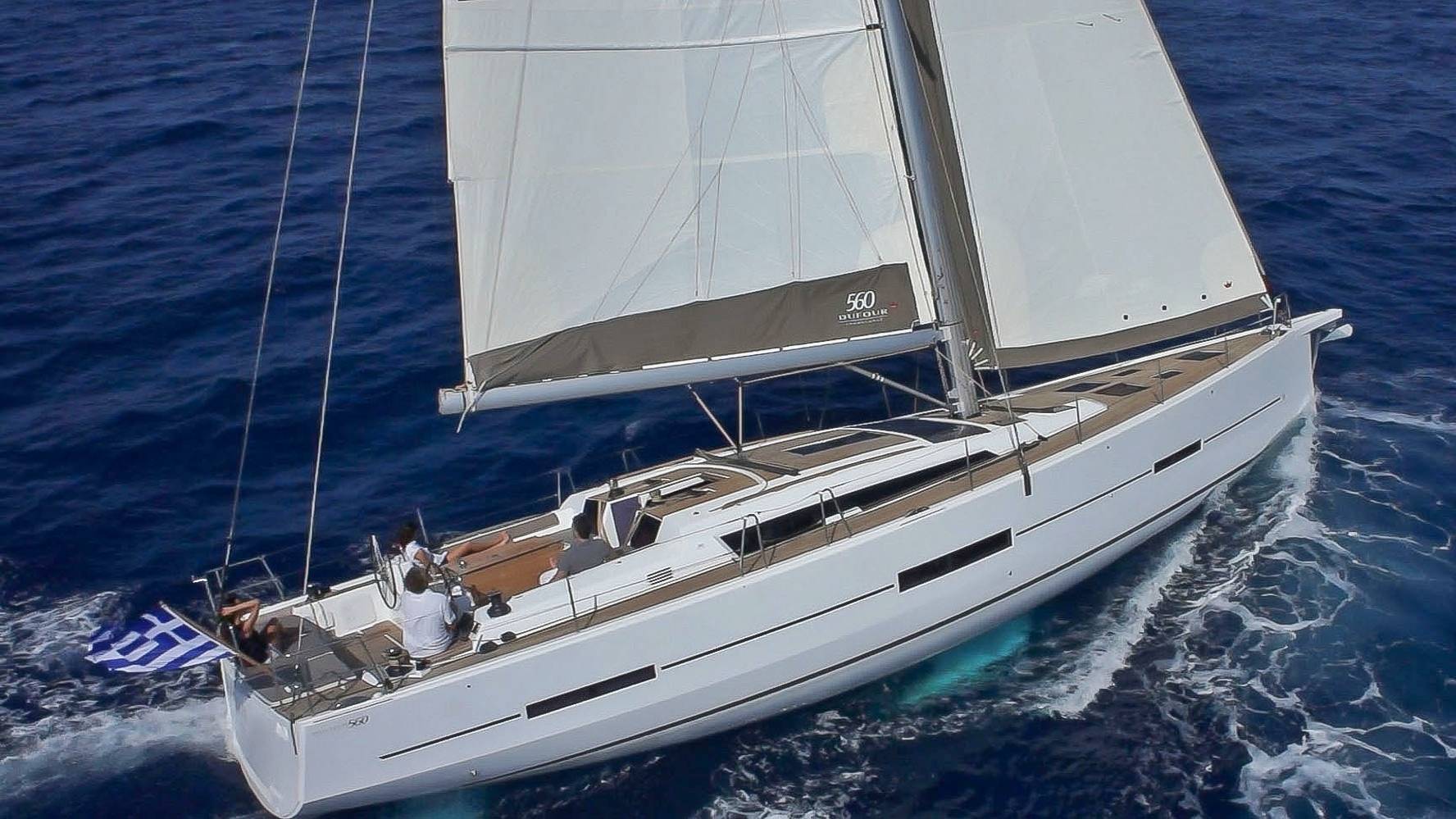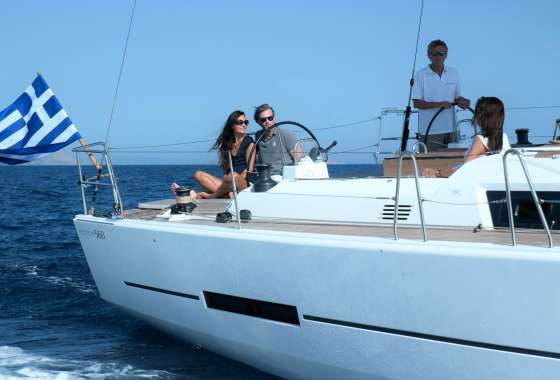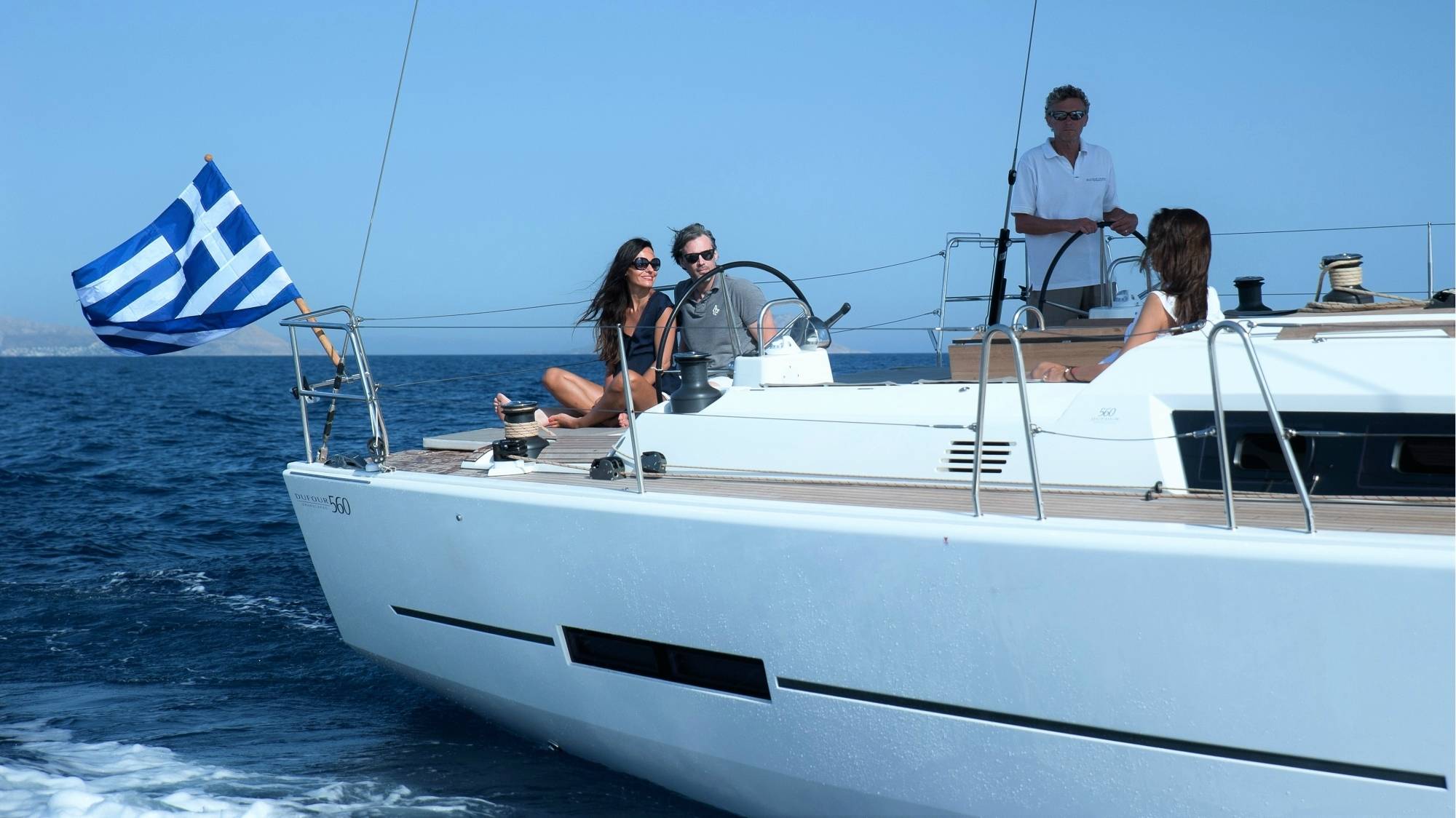 Drunken Sailor is our Dufour 560, a sailing yacht available for skippered and crewed charters throughout Greece.