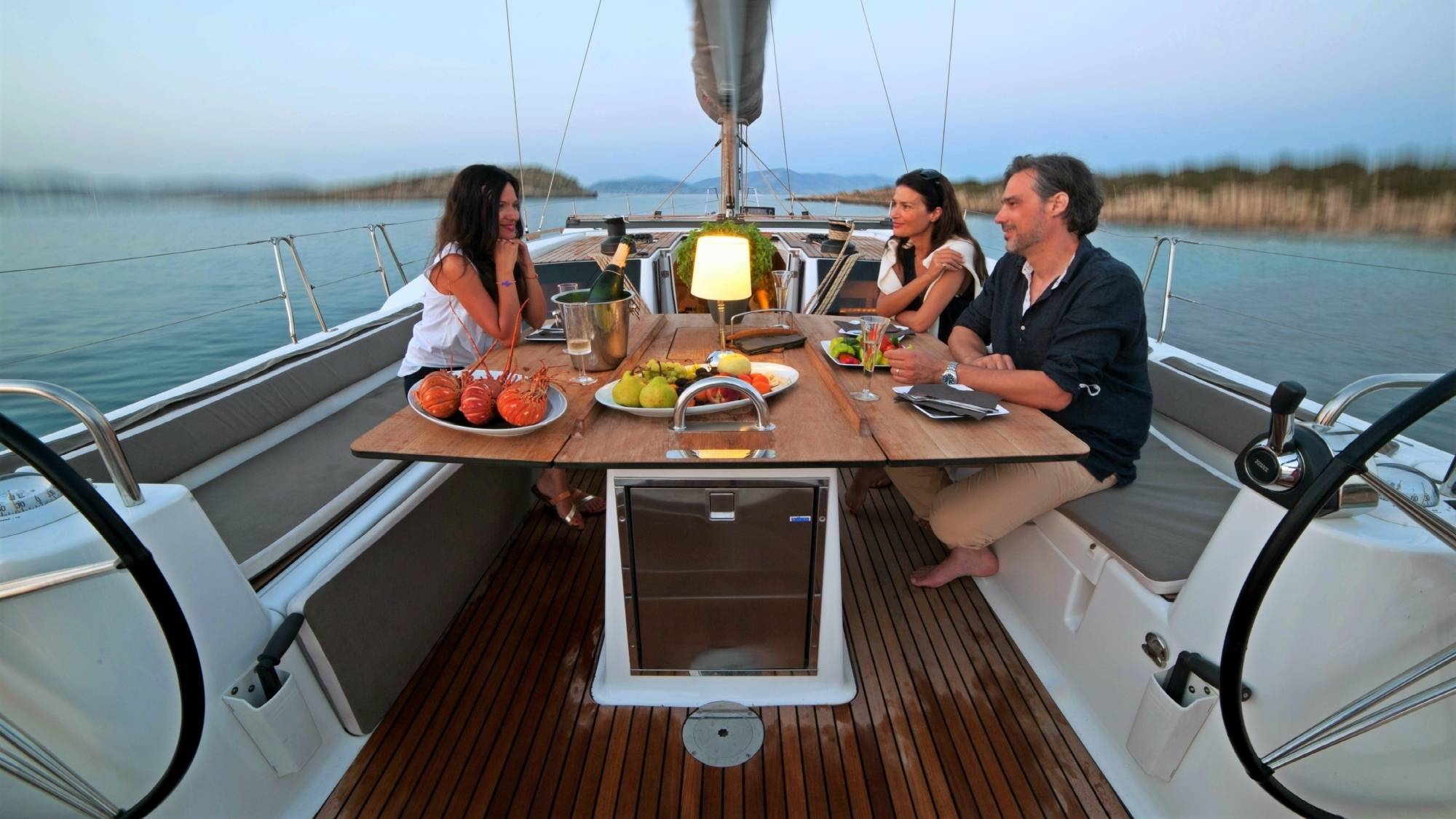 With 3 cabins and 3 wc it is perfect for groups of up to 6 guests. A grandiose sailing beauty designed to satisfy those seeking the perfect balance of performance, style, luxury and comfort.Drunken Sailor is the newest flagship of the famous Dufour shipyard incorporating many innovative details that make all the difference between just plain sailing, and the ultimate in luxurious sailing!