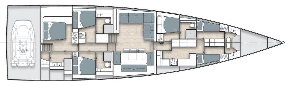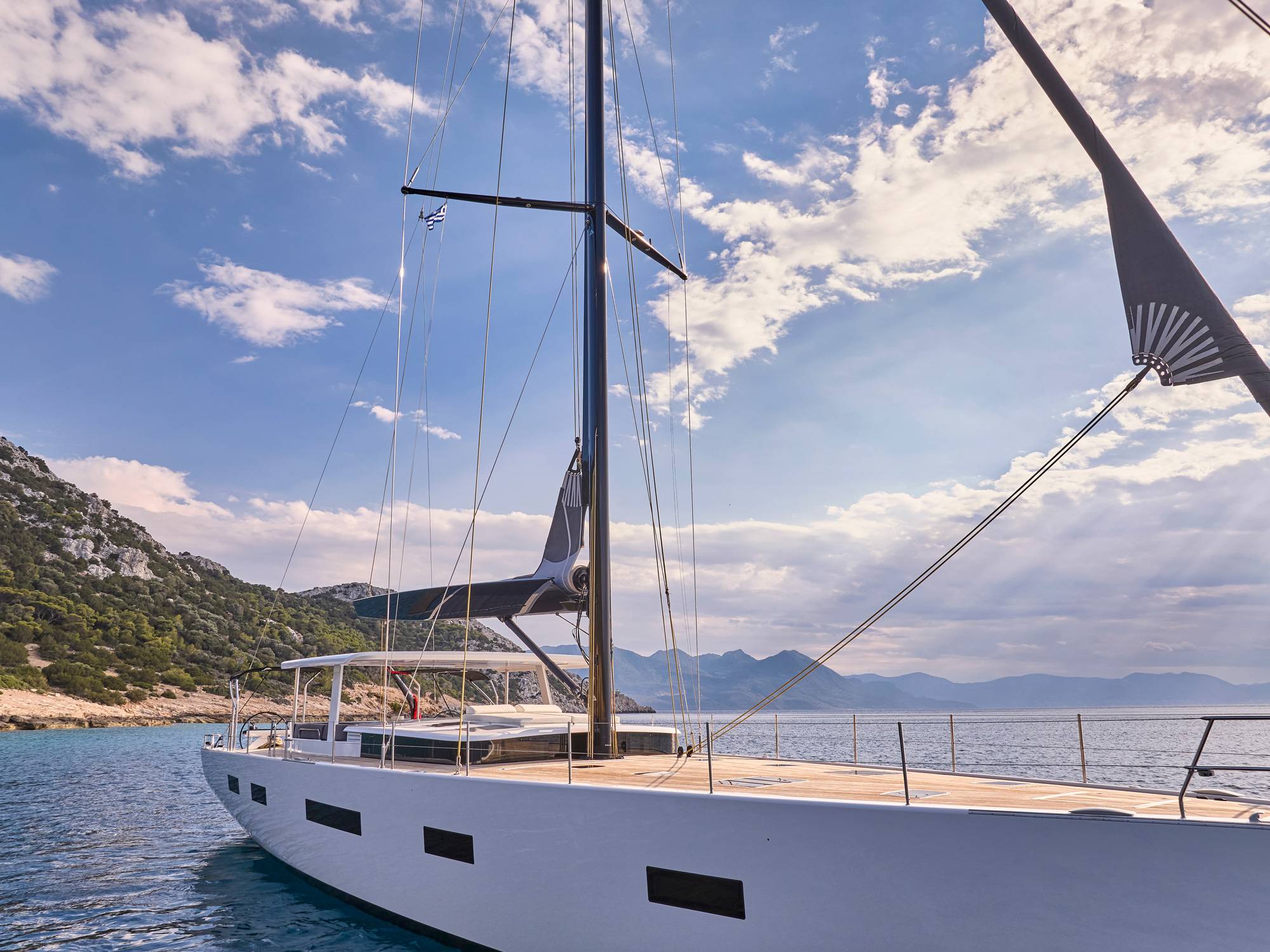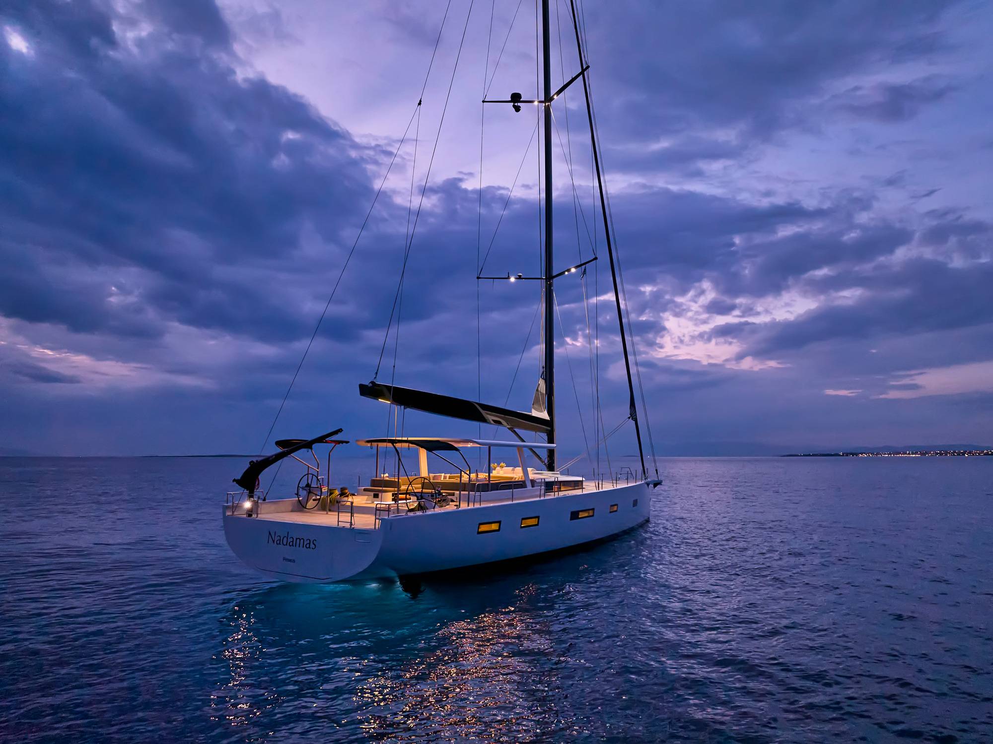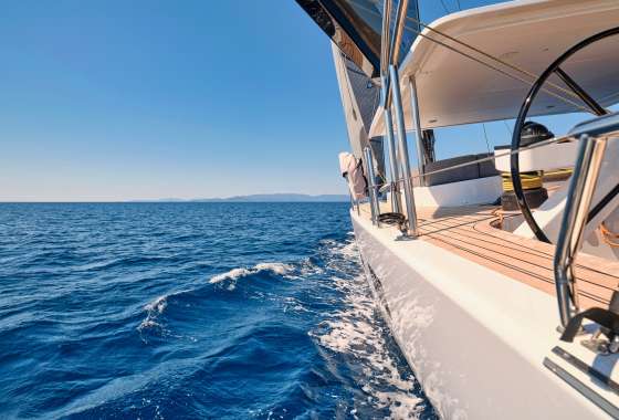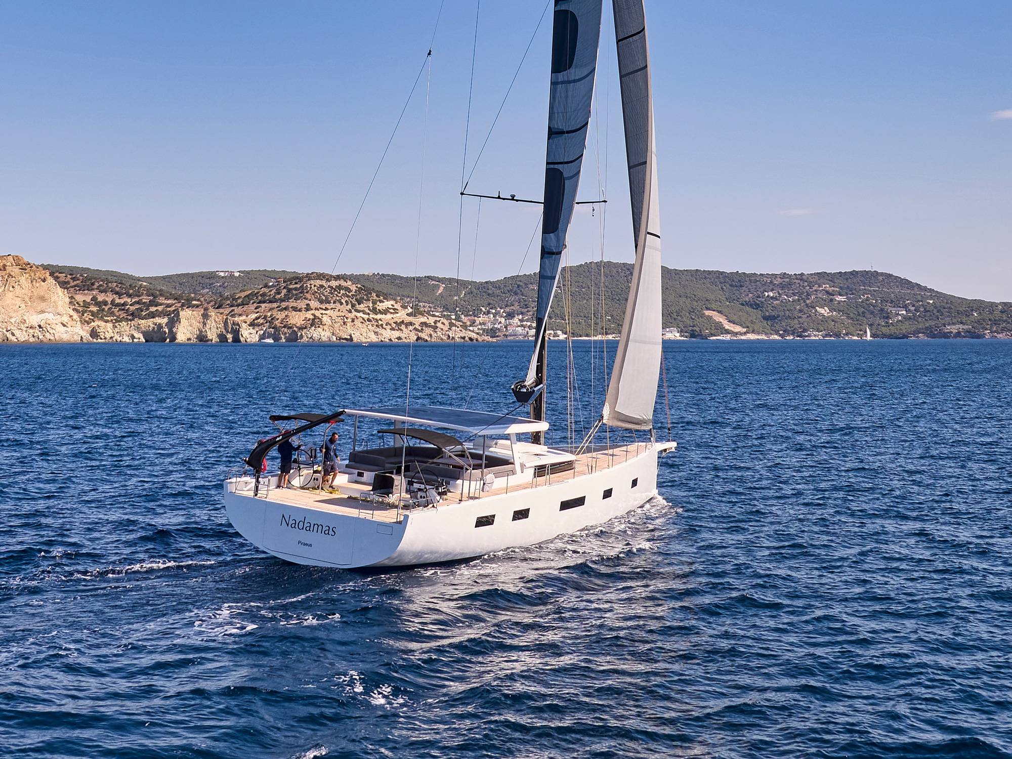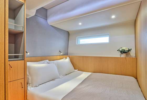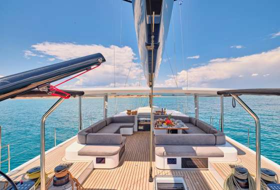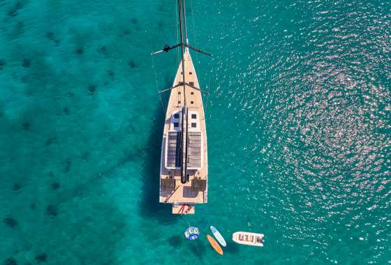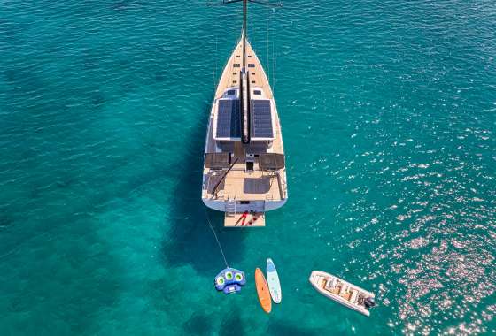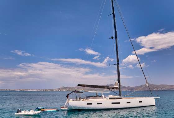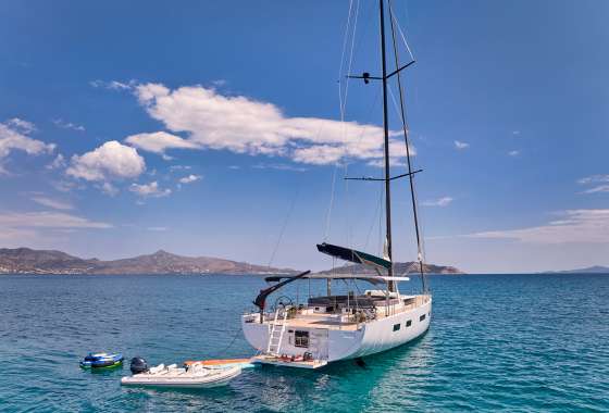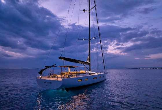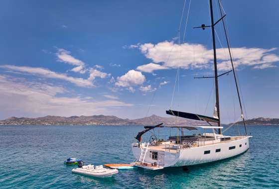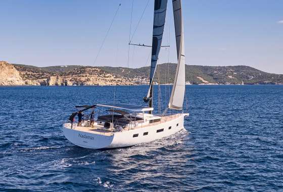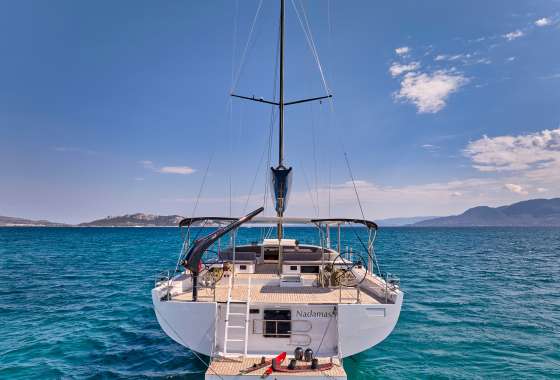 Timeless aesthetics paired with unique sailing performance make Nadamas the absolute sailing yacht for vacation in Greek islands. Her layout featuring 4 double cabins with en-suite facilities is ideal for 4 couples. Nadamas's luxury interior always feels bright and open as from the color pallets to the furniture her design ensures relaxed impression, while her ample sundeck is perfect for sunbathing with family and friends. For those who prefer to keep being active, her water toys collection guarantee unforgettable on-water experience!