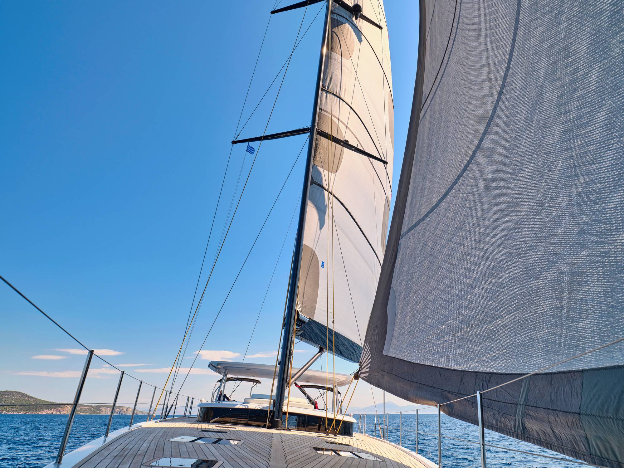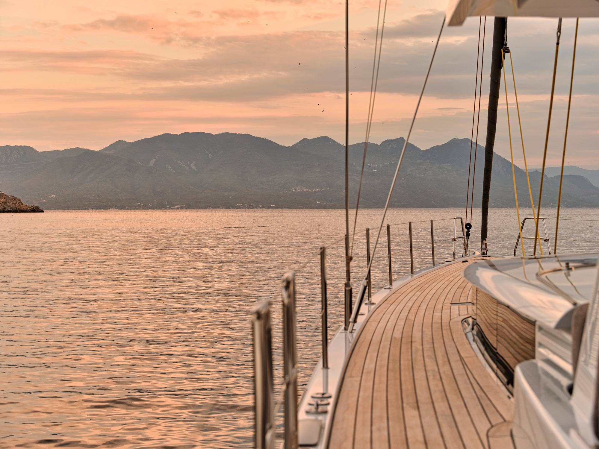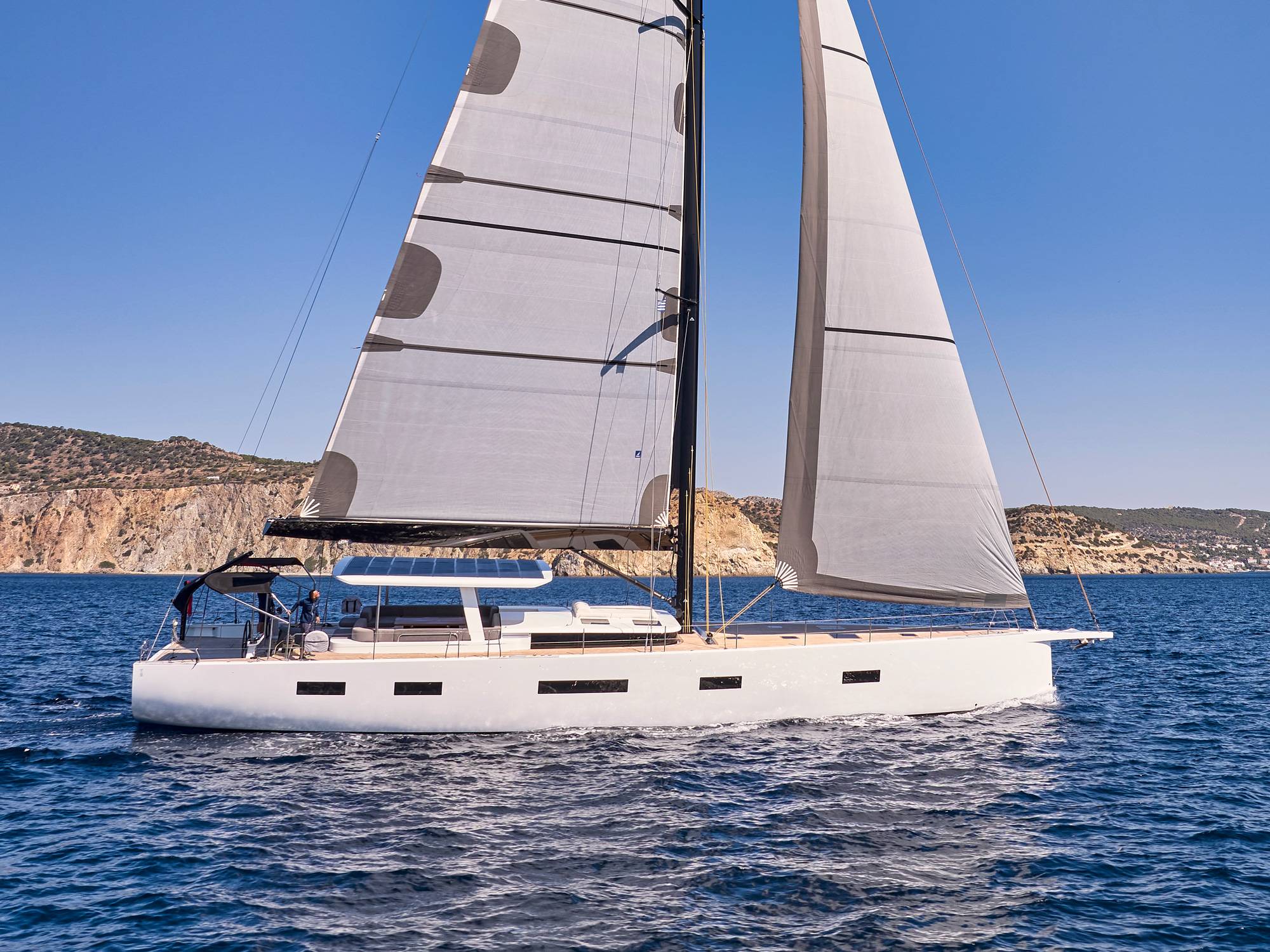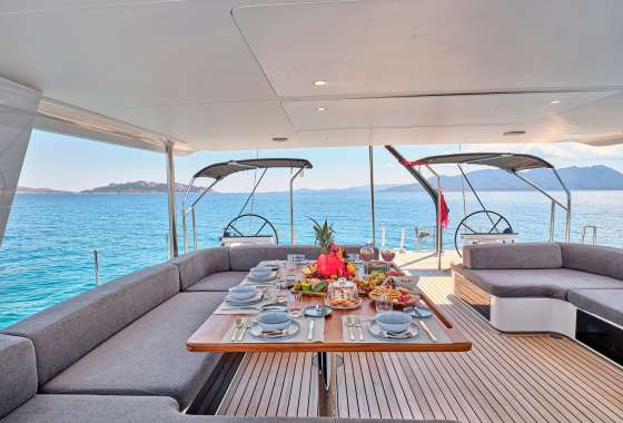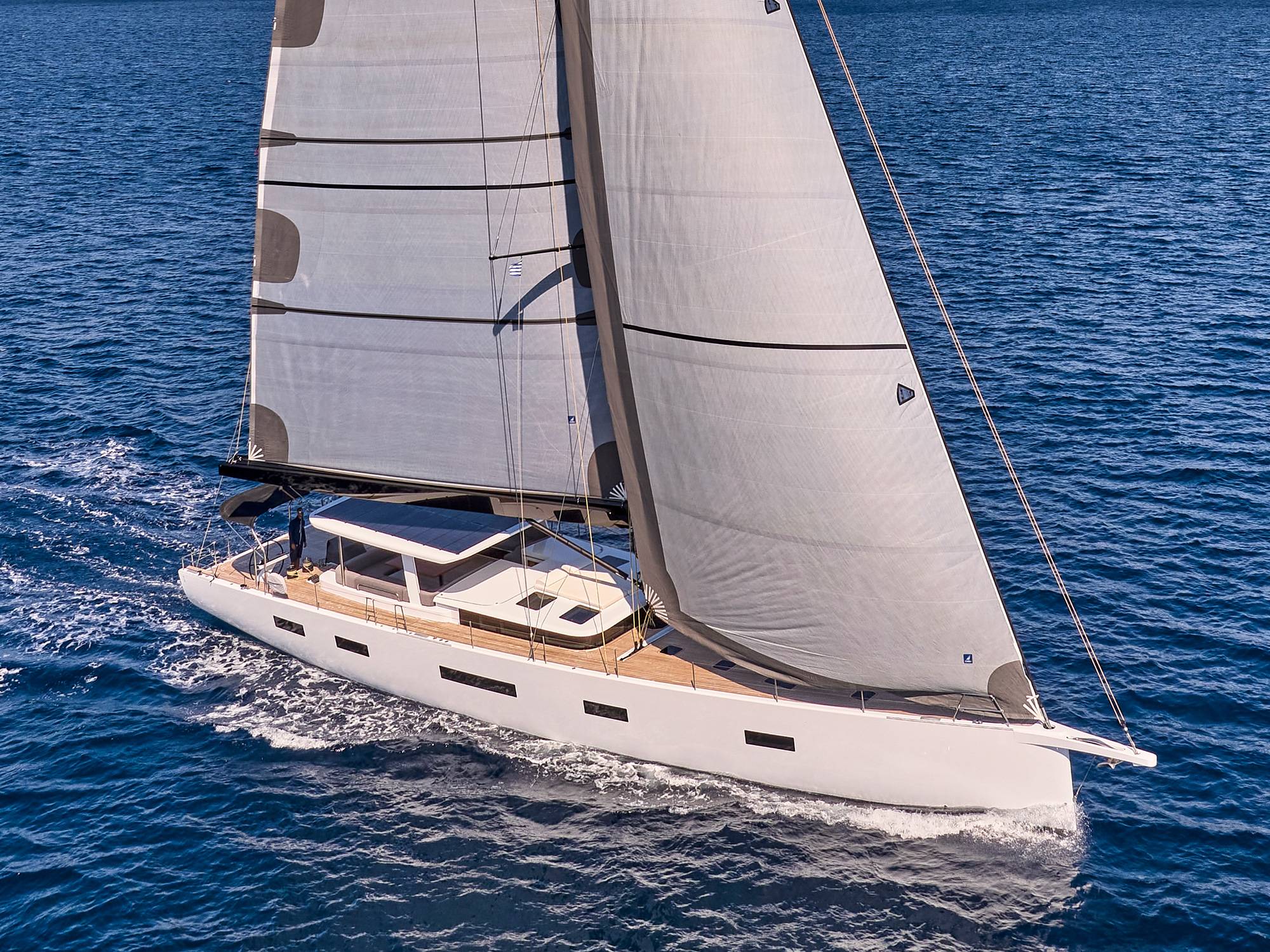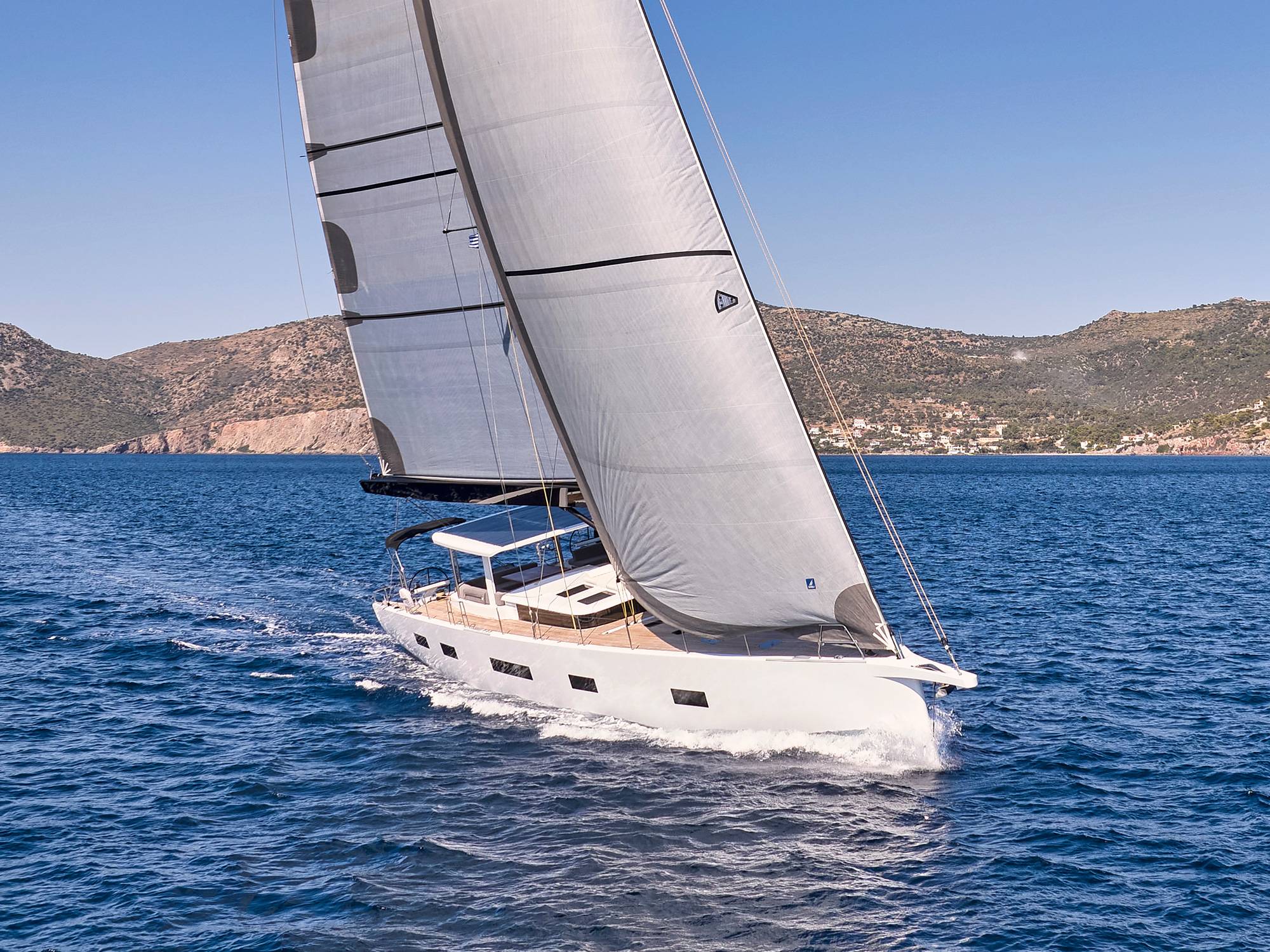 Timeless aesthetics paired with unique sailing performance make Nadamas the absolute sailing yacht for vacation in Greek islands. Her layout featuring 4 double cabins with en-suite facilities is ideal for 4 couples. Nadamas's luxury interior always feels bright and open as from the color pallets to the furniture her design ensures relaxed impression, while her ample sundeck is perfect for sunbathing with family and friends. For those who prefer to keep being active, her water toys collection guarantee unforgettable on-water experience!