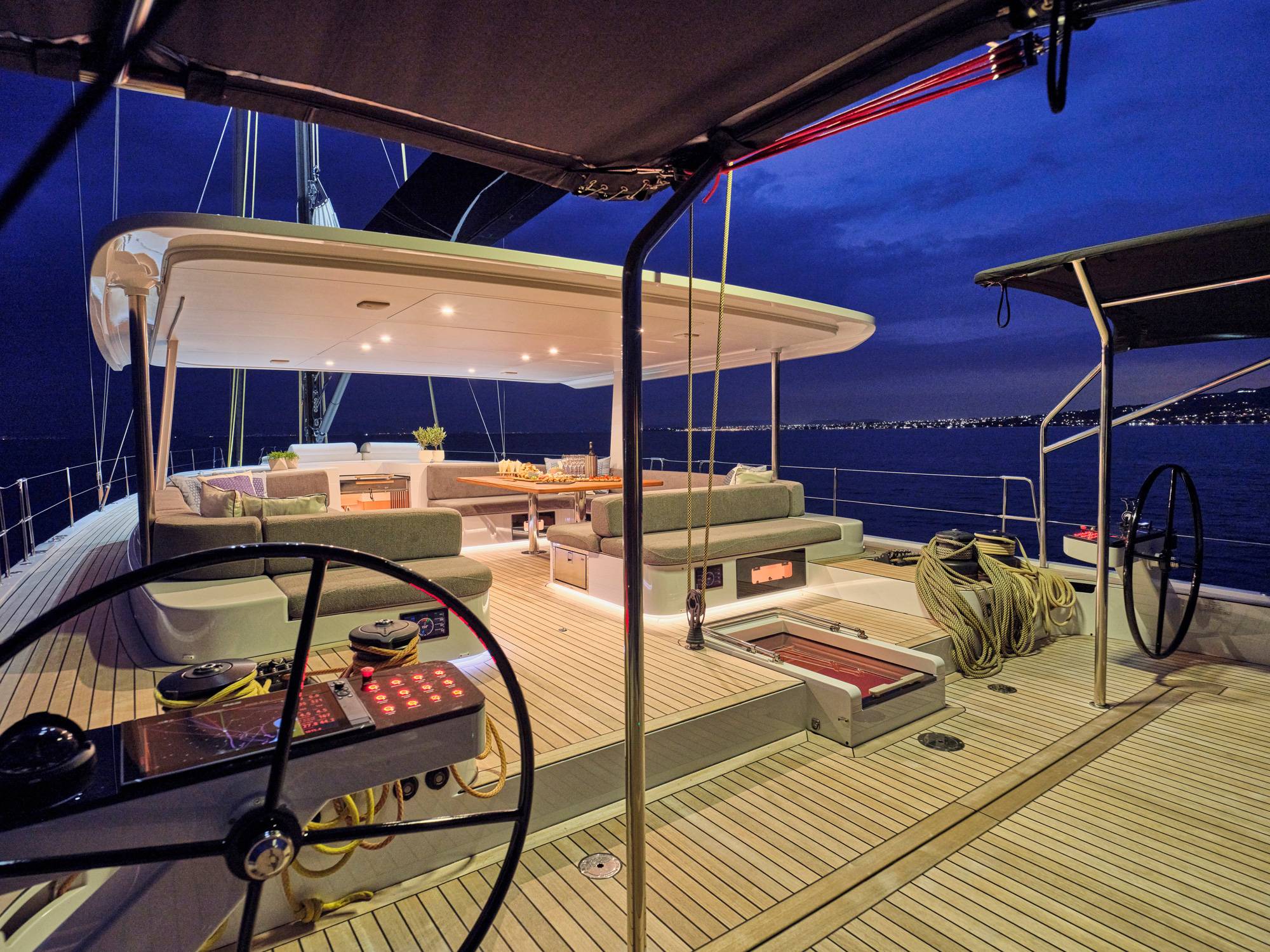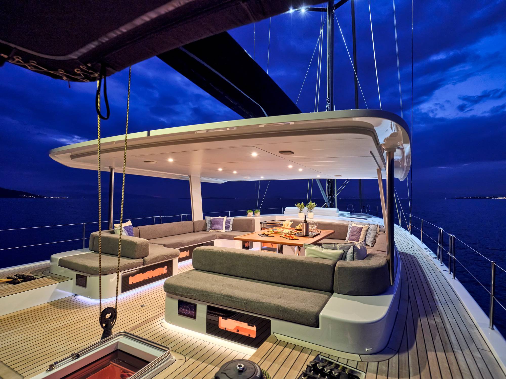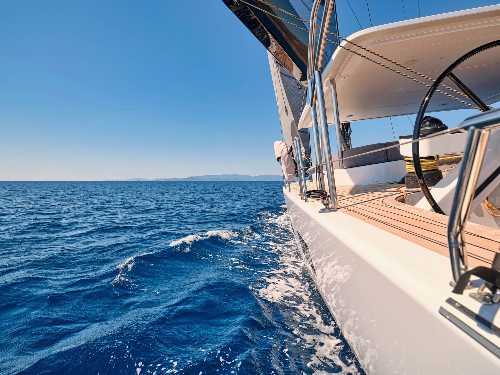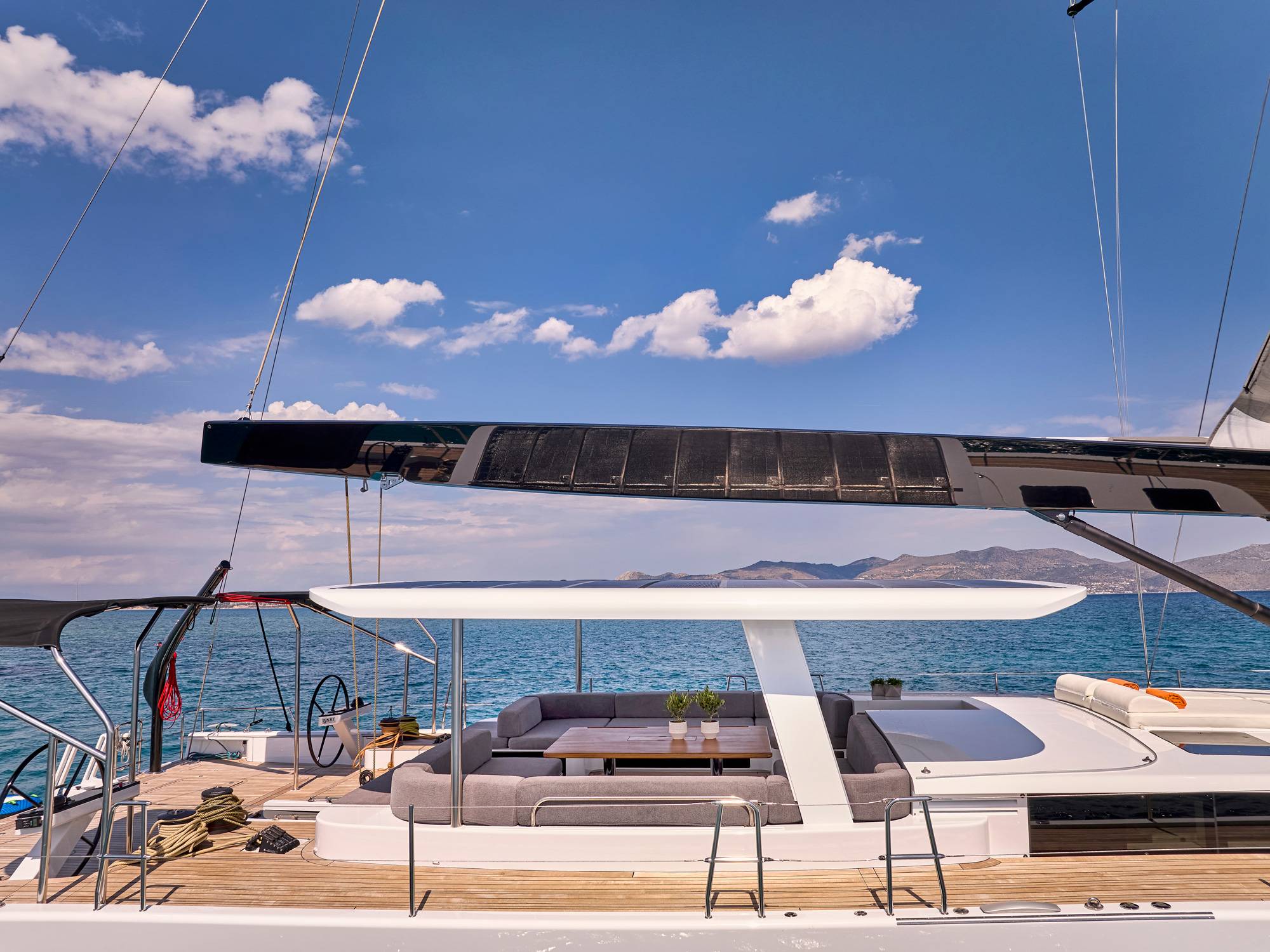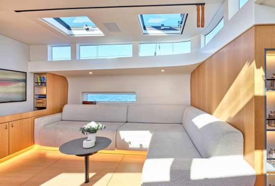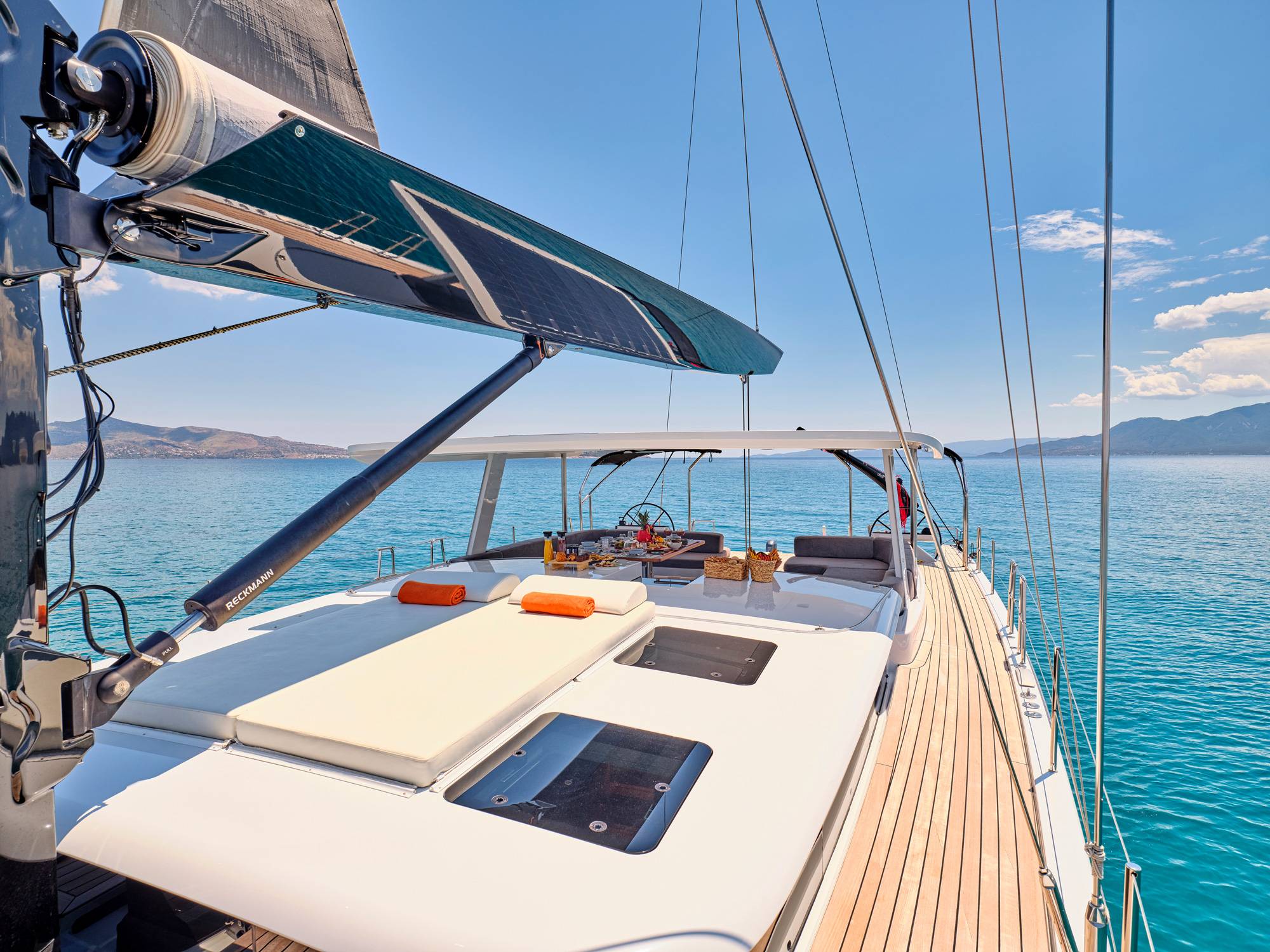 Timeless aesthetics paired with unique sailing performance make Nadamas the absolute sailing yacht for vacation in Greek islands. Her layout featuring 4 double cabins with en-suite facilities is ideal for 4 couples. Nadamas's luxury interior always feels bright and open as from the color pallets to the furniture her design ensures relaxed impression, while her ample sundeck is perfect for sunbathing with family and friends. For those who prefer to keep being active, her water toys collection guarantee unforgettable on-water experience!