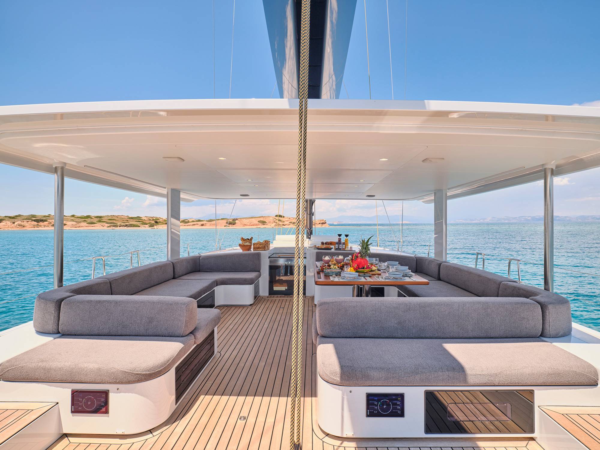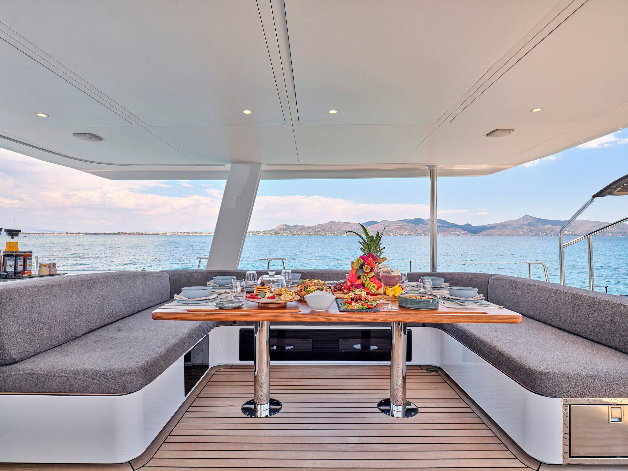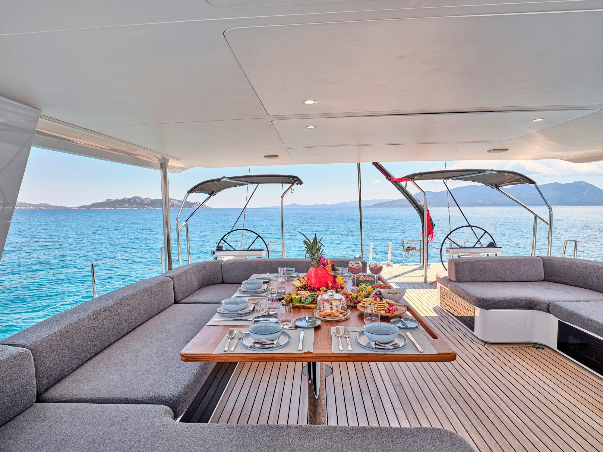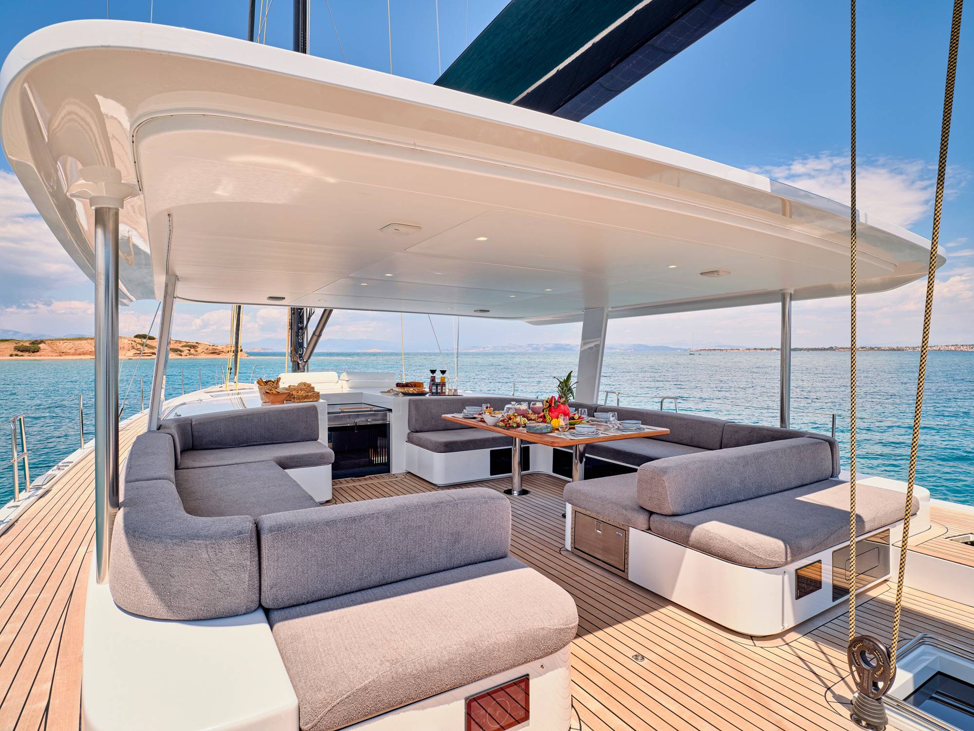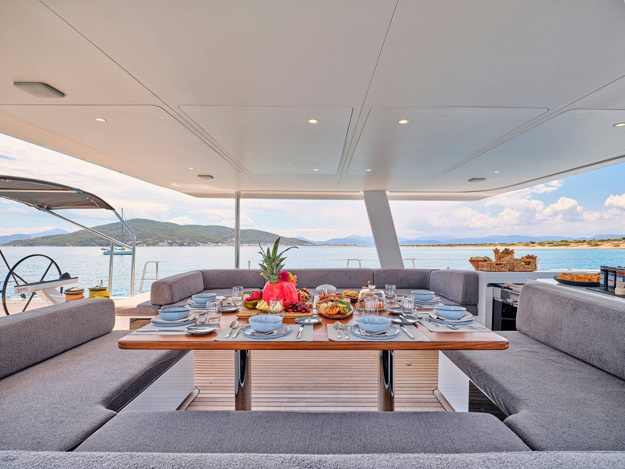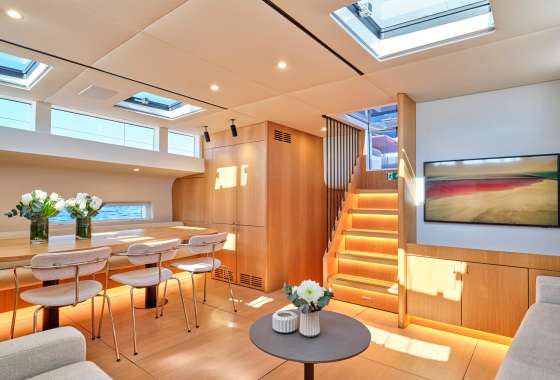 Timeless aesthetics paired with unique sailing performance make Nadamas the absolute sailing yacht for vacation in Greek islands. Her layout featuring 4 double cabins with en-suite facilities is ideal for 4 couples. Nadamas's luxury interior always feels bright and open as from the color pallets to the furniture her design ensures relaxed impression, while her ample sundeck is perfect for sunbathing with family and friends. For those who prefer to keep being active, her water toys collection guarantee unforgettable on-water experience!