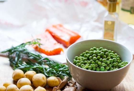 • Blend peas and the rest ingredients for pea sauce until smooth. Place in a sauce pan and do not heat until right before serving.