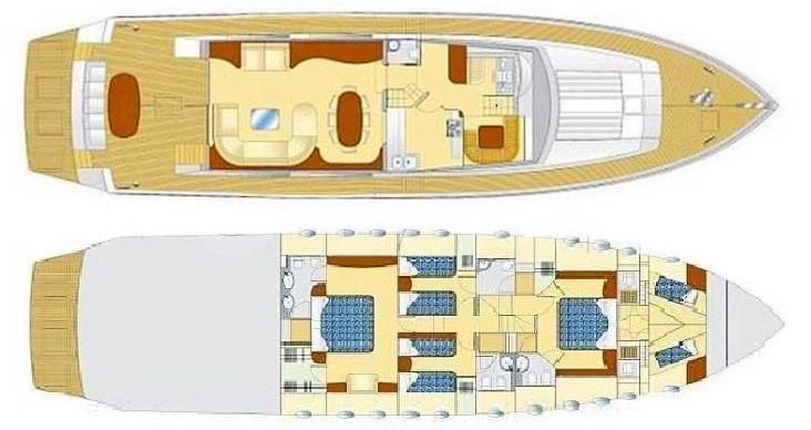 PAREAKI is a fully customized crewed 24 metres Posillipo luxury yacht, freshly refitted in 2020 to provide a beautiful interior and exterior finish. She accommodates comfortably ten guests in her four elegant and spacious cabins all with en-suite facilities.