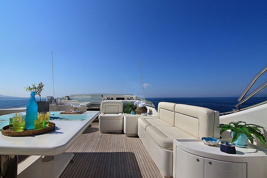 The ample spaces fore, aft and on the fly have been studied to enhance the pleasure of the sun in the open air.